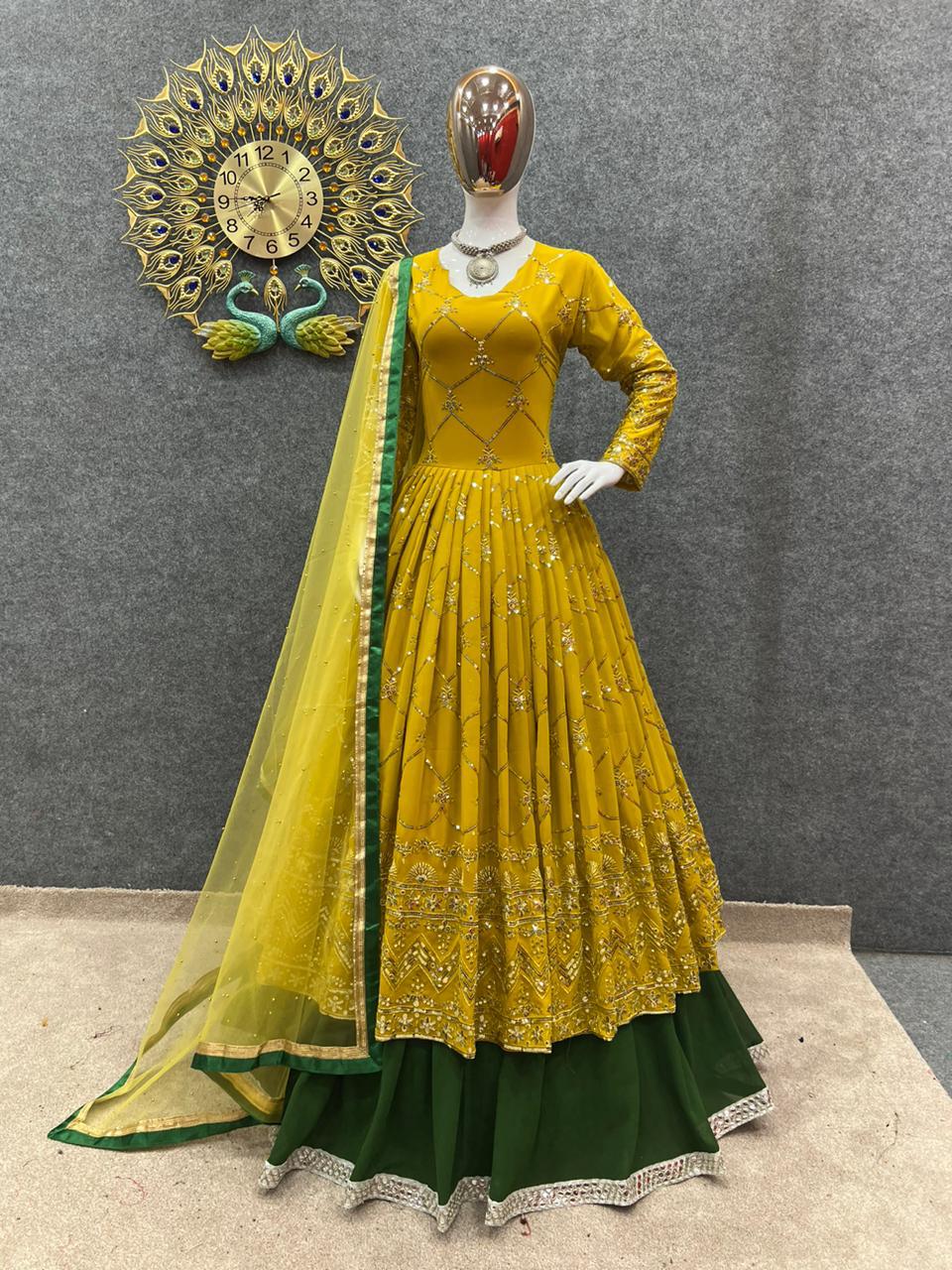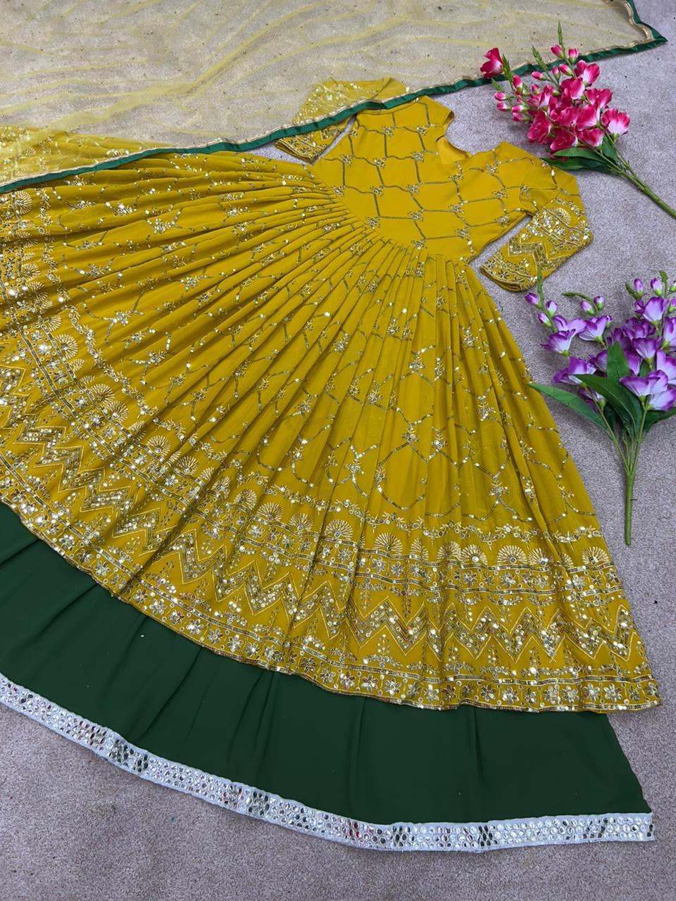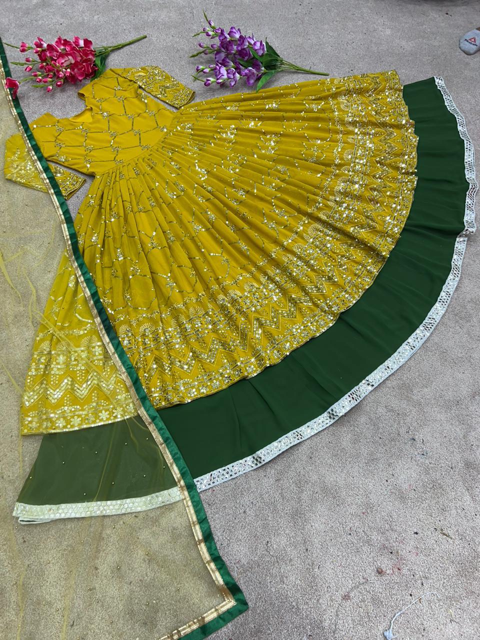 Lehenga fabric :Faux Georgette With Heavy 5 mm Embroidery Sequence Work with Heavy Lace Border *(semistitched)