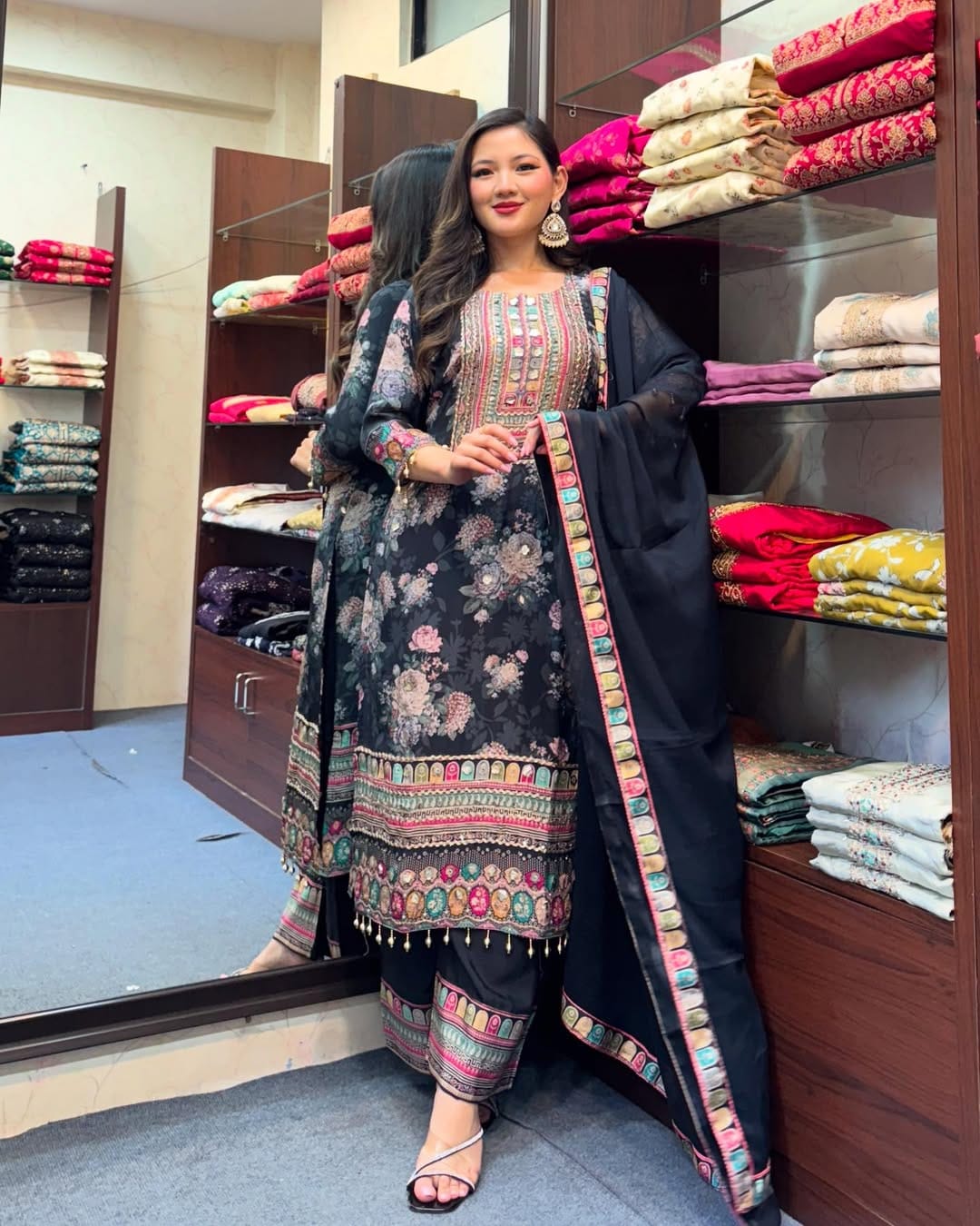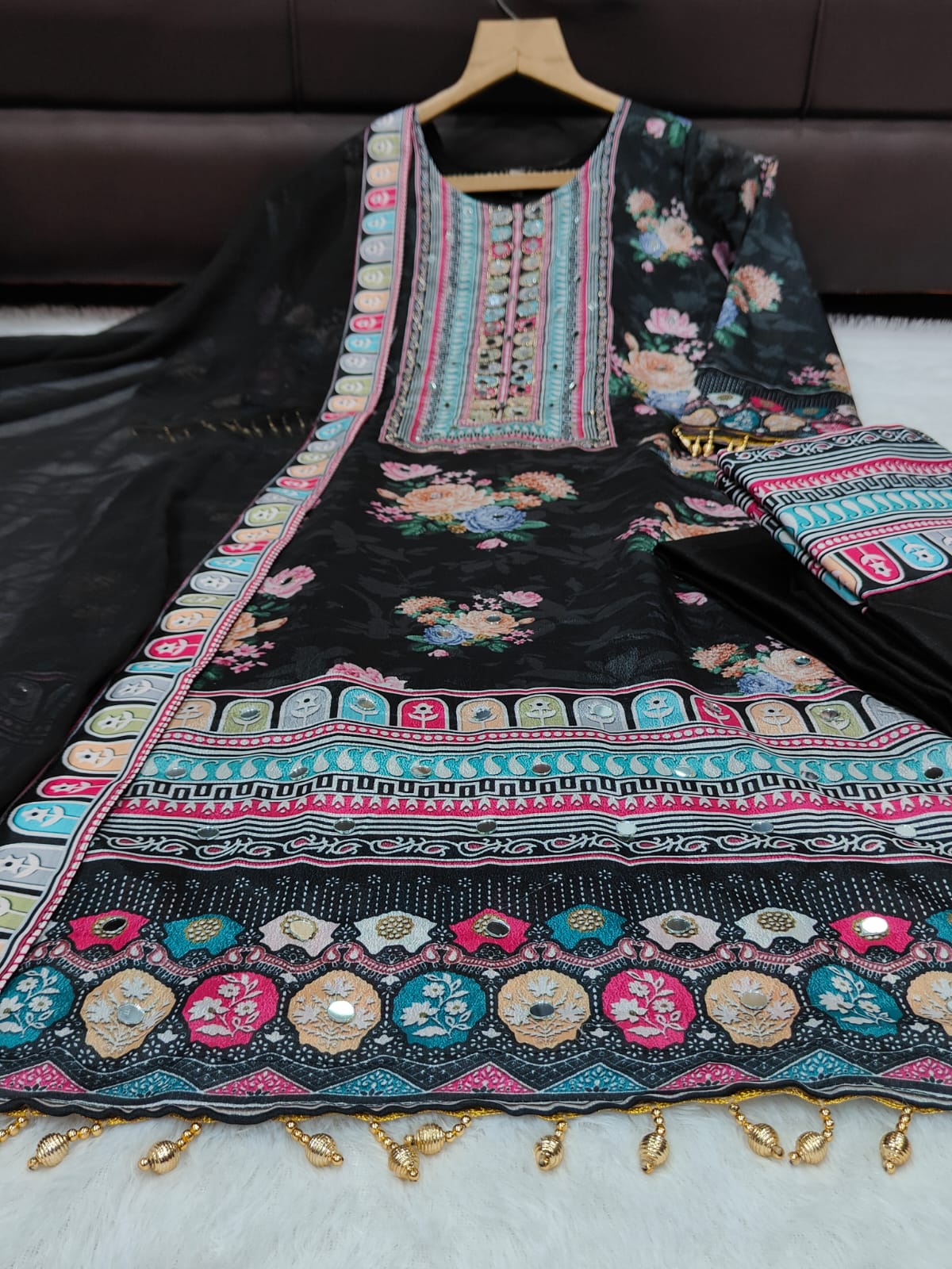 NEW DESIGNER WEAR PAKISTANI SUIT WITH ORIGINAL MIRROR HAND WORKS