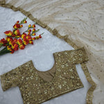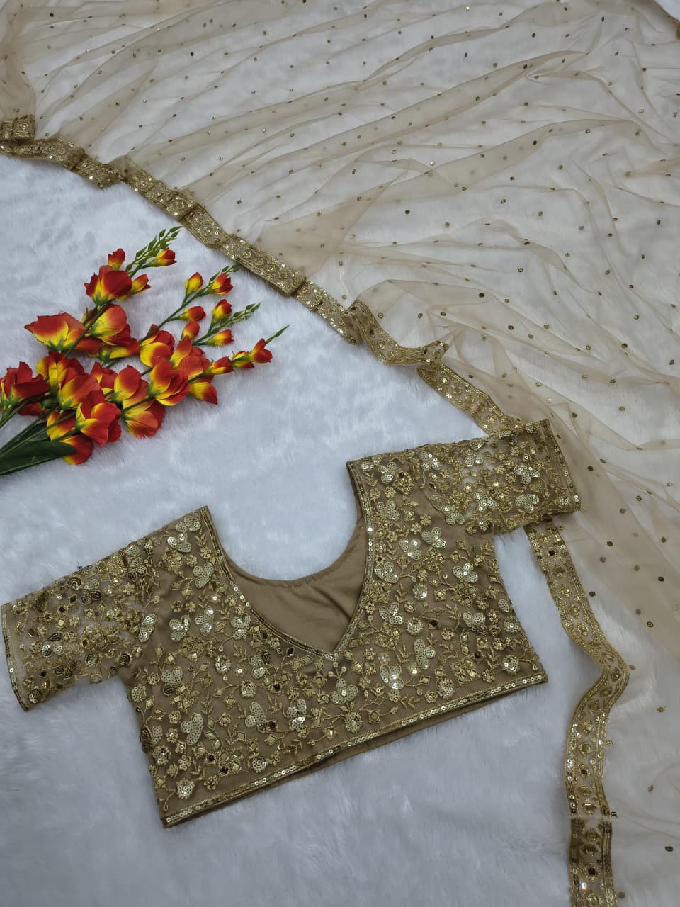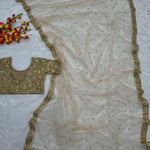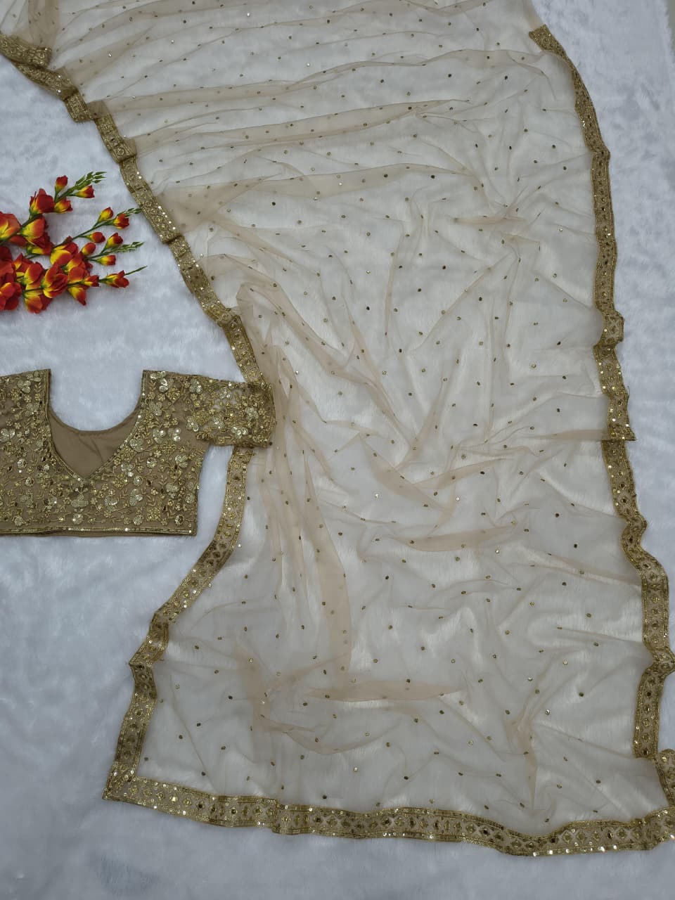 Blouse : *Premium Butterfly Soft Net Embellished With Beautiful Jari Work, Embroidery Work,Sequins Work And Real Mirror Work , Both Side Work Front And Back*( Unstiched)