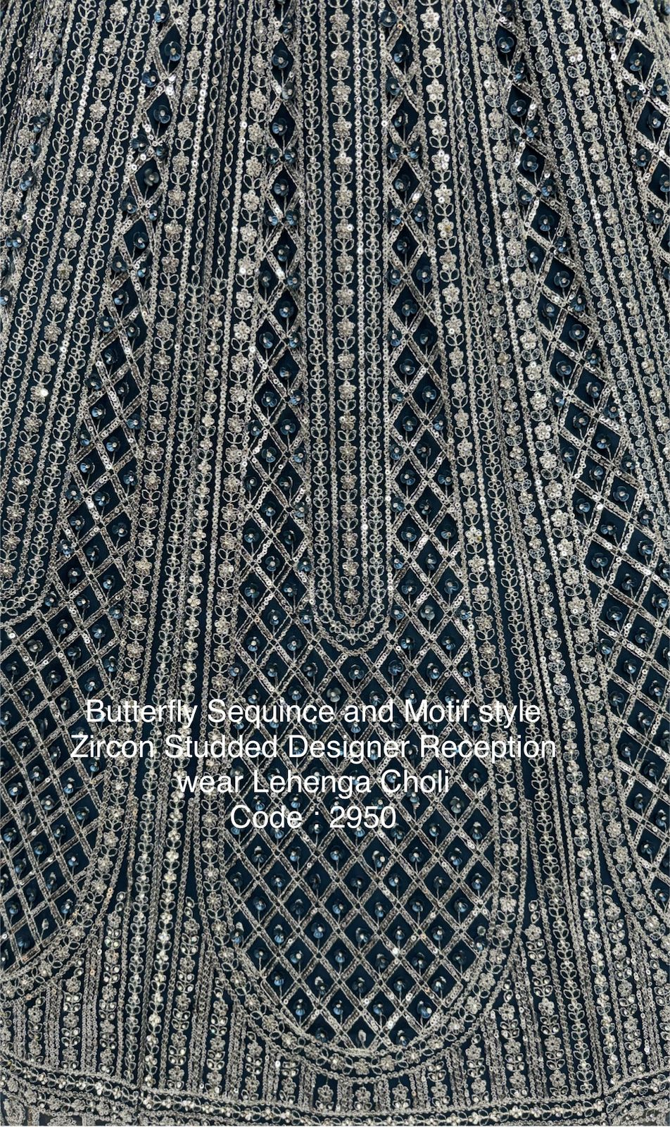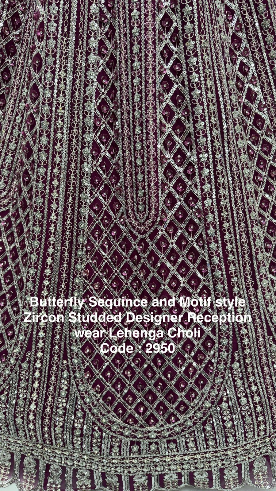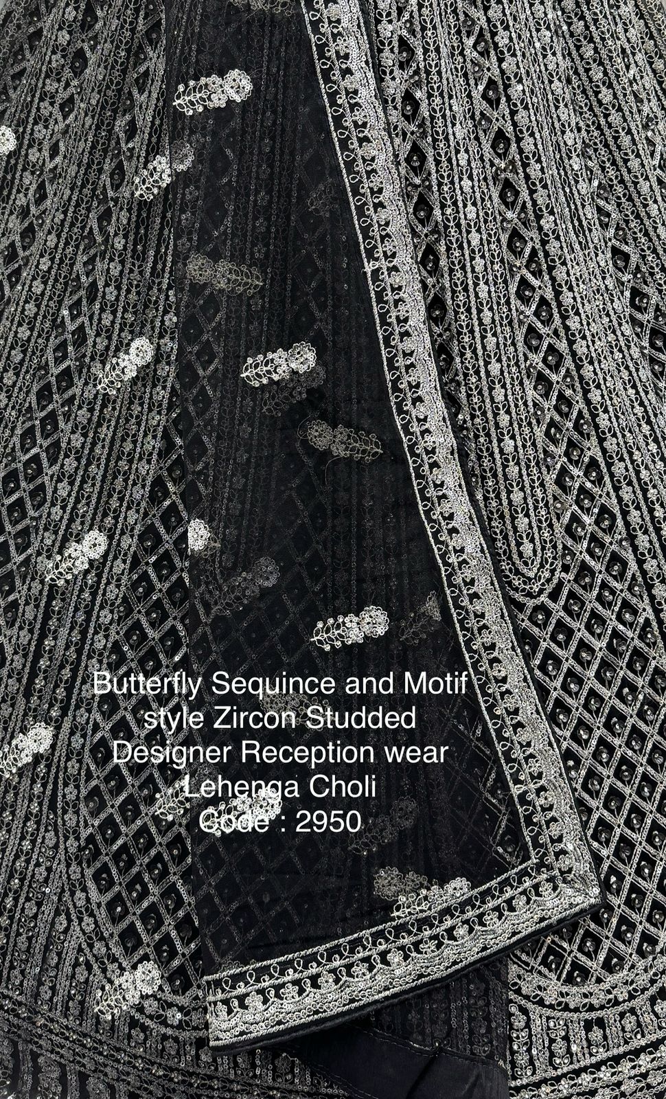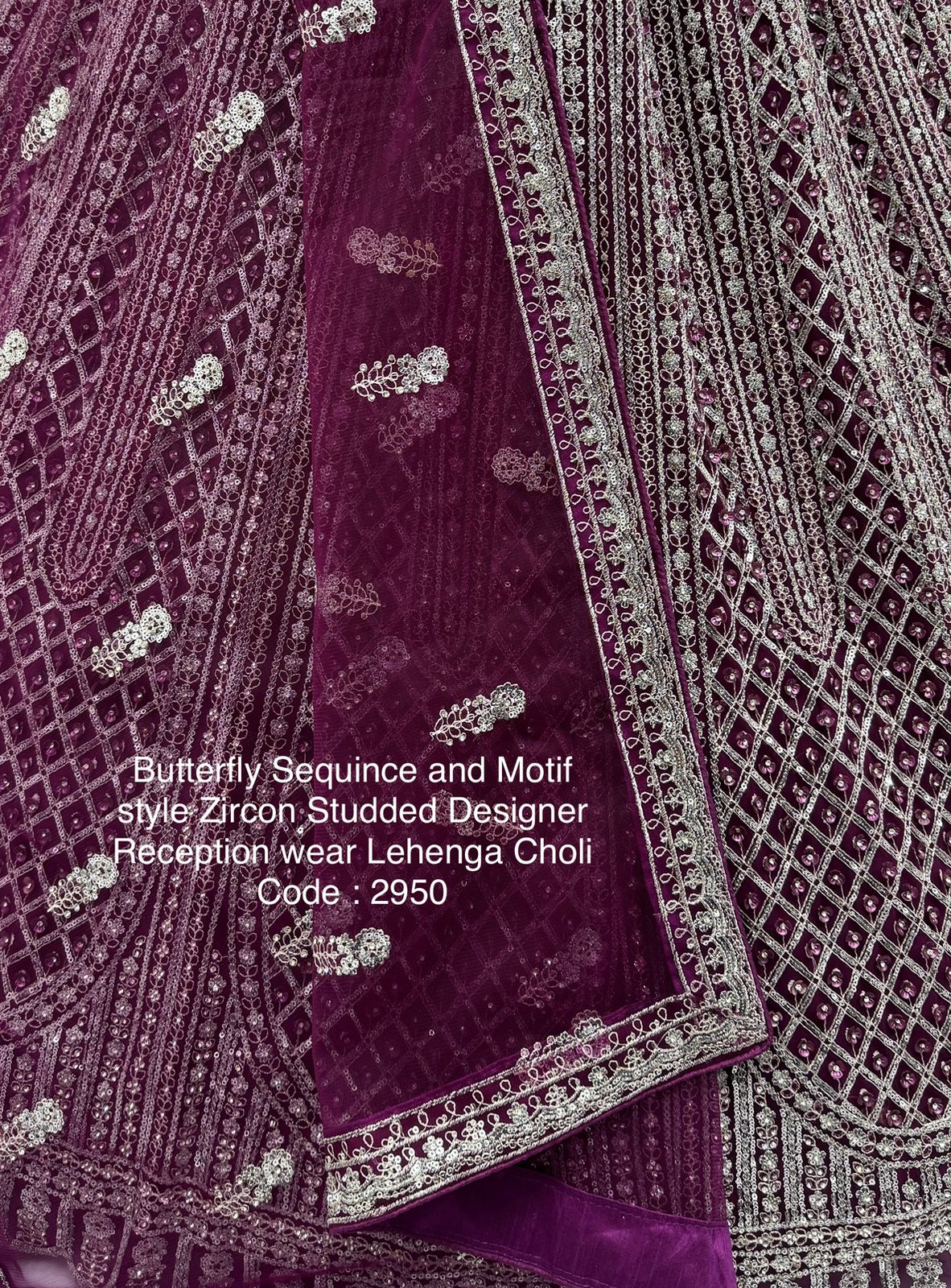 Butterfly Sequince and Motif style Zircon Studded Designer Reception wear Lehenga Choli