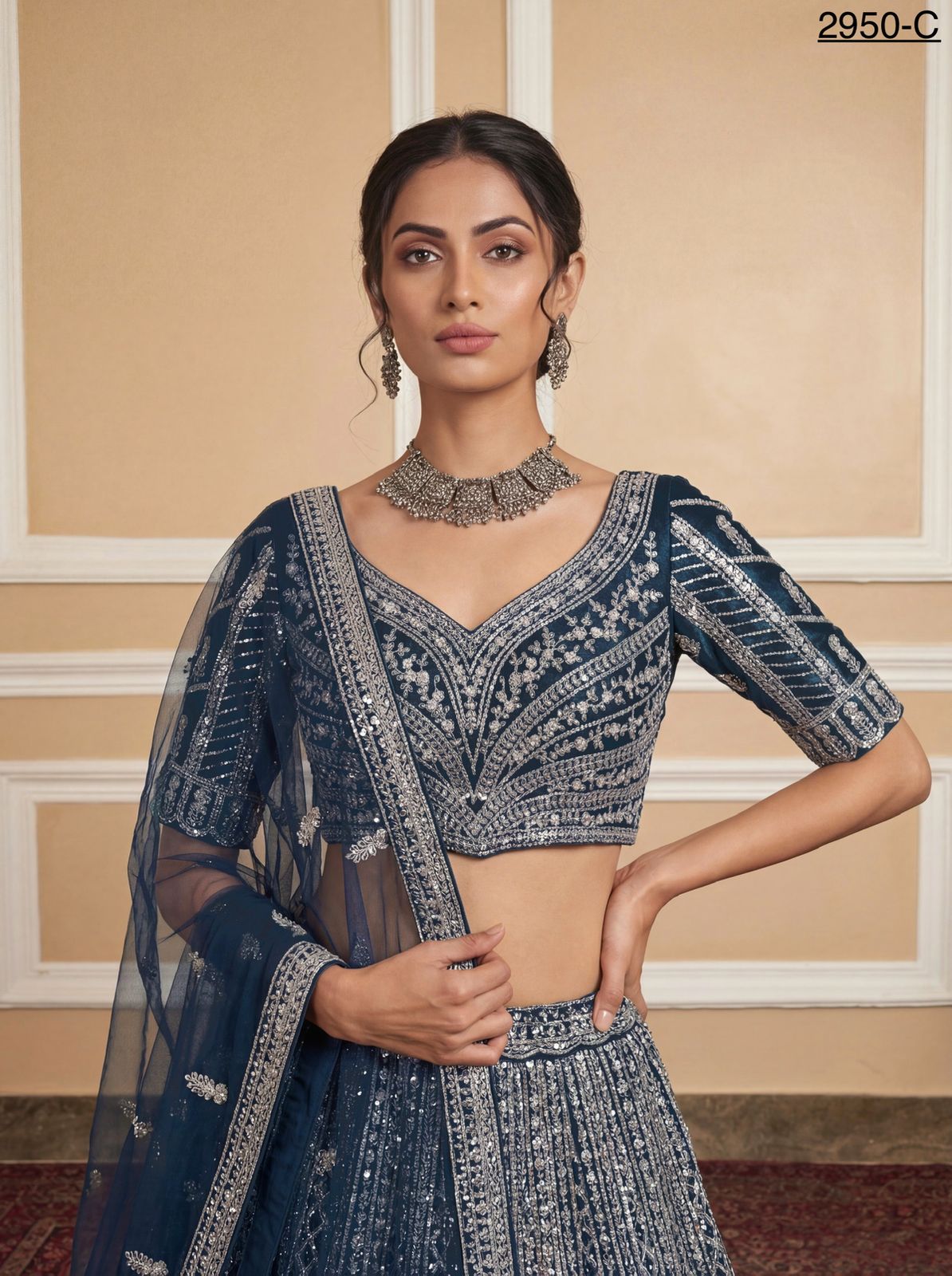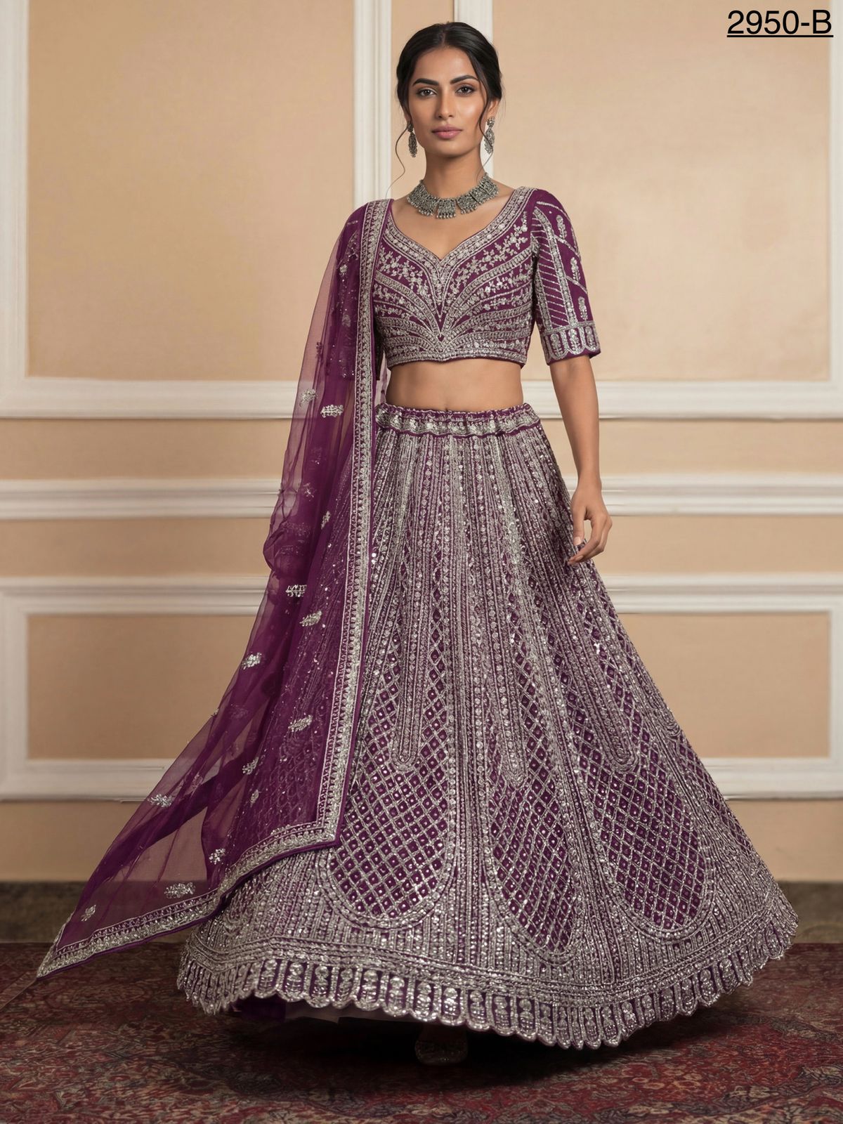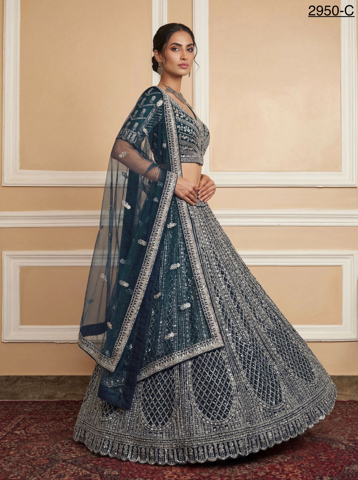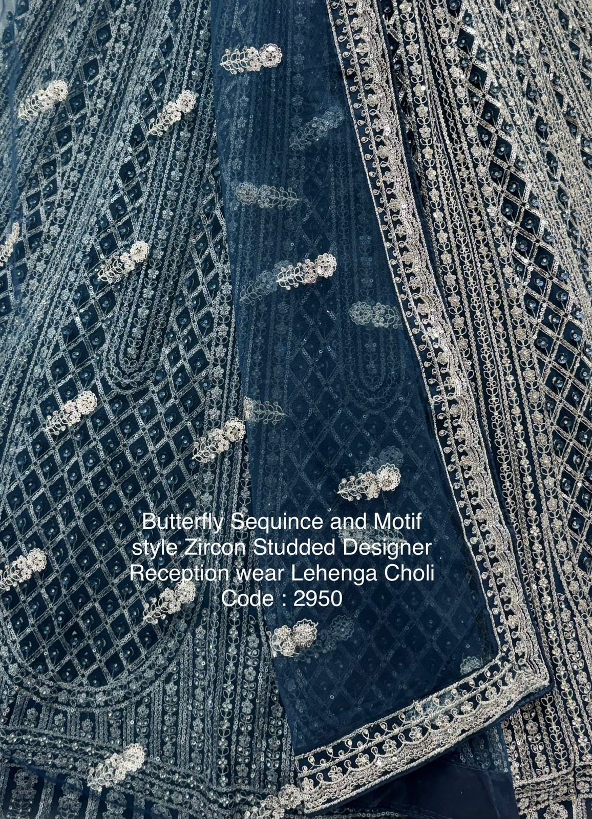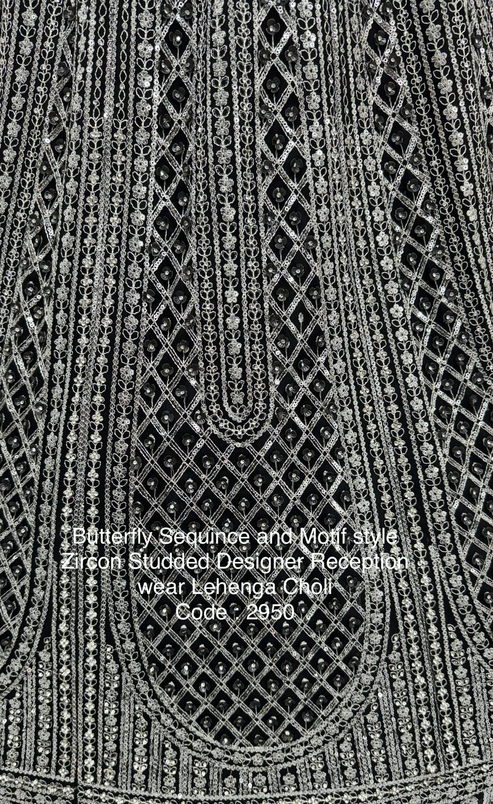 Butterfly Sequince and Motif style Zircon Studded Designer Reception wear Lehenga Choli