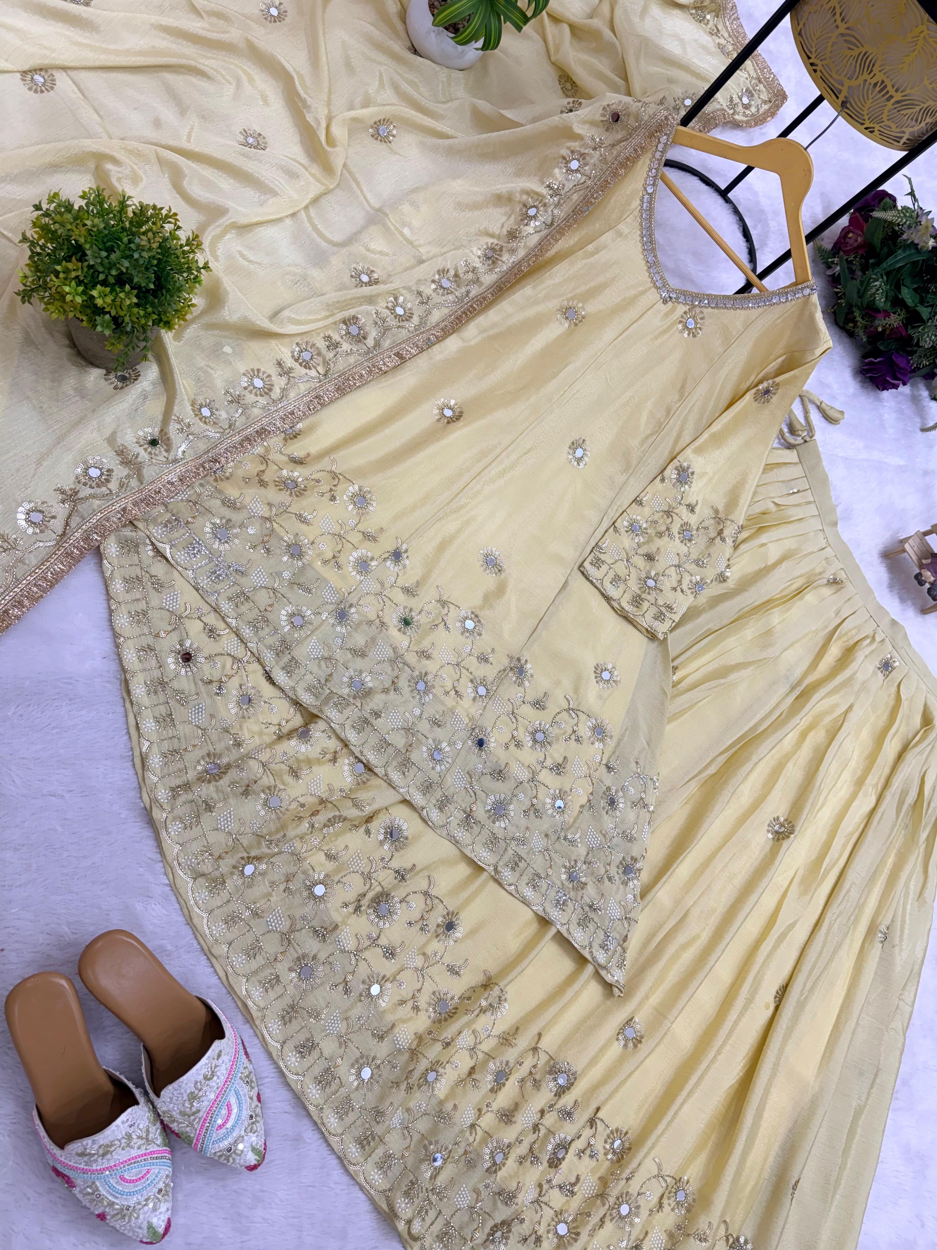 *🥻NEW SUPERHIT TRENDING CHINON FABRIC 3 PIECE SET TOP,BOTTOM & DUPATTA WITH EMBROIDERY & REAL MIRROR WORK🥻*