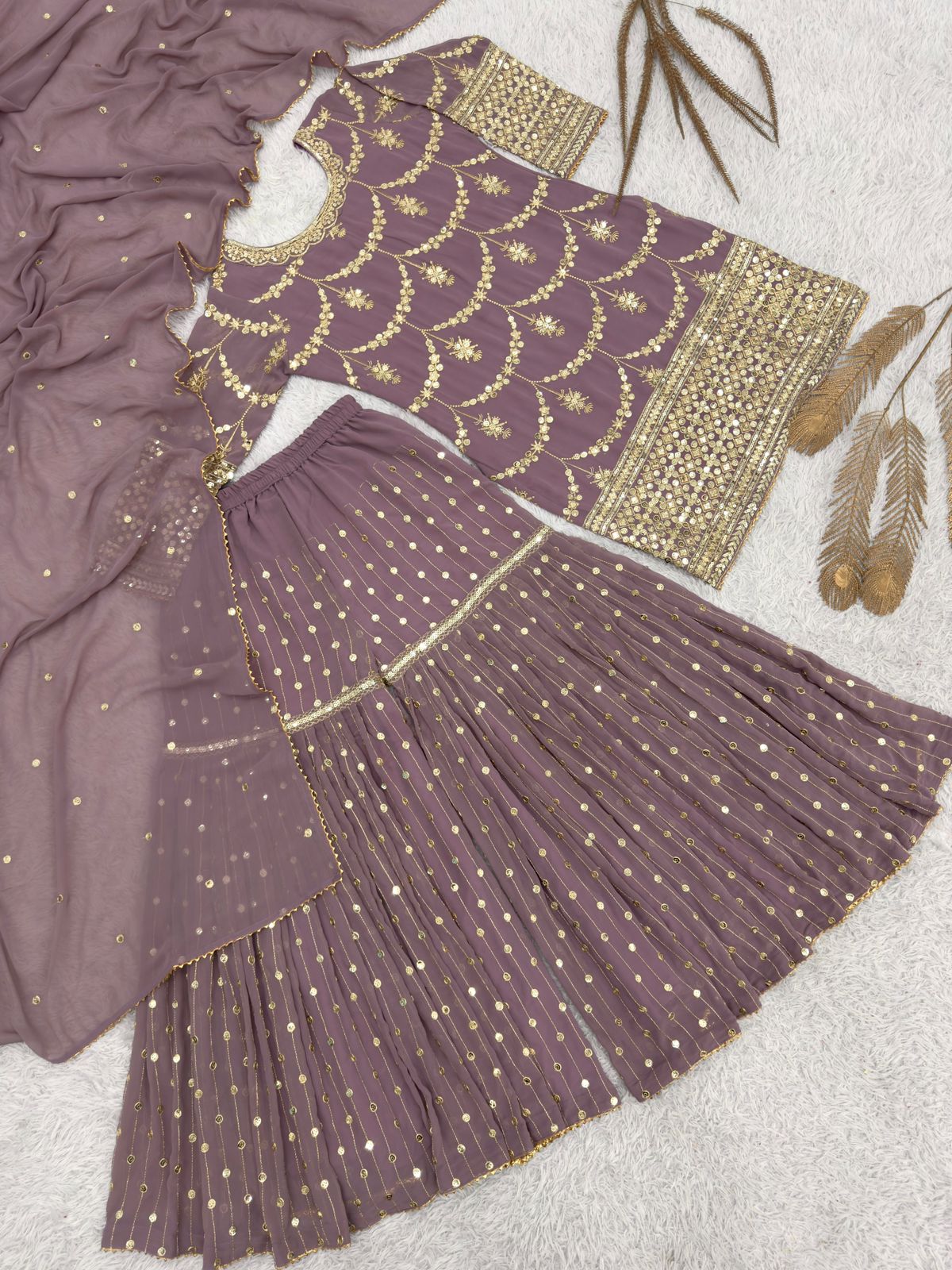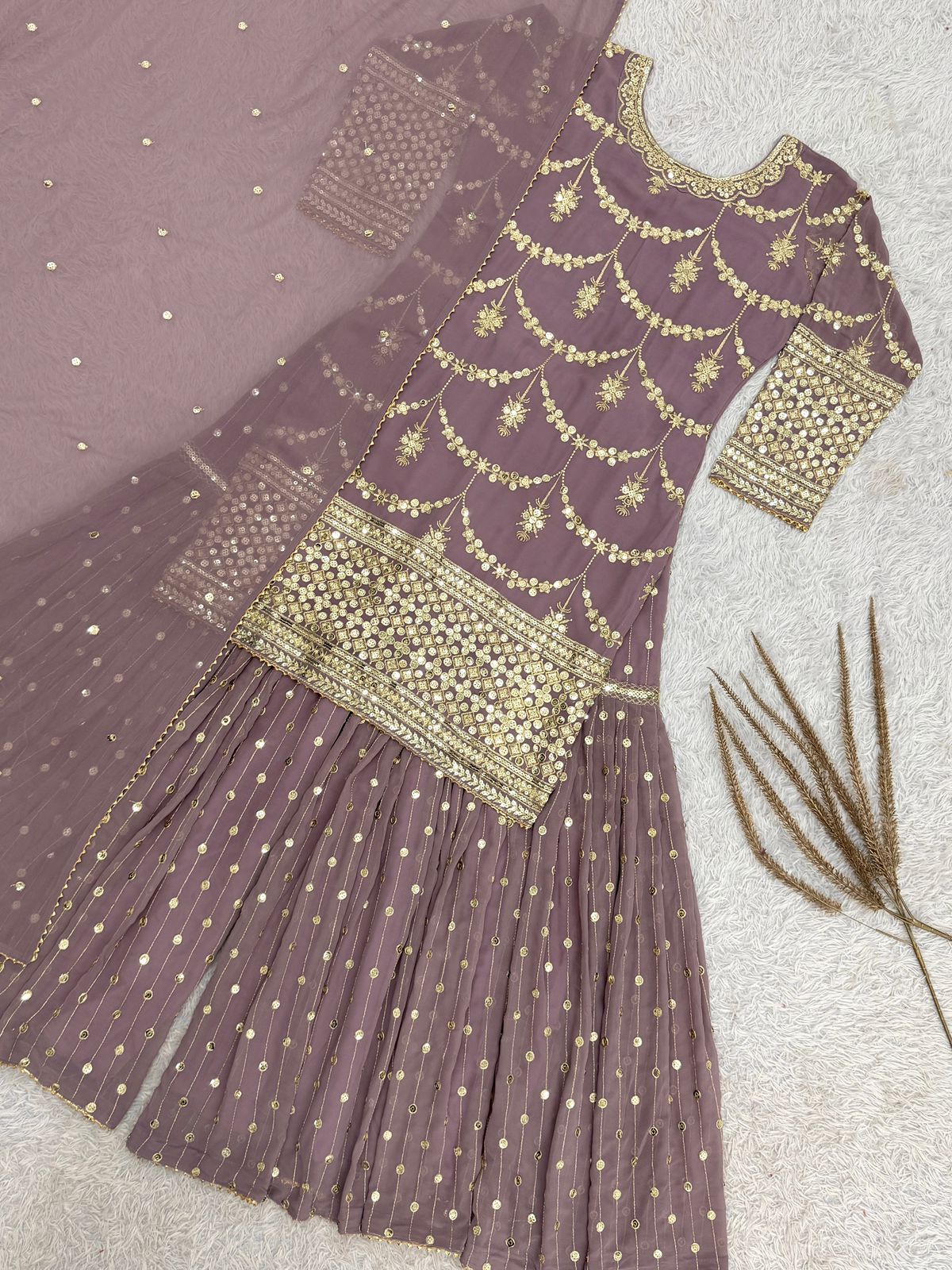 🫶🏻*PRESENTING 3 PIECE STYLISH KURTI, SHARARA AND DUPATTA WITH BEAUTIFUL EMBROIDERY SEQUENCE WORK*