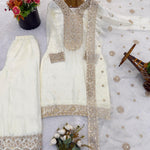 White Designer Silk Straight Suit