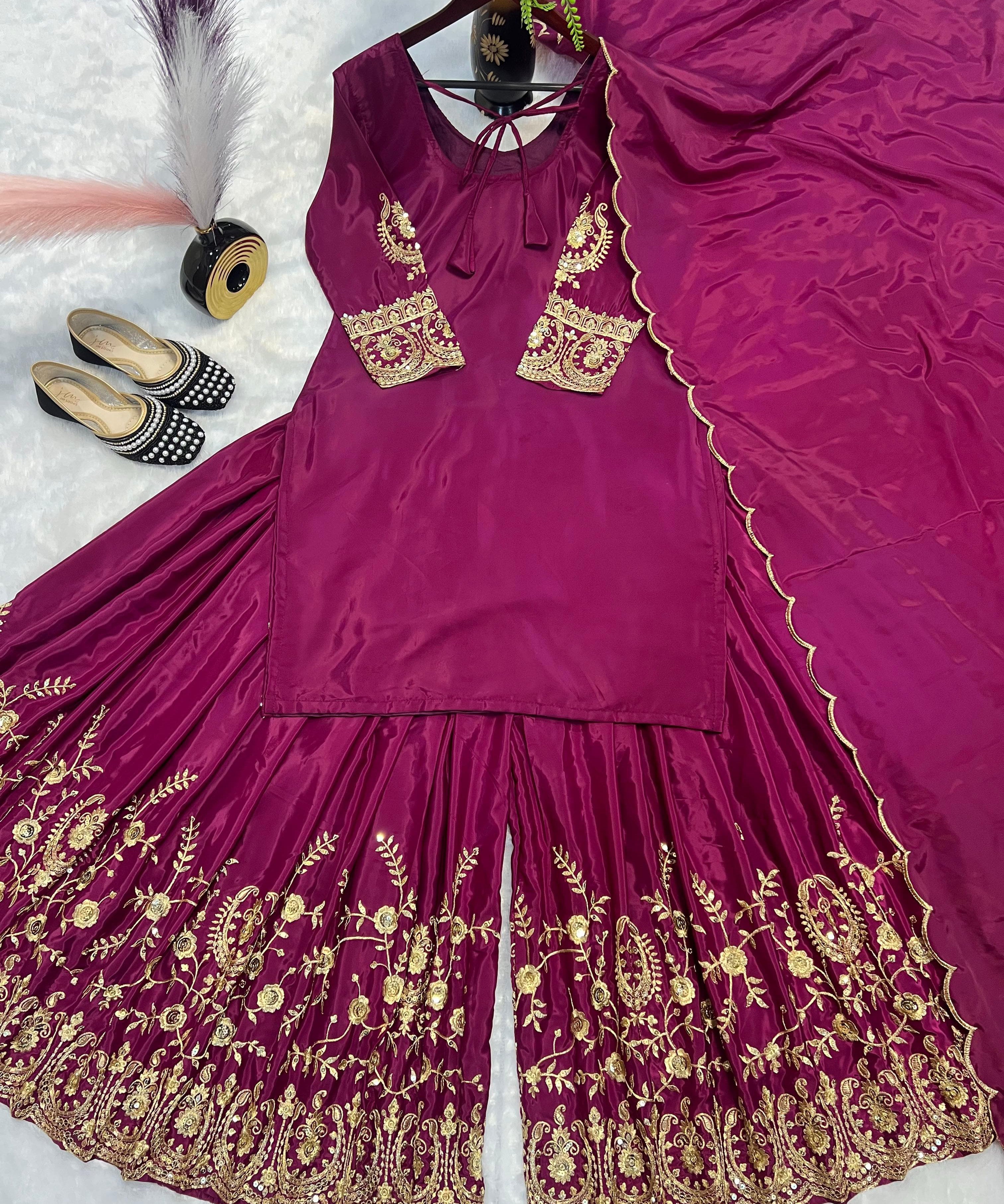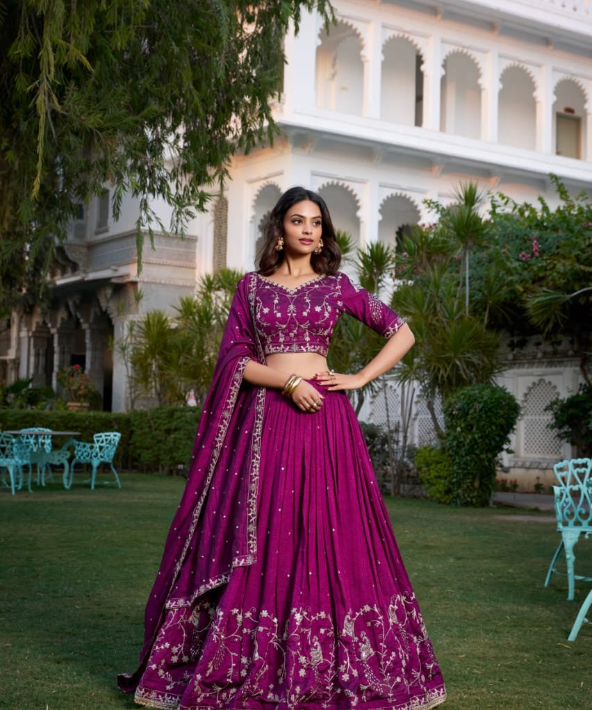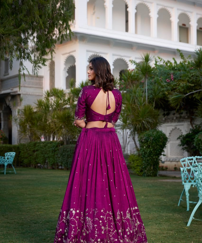 Wine Stunning Vichitra Silk Lehenga