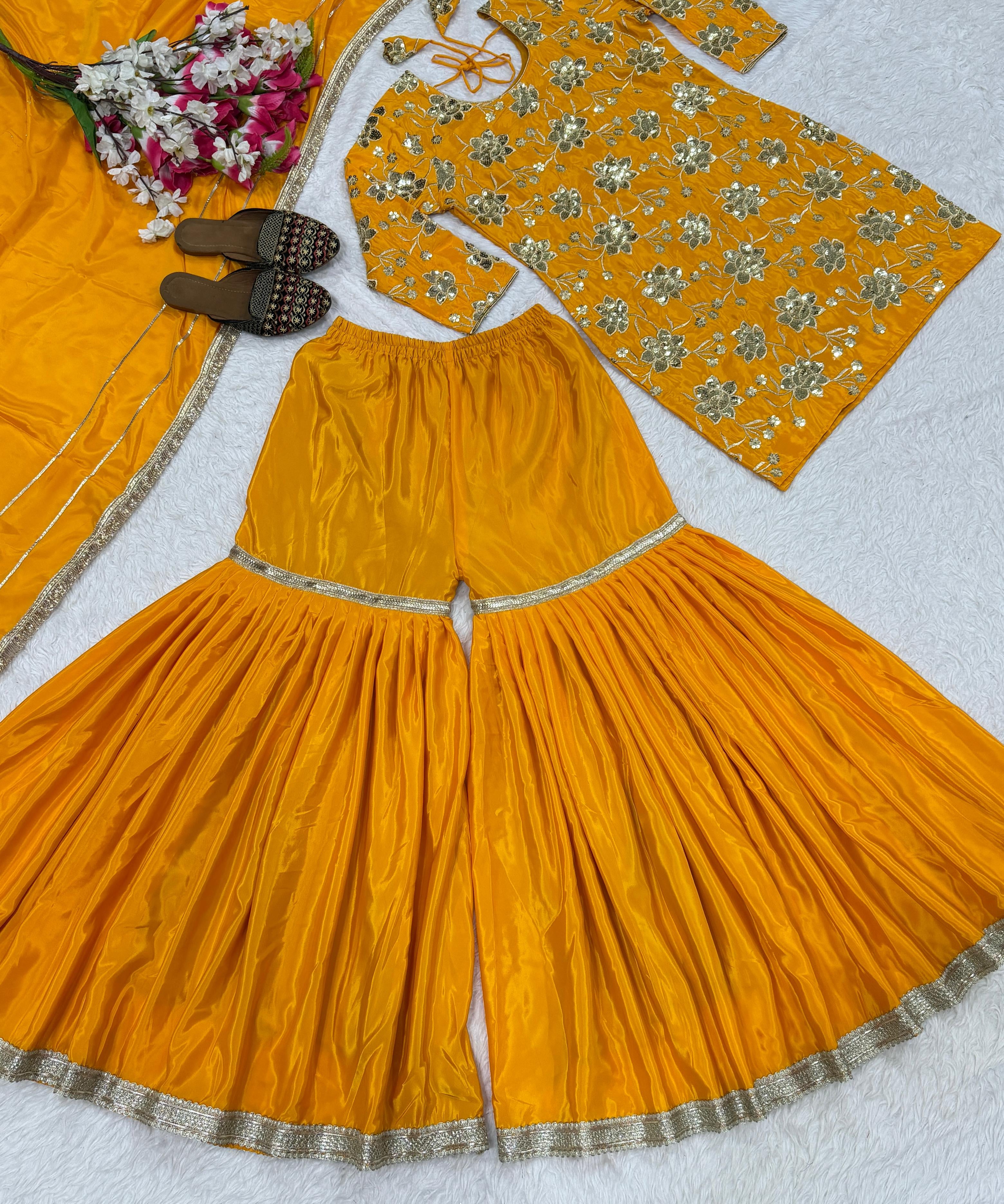 Yellowish Wedding Silk Anarkali Gown