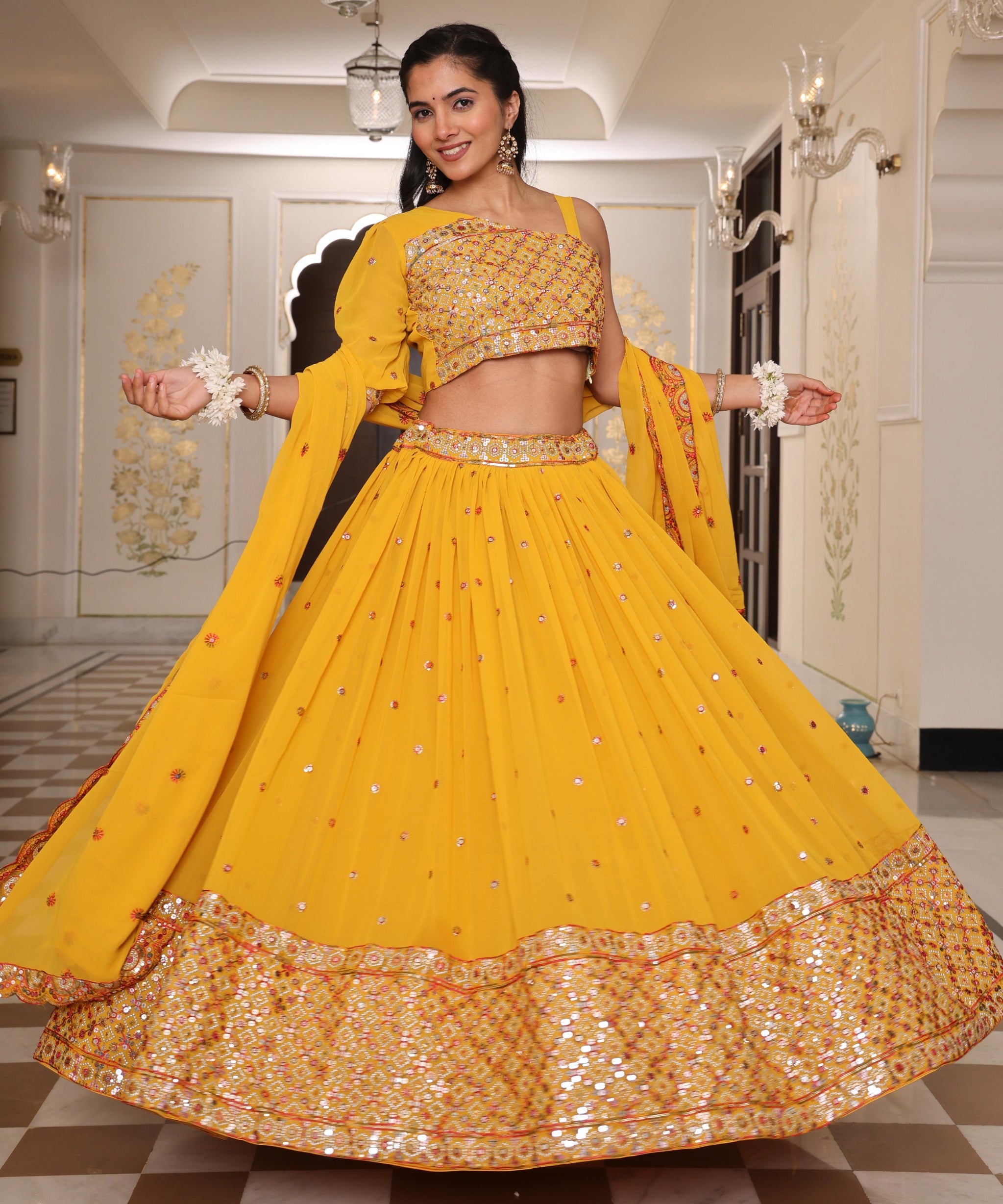 Yellow Wedding Embroidered Lehenga
