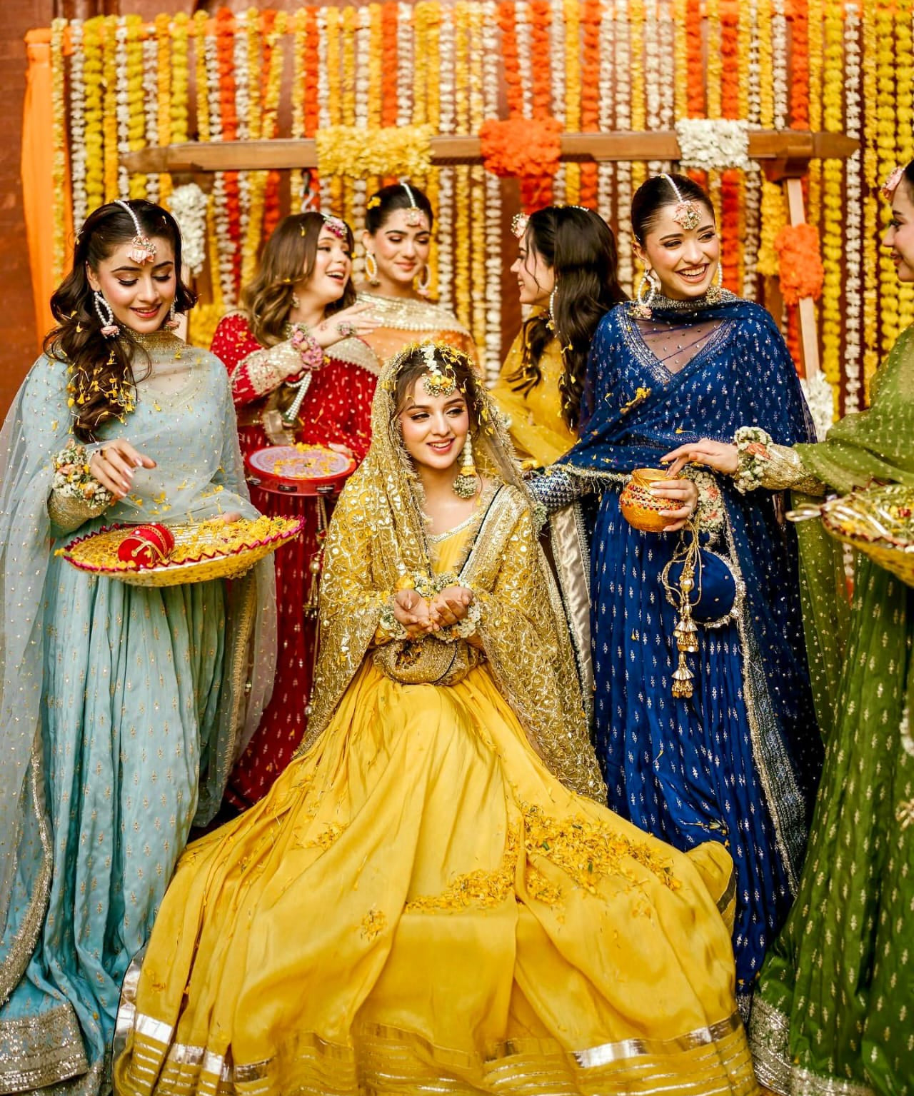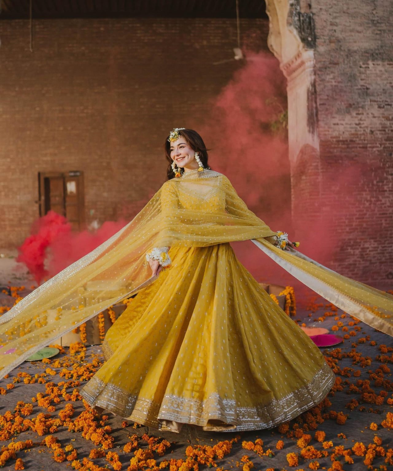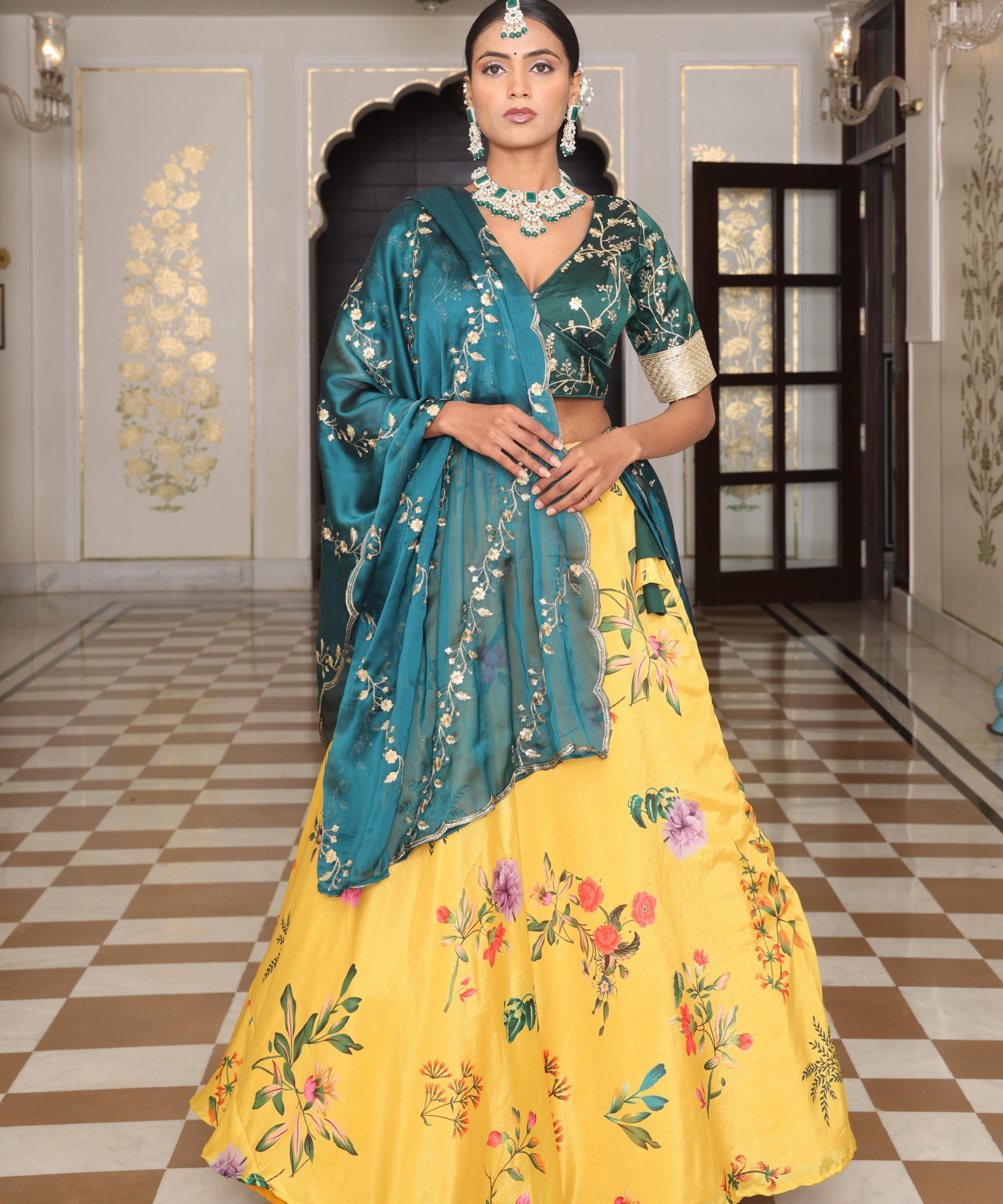 Yellow Floral Print Haldi Lehenga