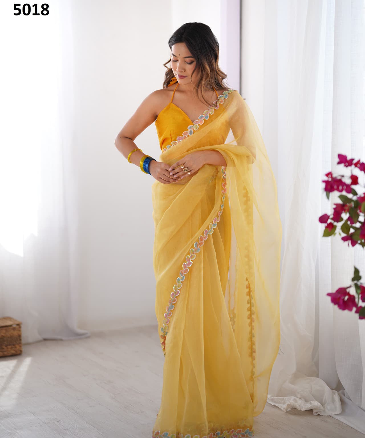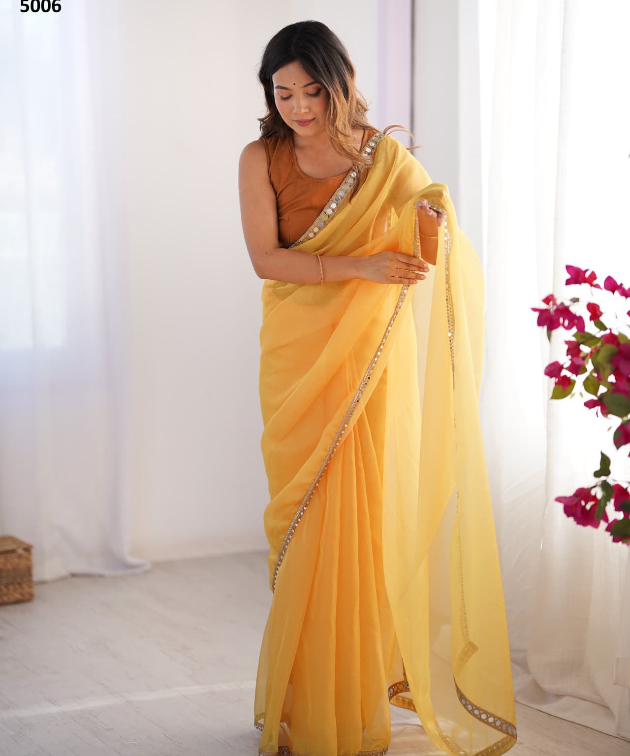 Yellow Stylish Organza Saree