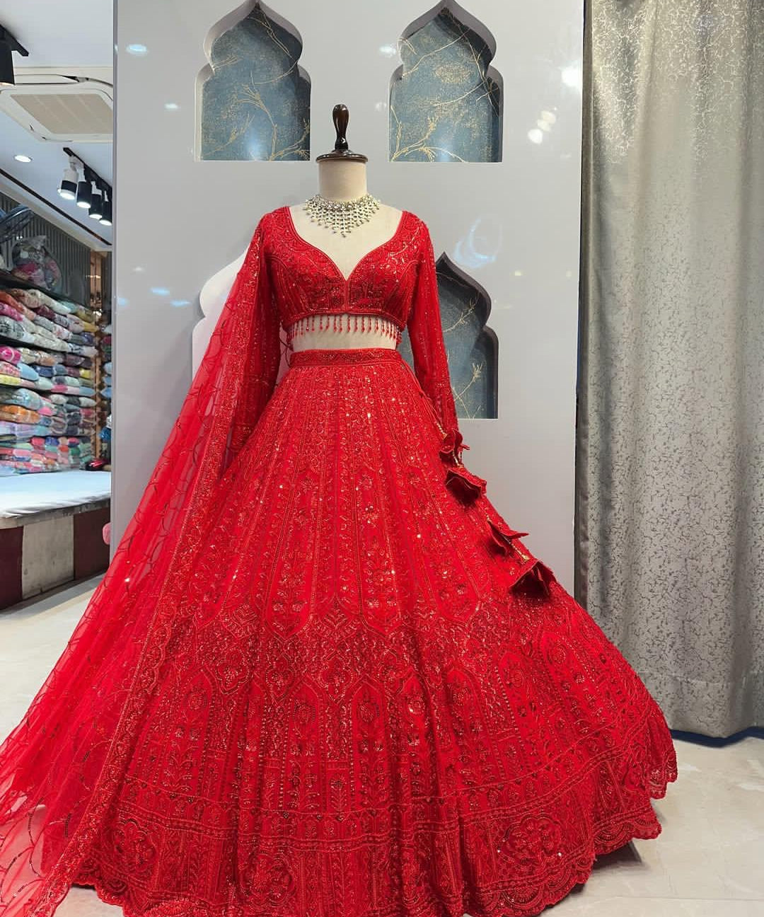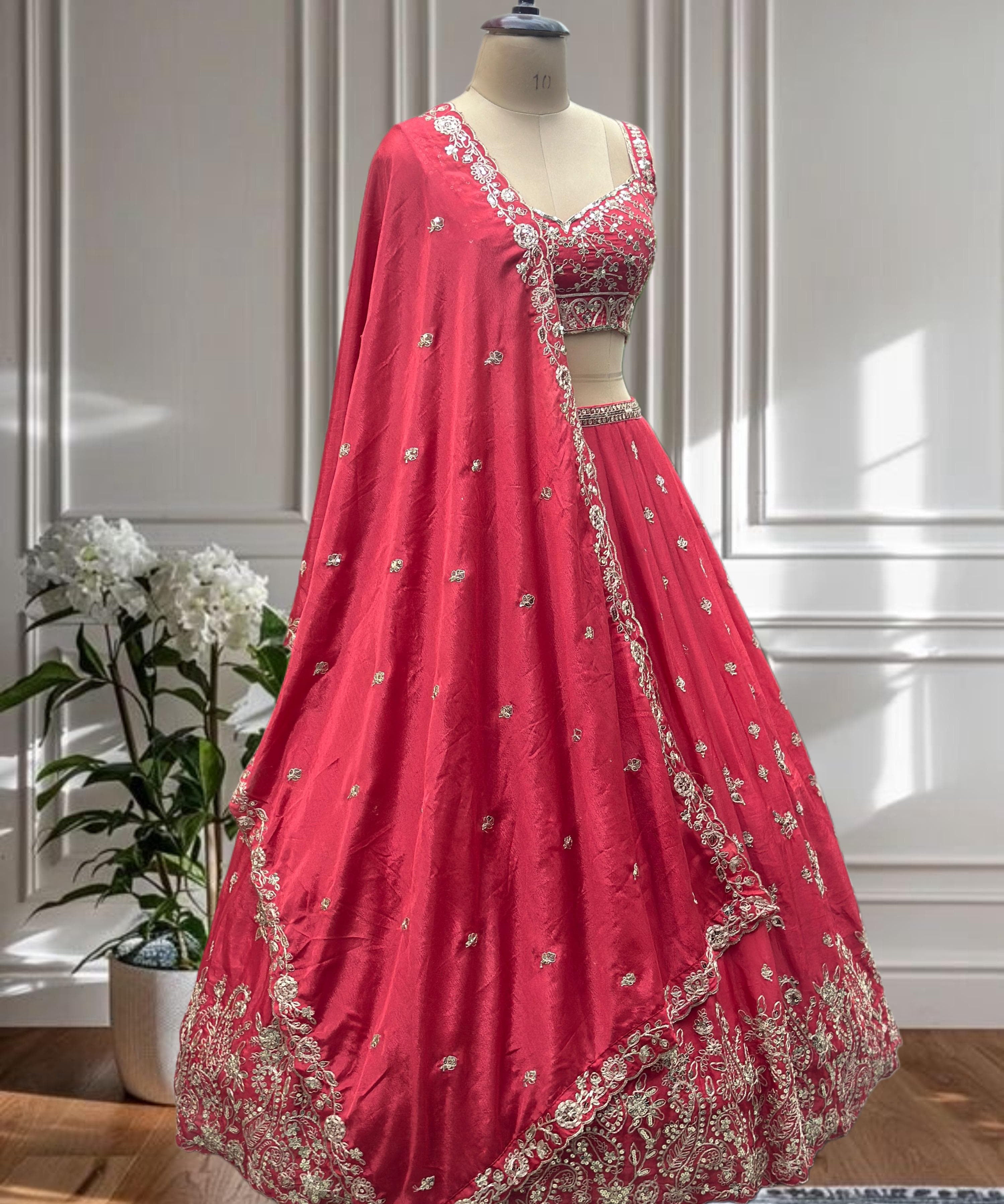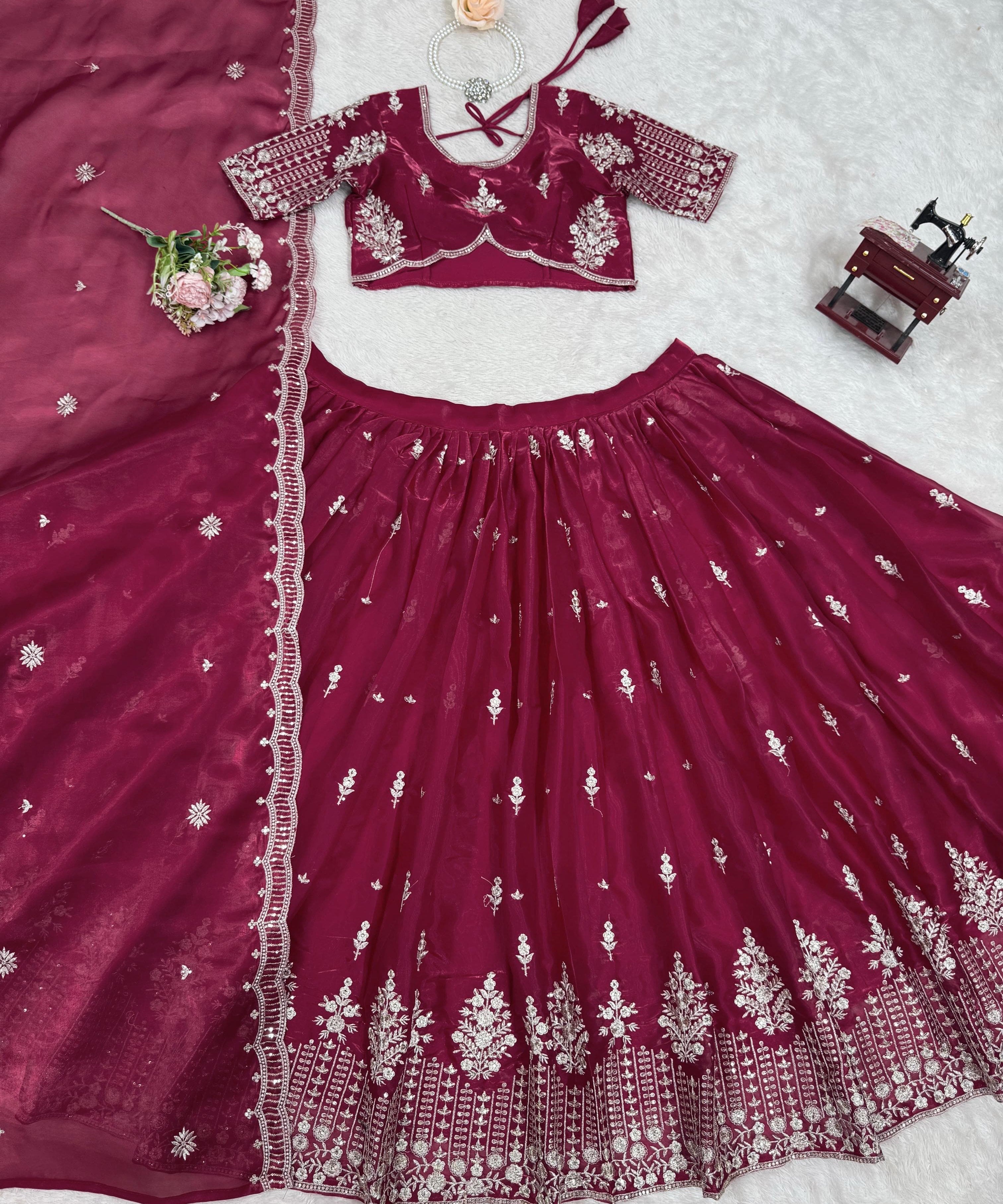 Designer Lehenga Choli With Embroidery Sequence Work - Size L