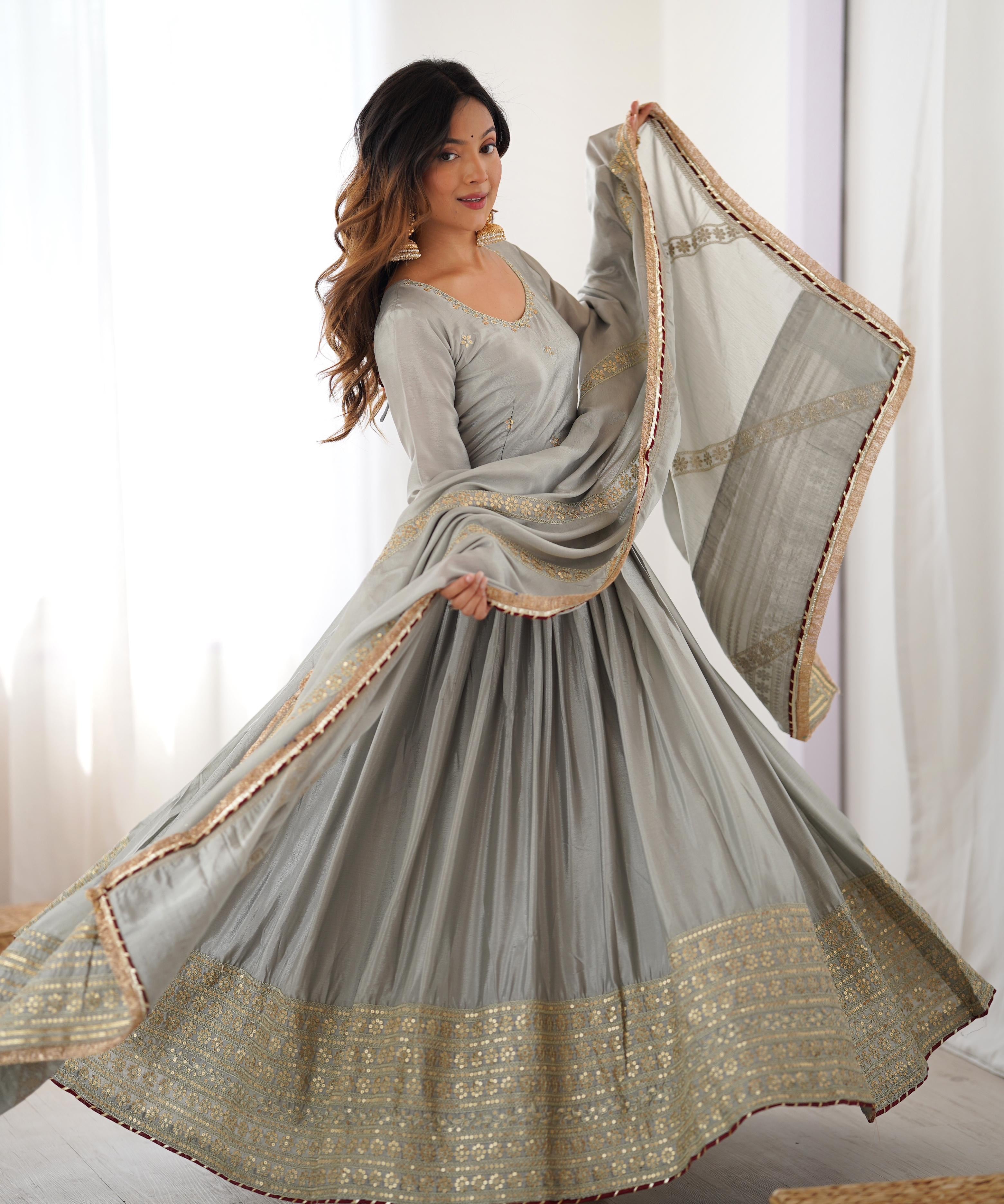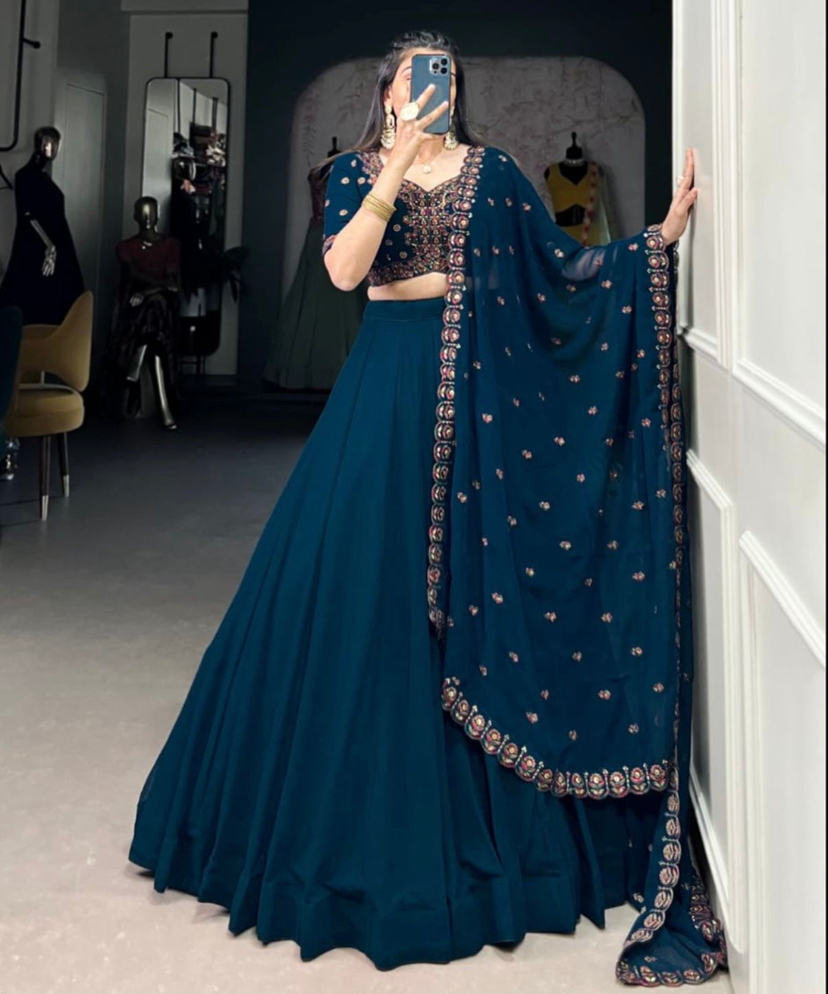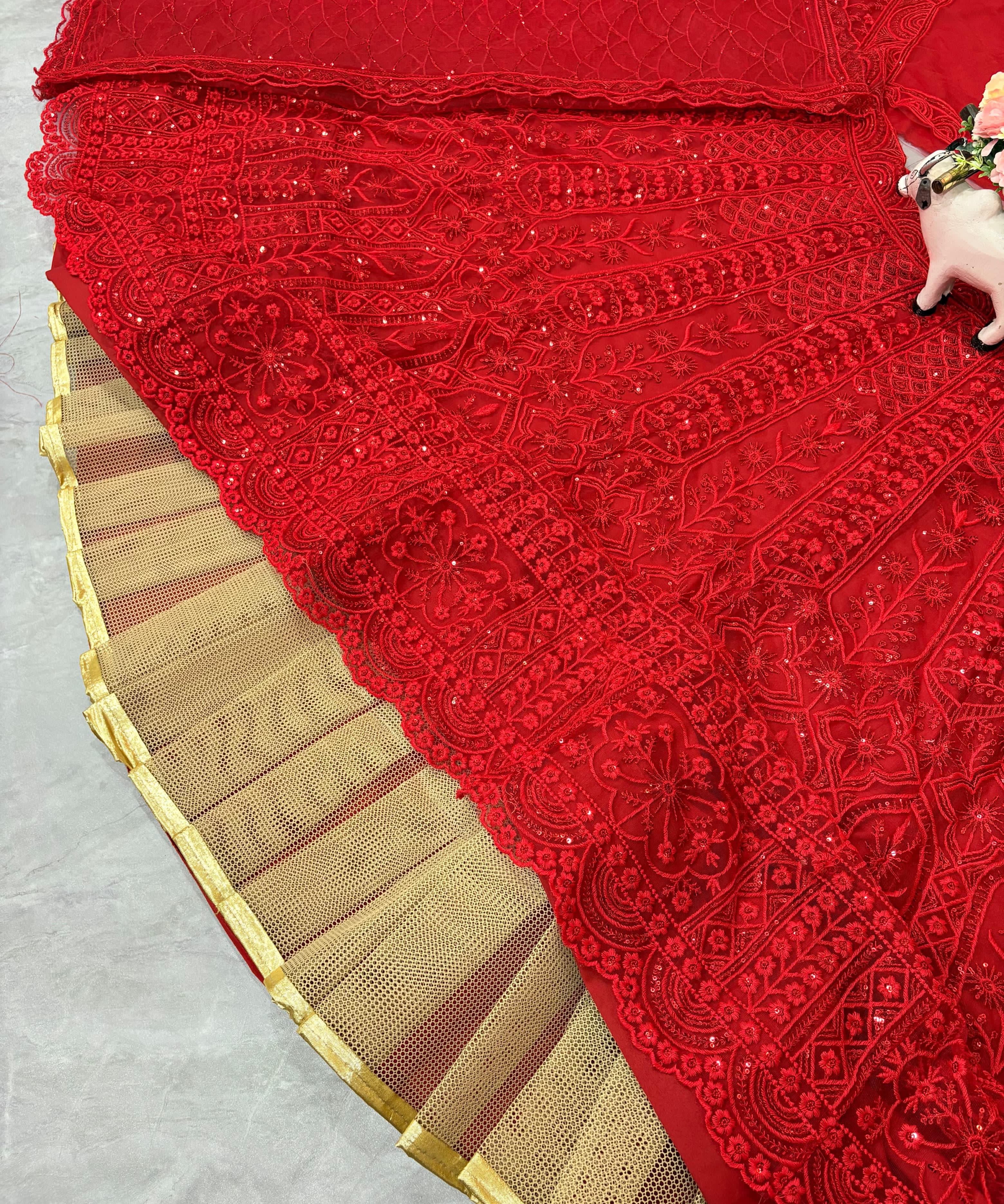 Designer Lehenga Choli With Embroidery Sequence Work - Size L