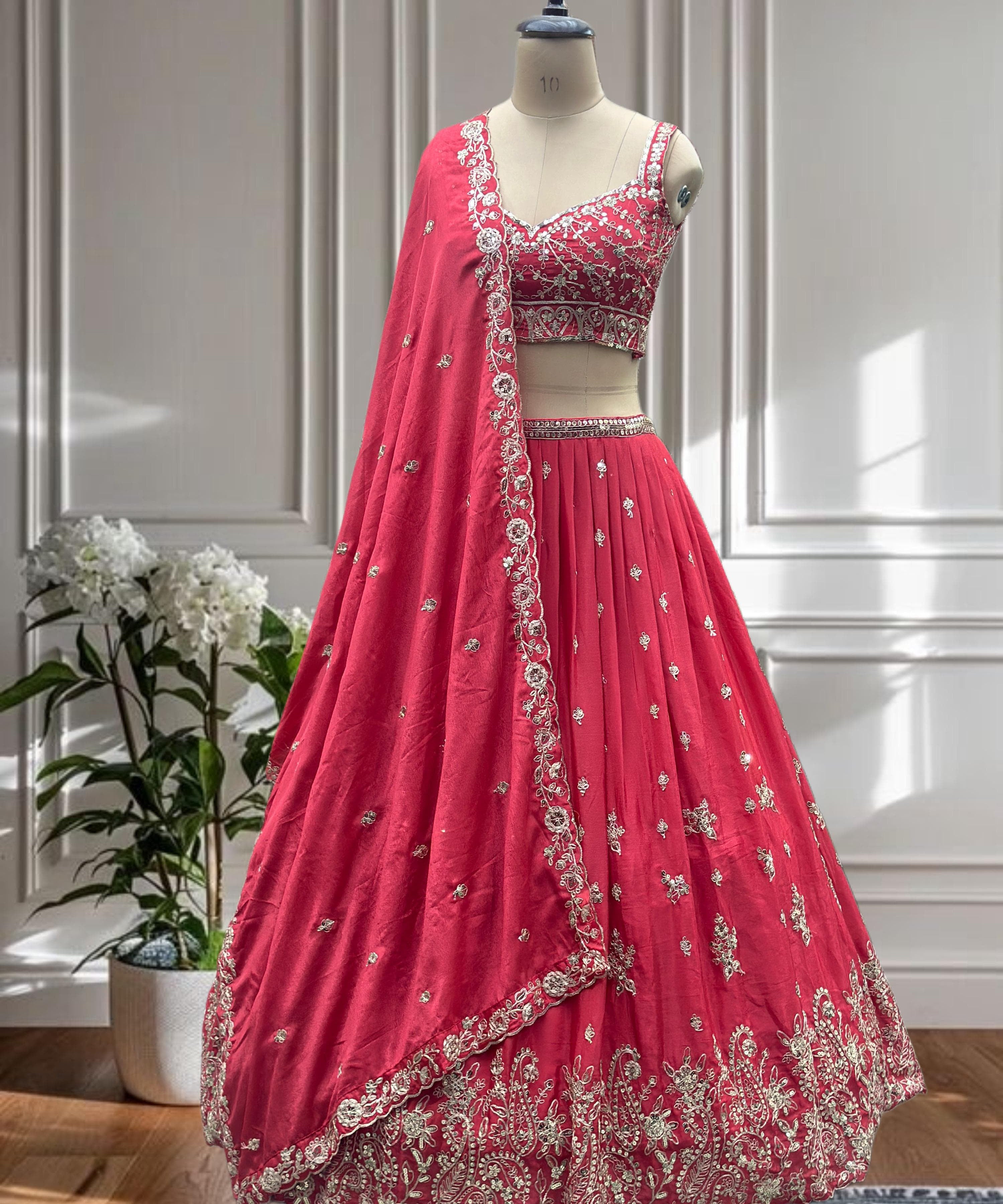 Premium Embroidered Tometo Pink Lehenga - Size M