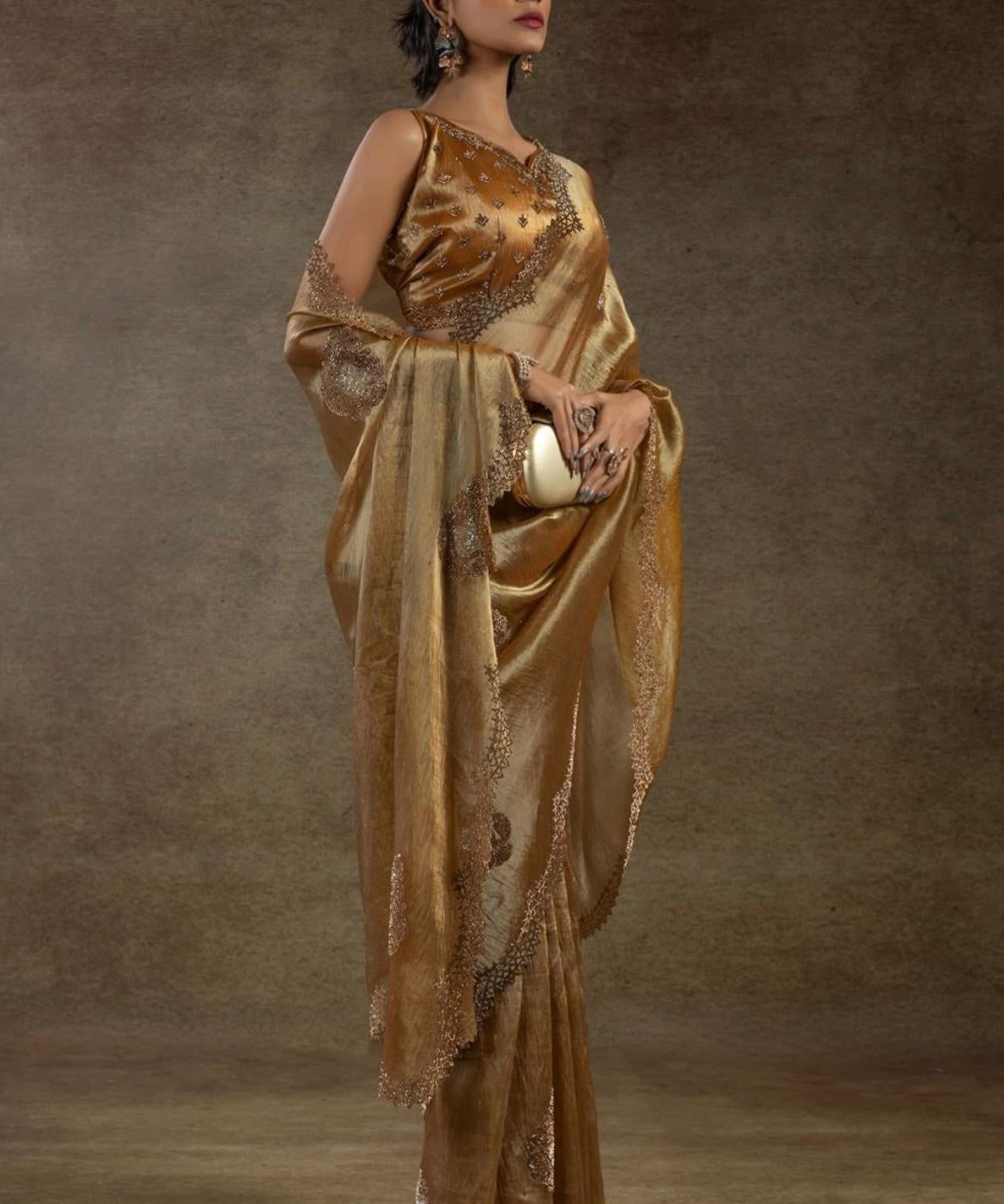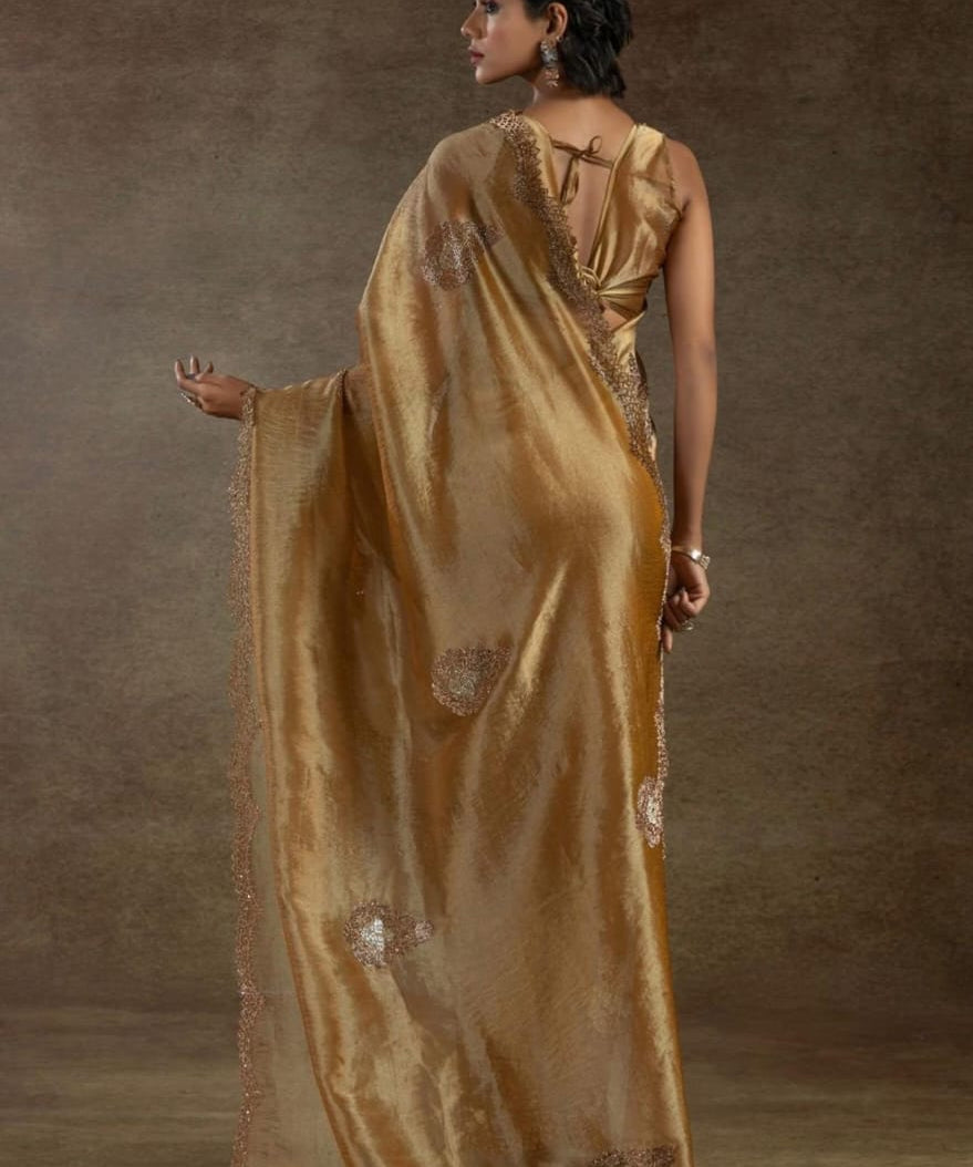 Premium Golden Zarkan Diamond Saree