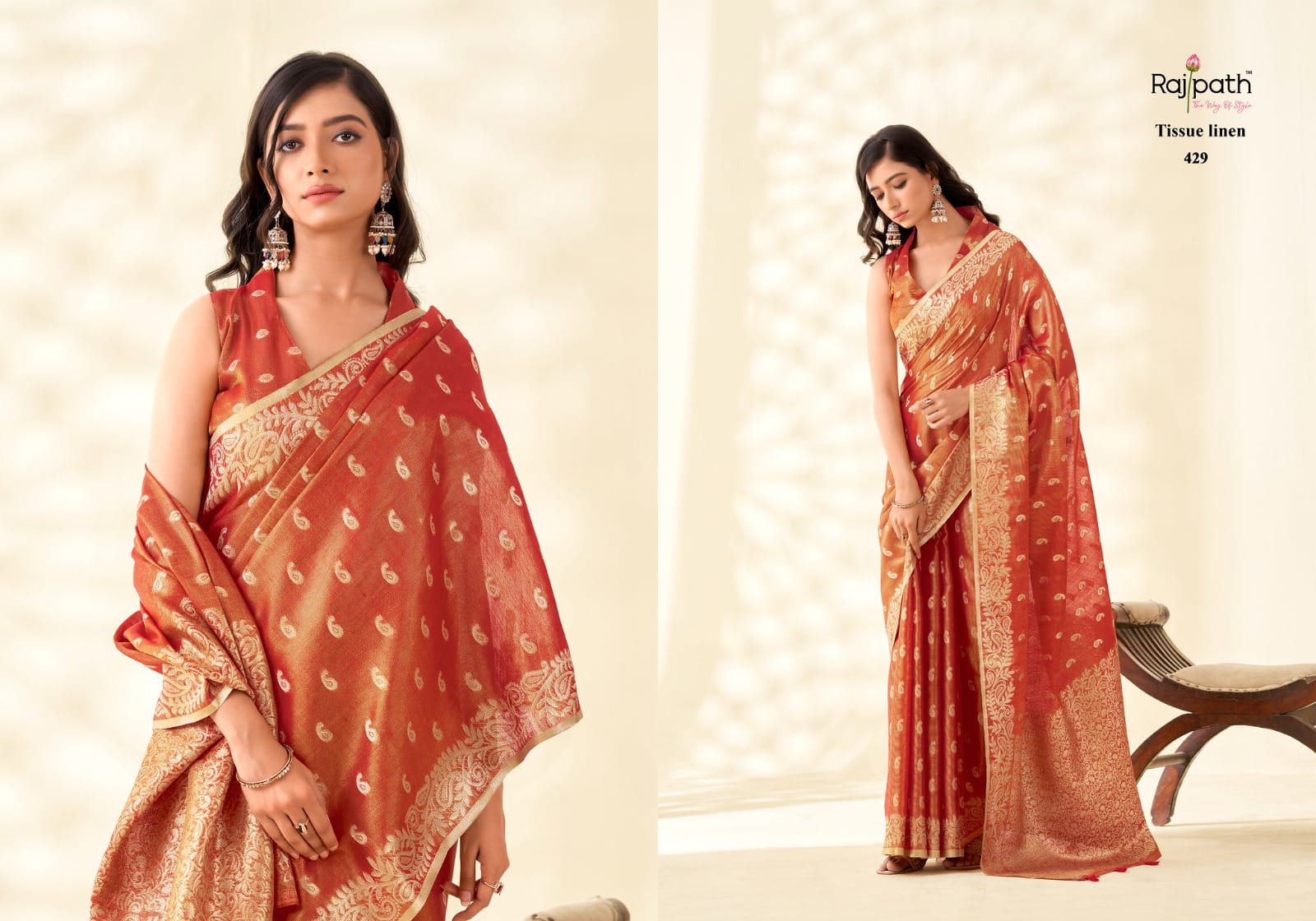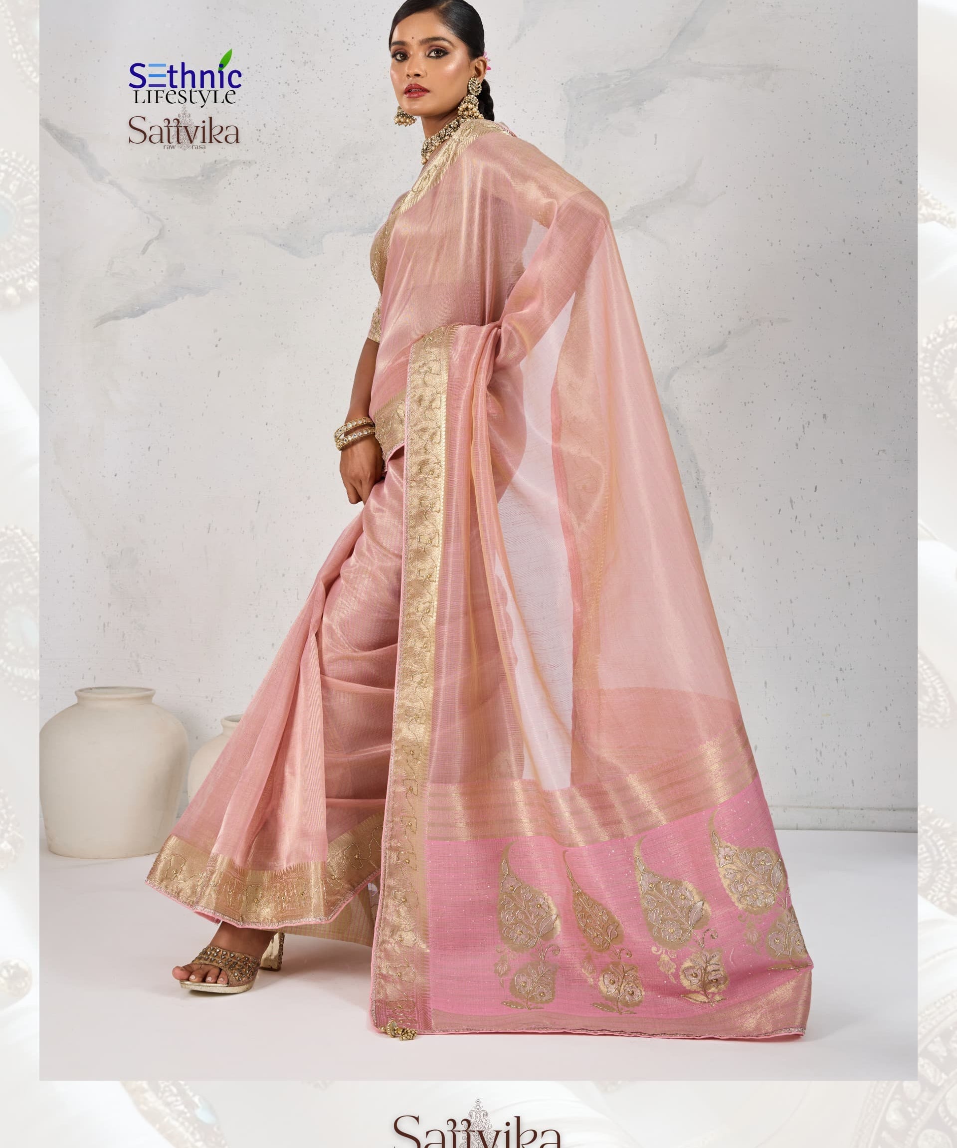 Handcrafted Sattvika Tissue Linen Saree