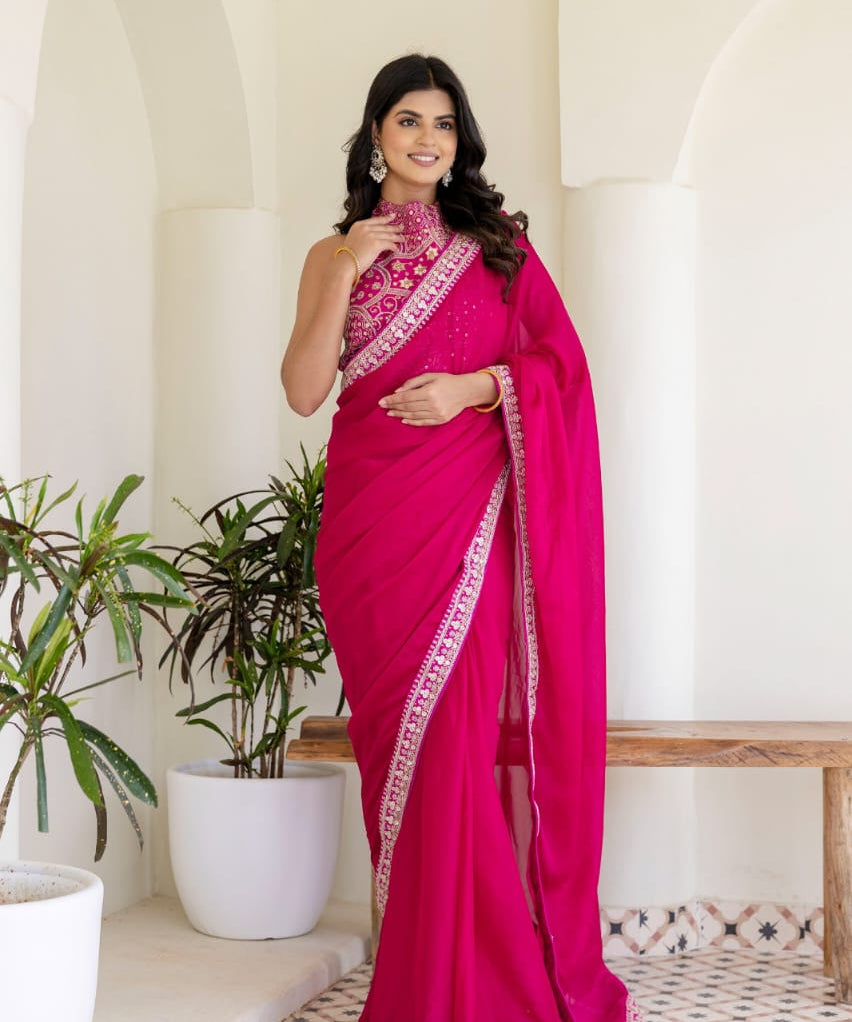 Pink Embroidered Border Saree