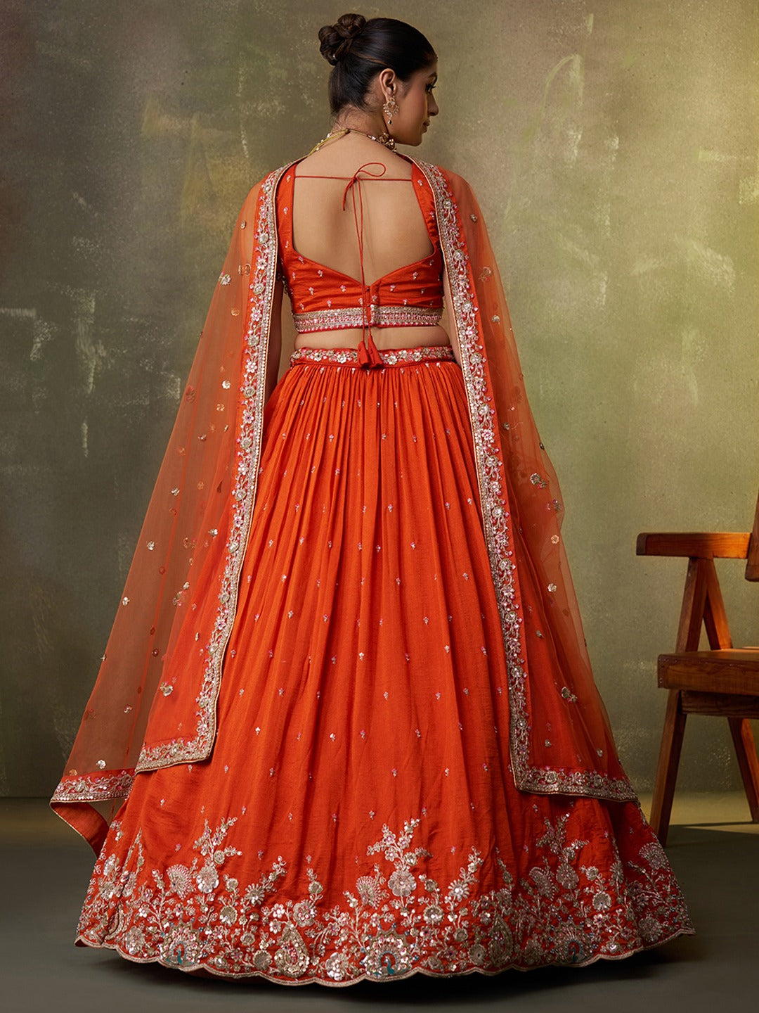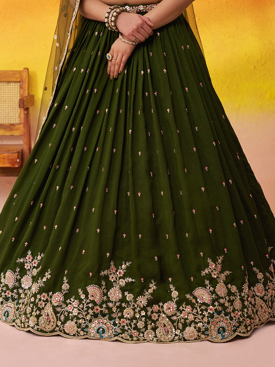 • Lehenga Fabric: Premium Olive Georgette