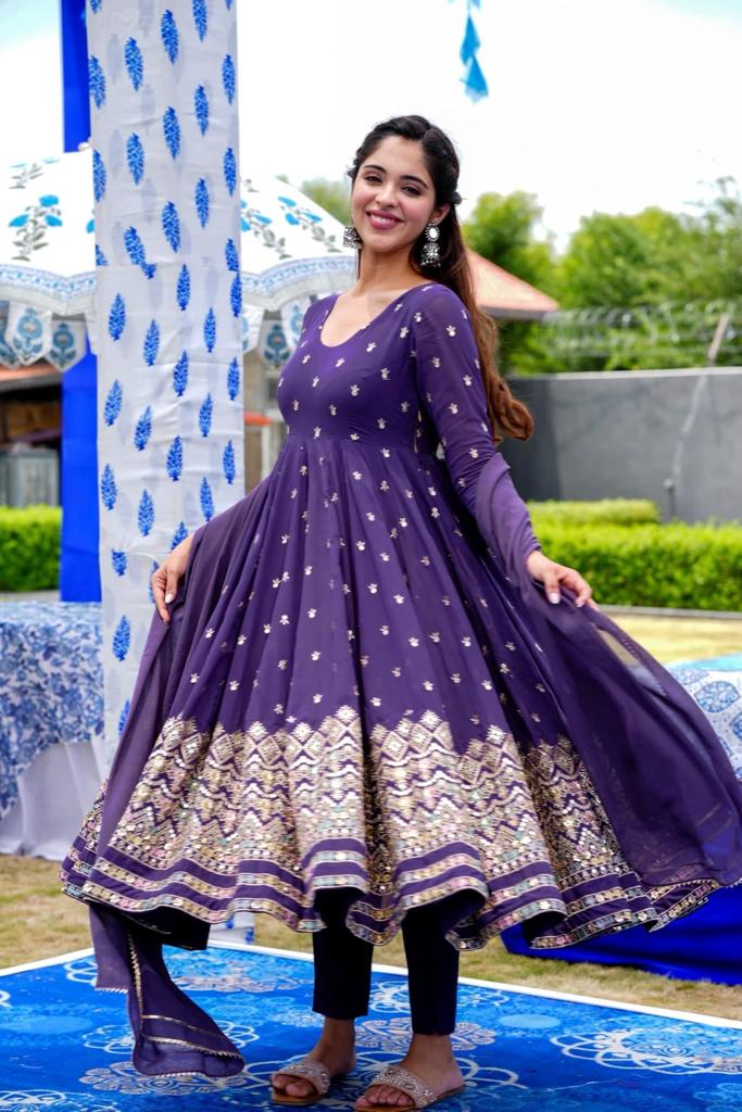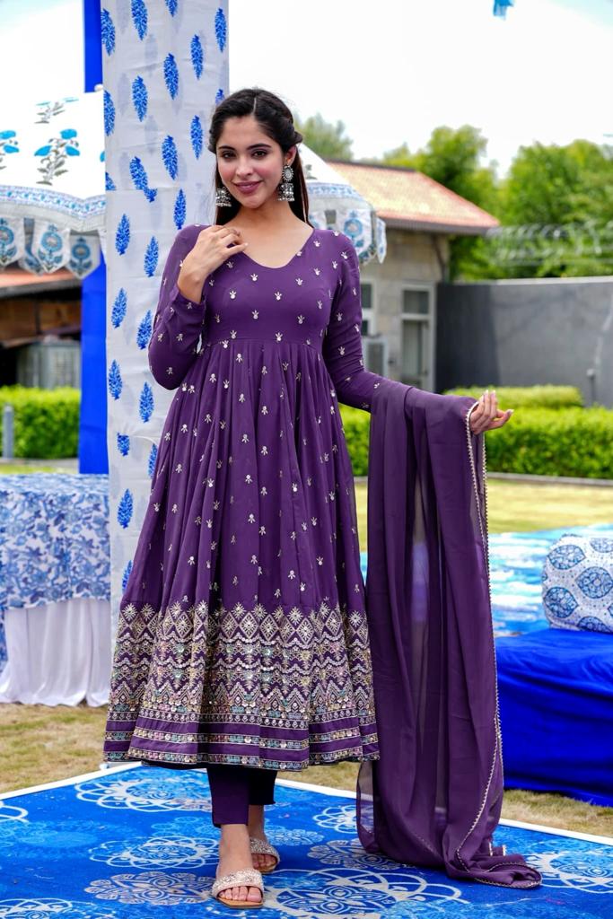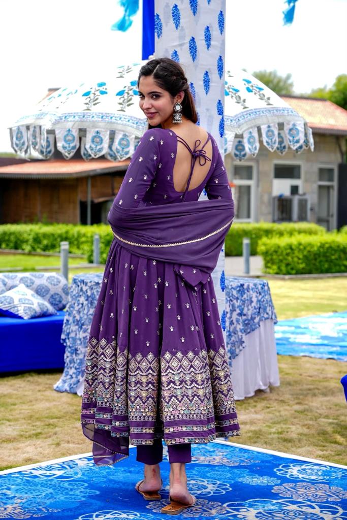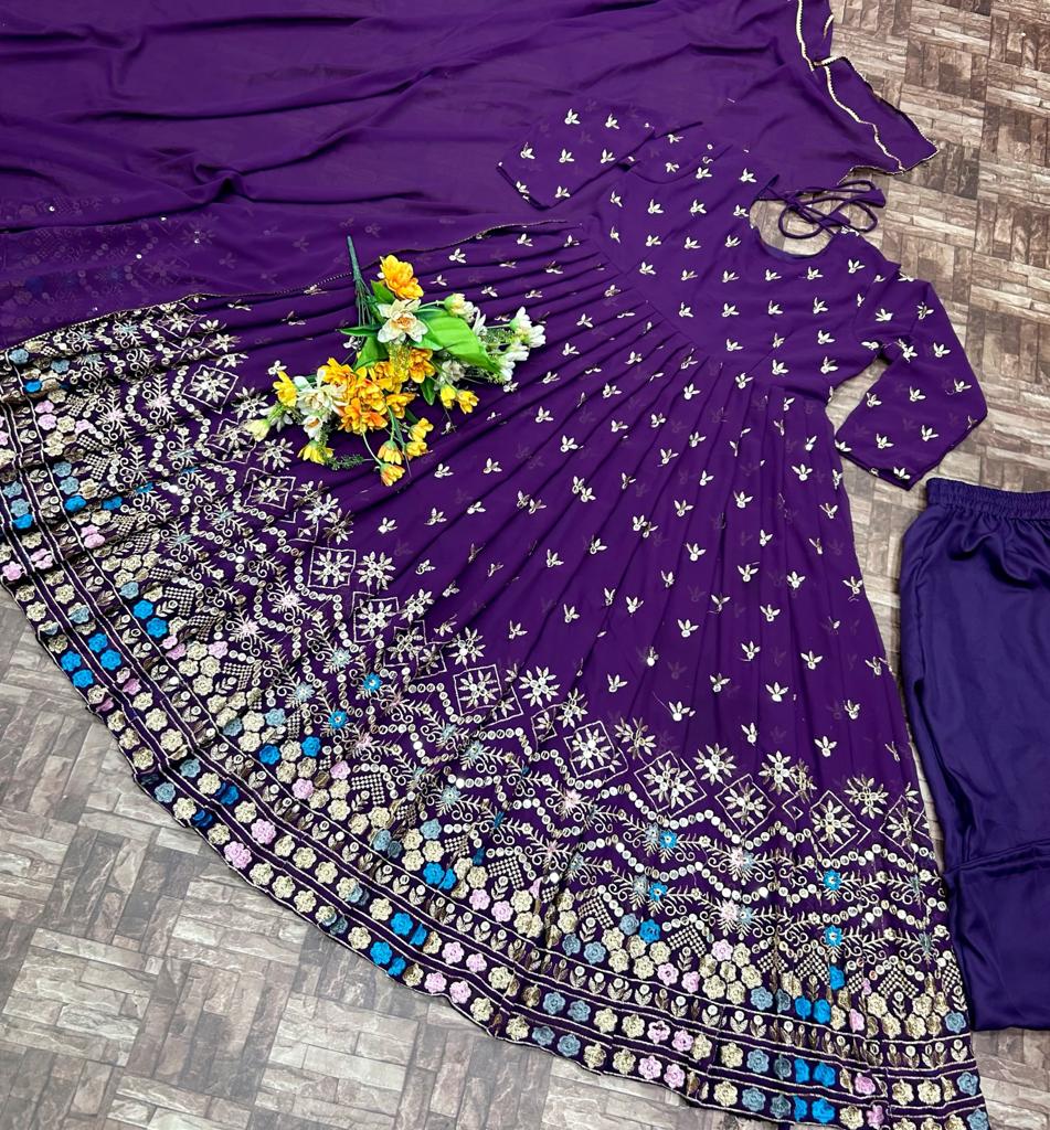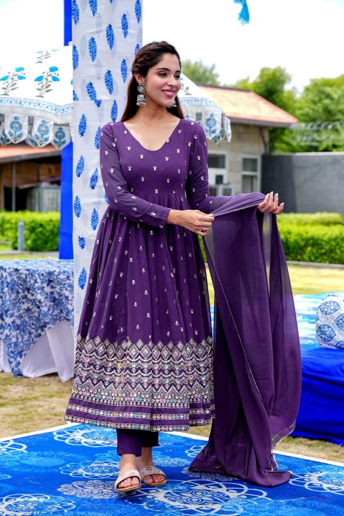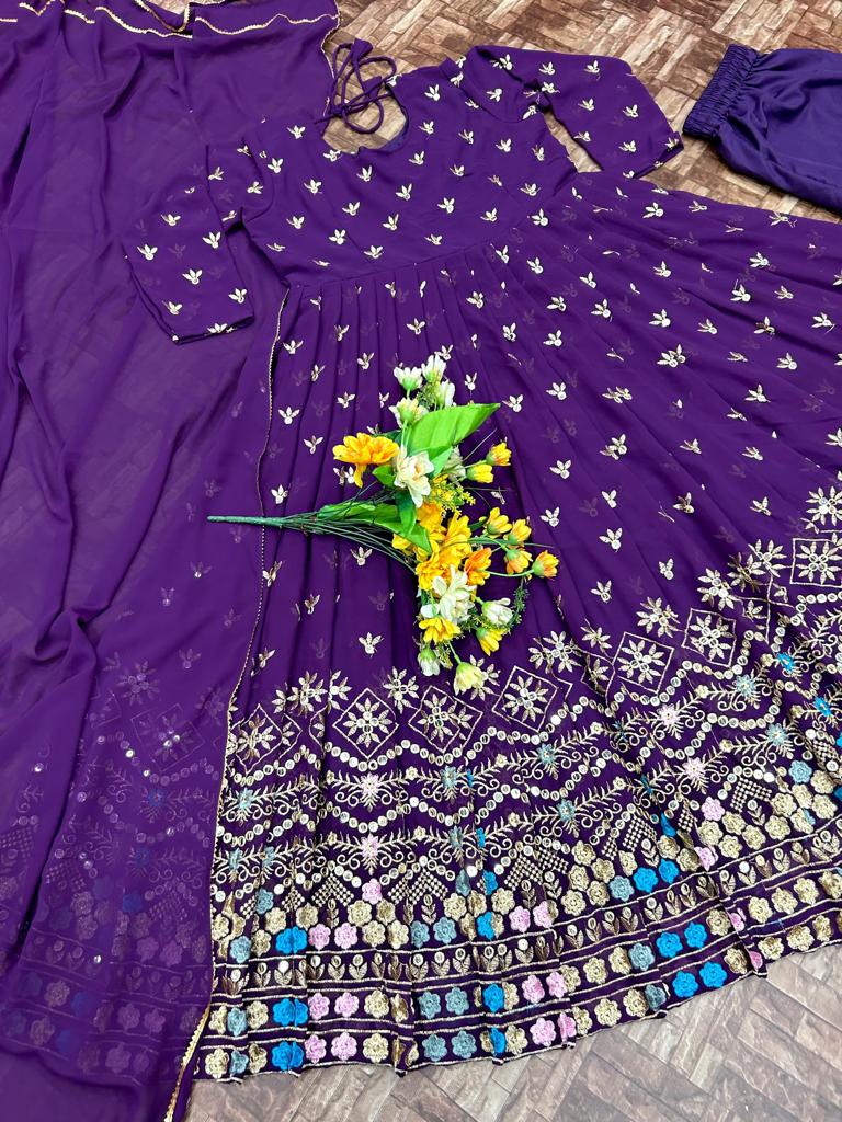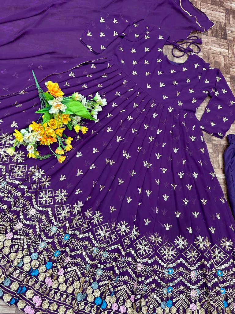 #GOWN FABRIC :FOX GEORGETTE WITH SIQUNCE EMBROIDERY WORK FULL STITCHING