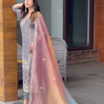 Top Fabric :Pur Jimmy Choo With Embroidery 5 mm Sequence Work With Pal Rivet Moti Work With Sleeve
