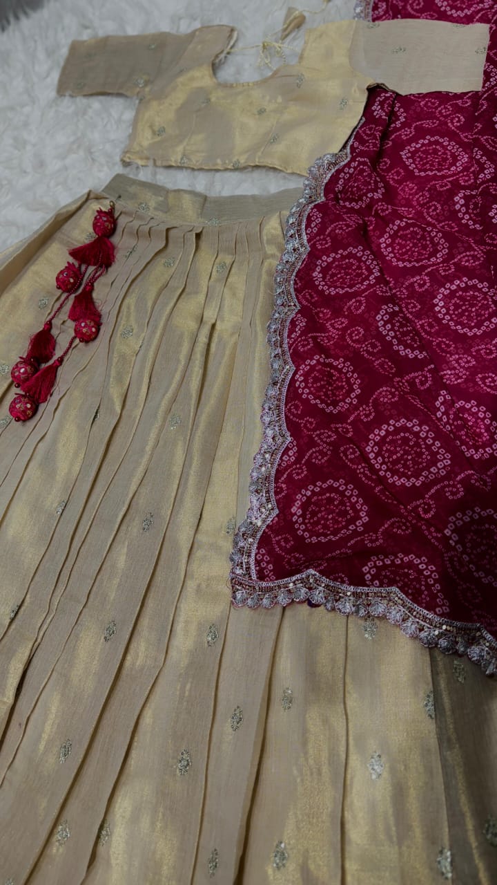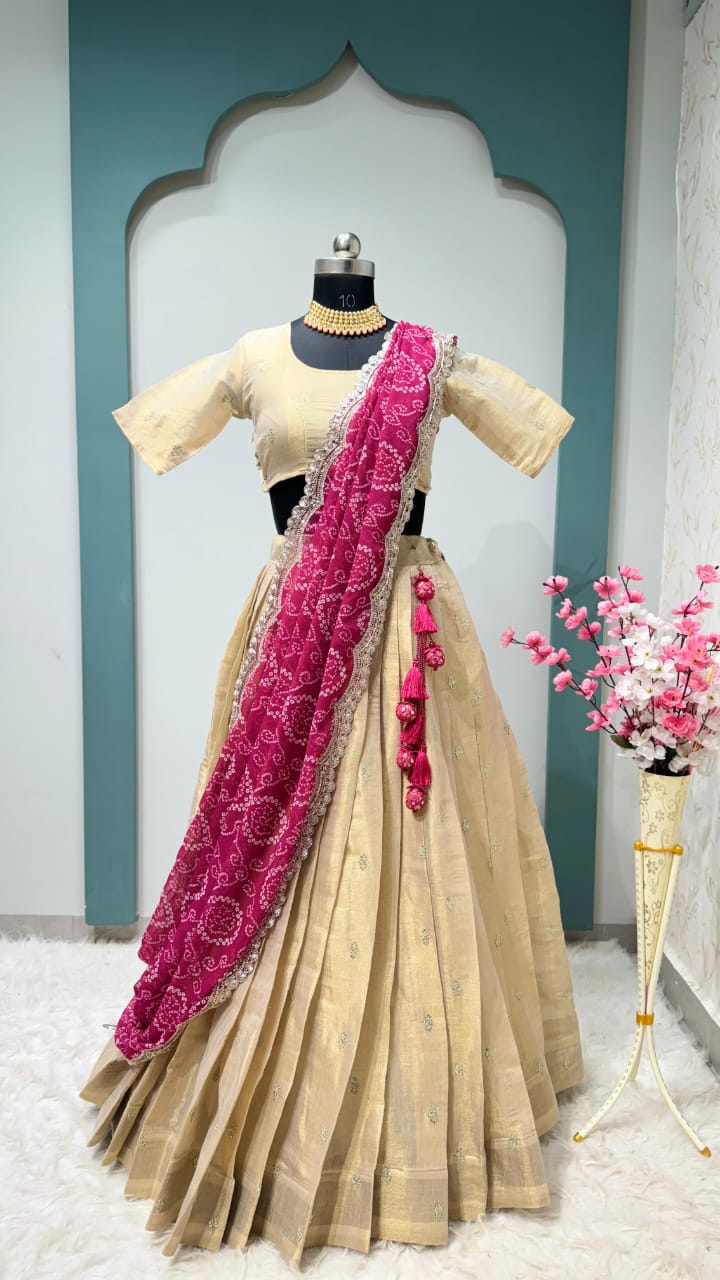 *Lehengas Fabric*:- Full stiched Premium Crafting Cosmos silk with beautifully Embroidered work attached with canvas patta
