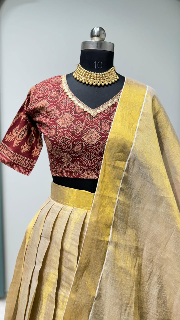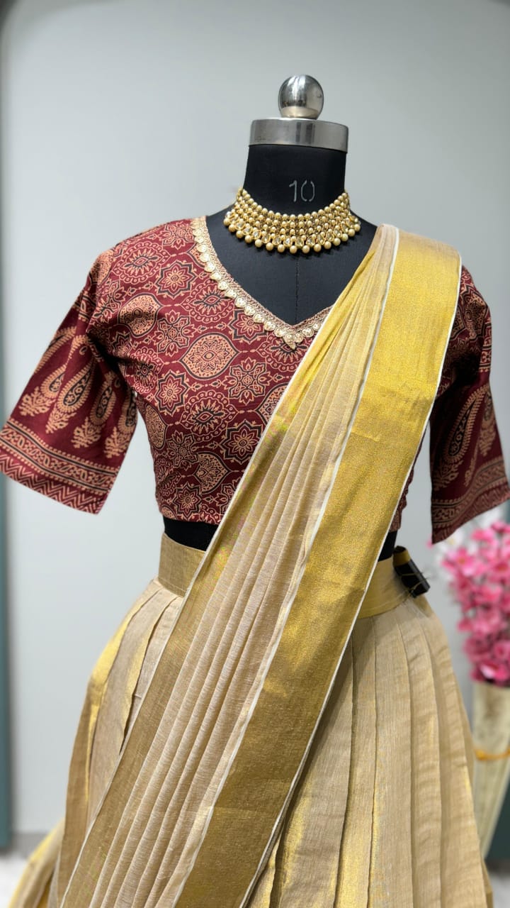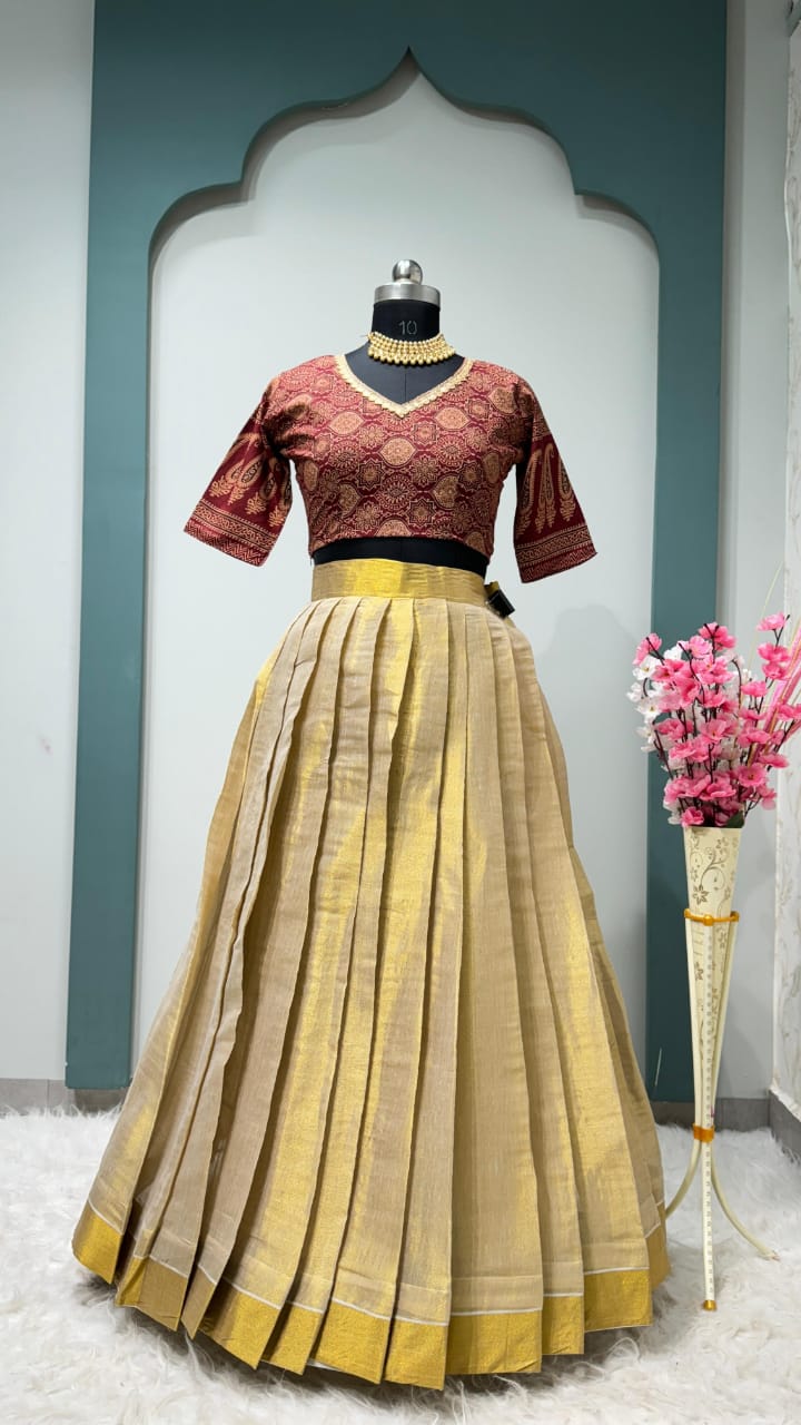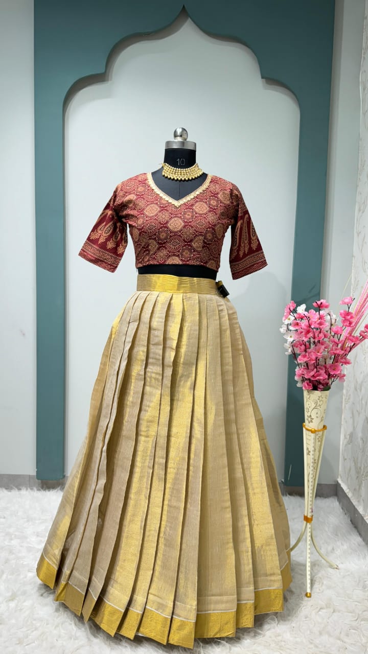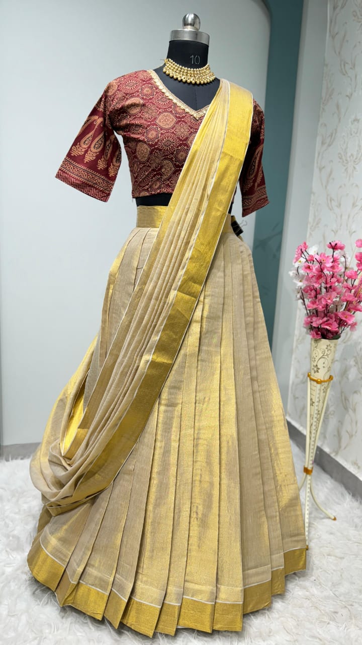 Lehengas Fabric:- Full stiched Premium Crafting Kerala silk with Zari Jacquard border