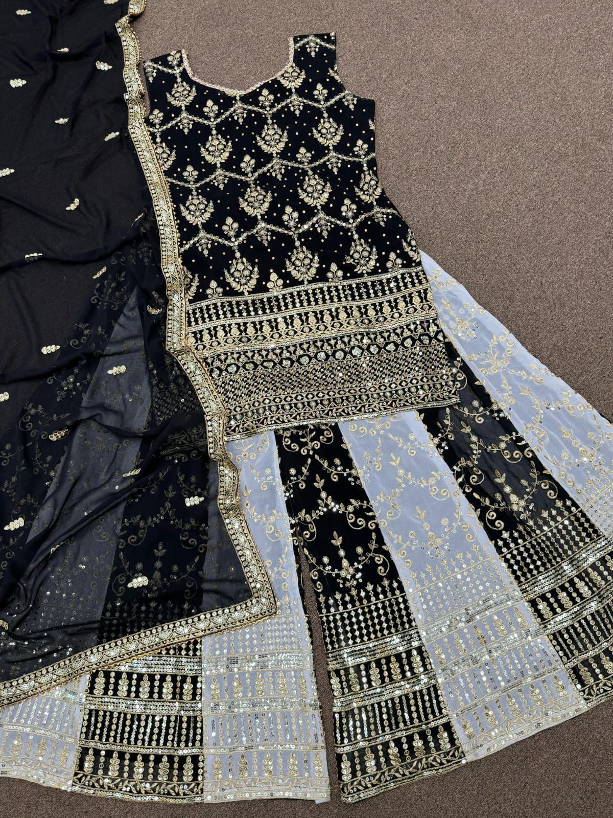 # Plazzo Work : Heavy Embroidery And 5mm Sequins Work