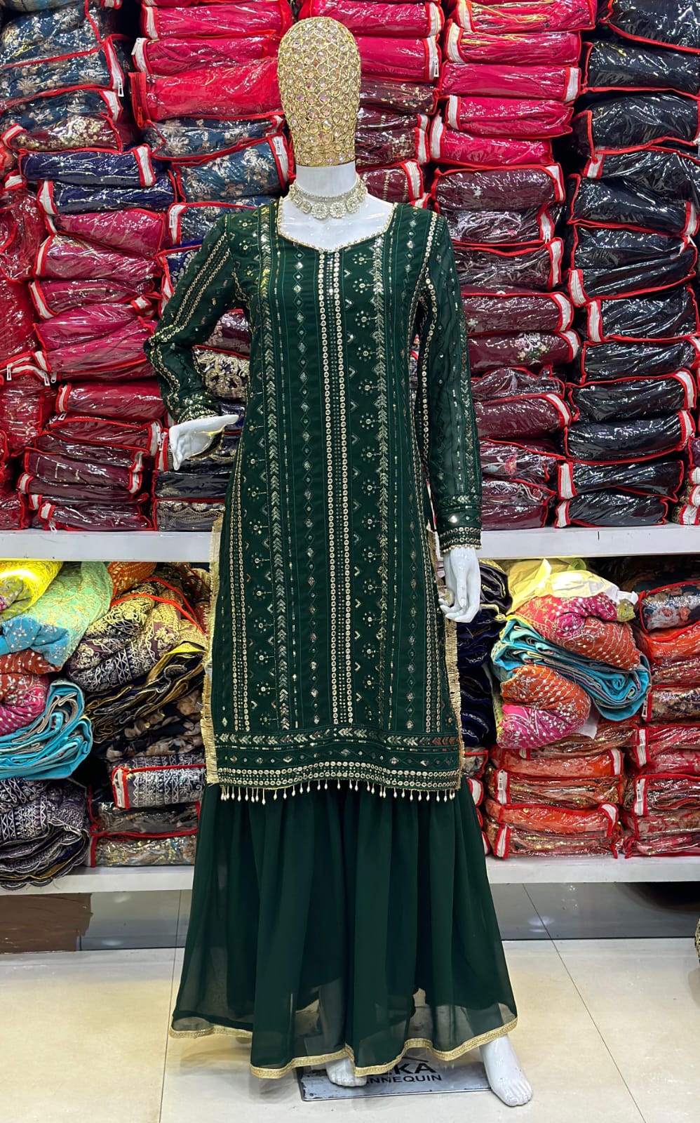 💃🏾TOP/ KURTI:PURE FAUX GEORGEET WITH EMBROIDERY SEQUENCE DESIGN WORK