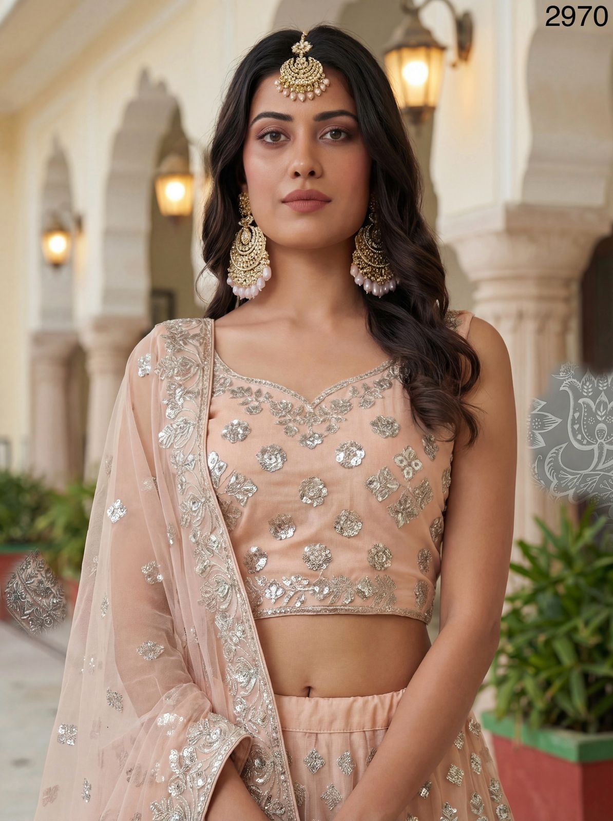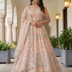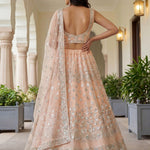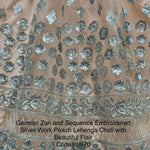 German Zari and Sequence Embroidered Silver Work Peach Lehenga Choli with Beautiful Flair