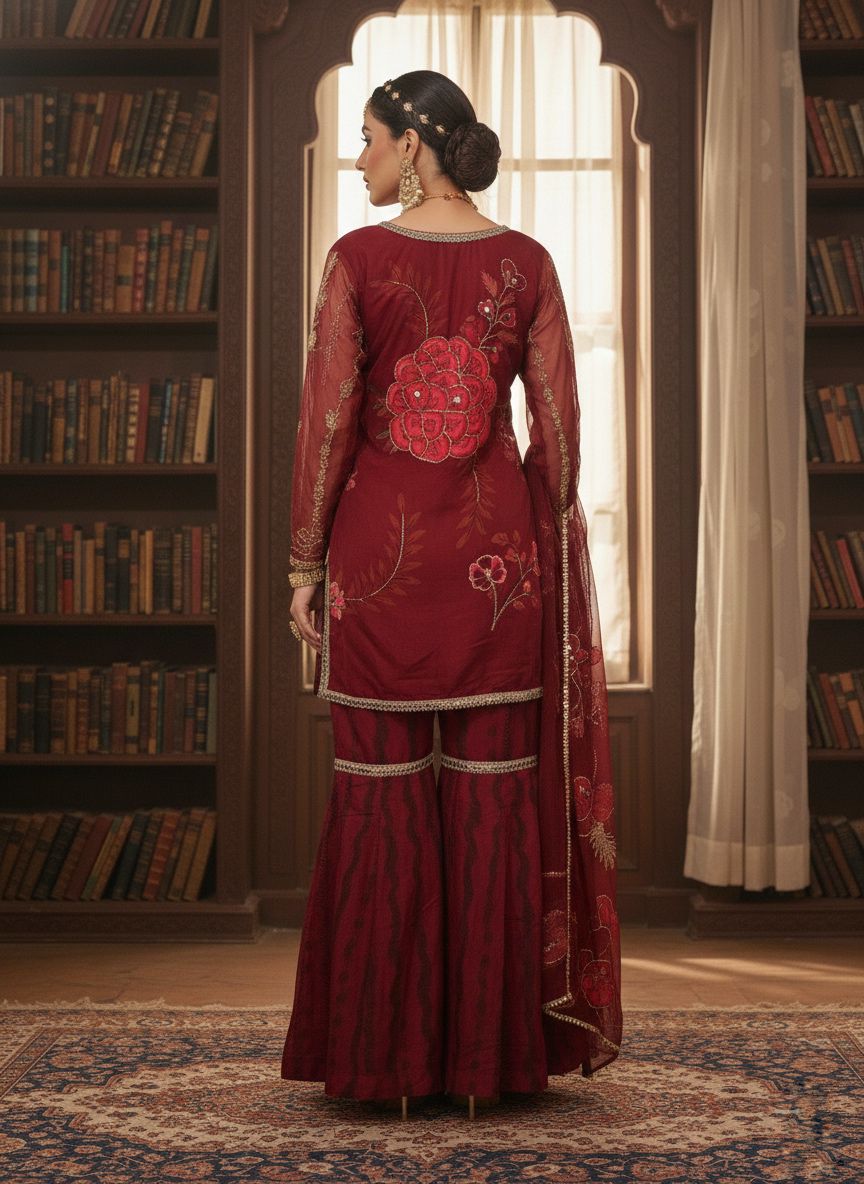 🌸 Dupatta: 2.3M Tabby Silk with matching Hand Sequins work