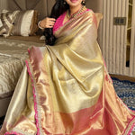 Make a statement with elegance! 💃🏽 #BanarasiTissue #NewLaunch #SilkSaree  #TissueSilk #SareeGoals"