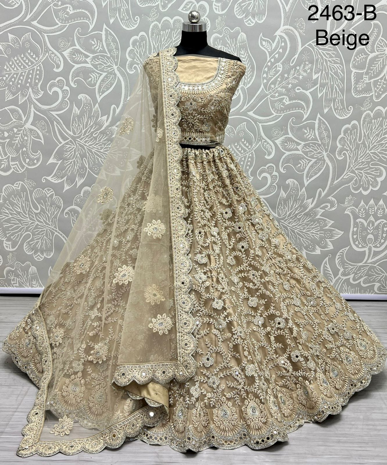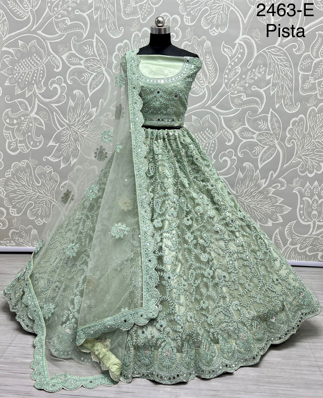 Heavy Bridal Net Embroidered Zircon diamond work Designer Lehengacholi