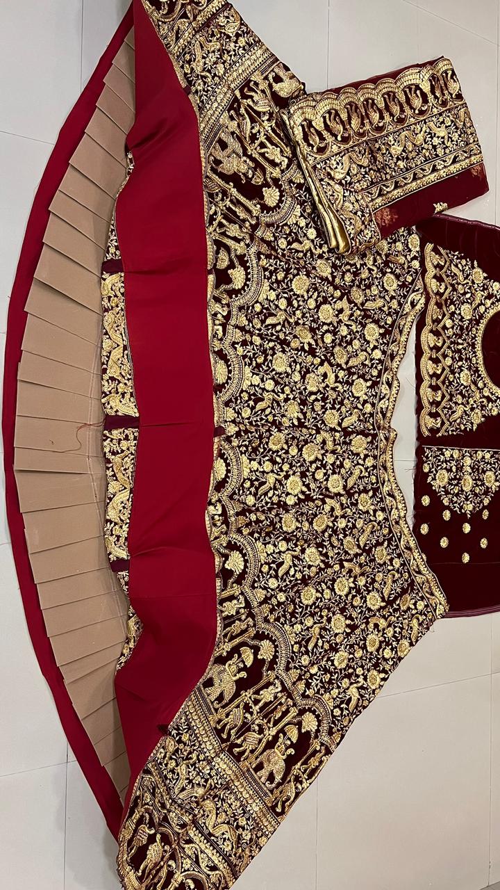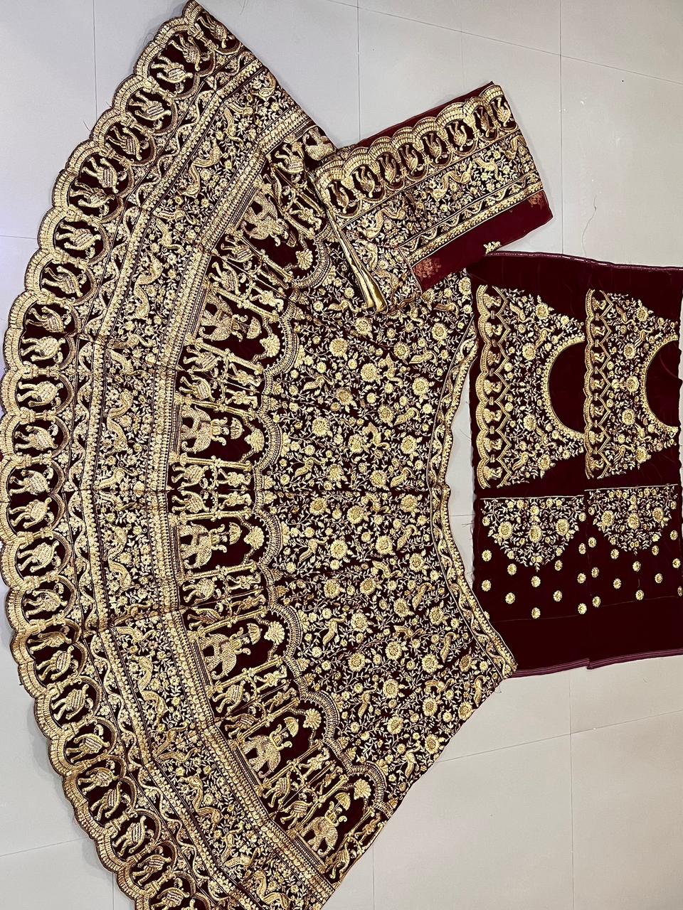 Heavy Bridal Wedding Velvet Lahengha