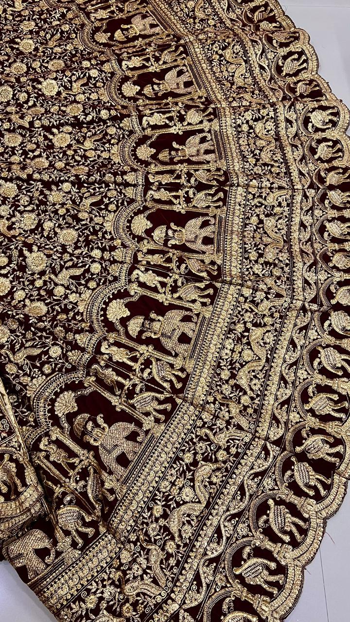 ❤️‍🔥Lehanga : 9000 VELVETTE with Heavy Zari, Badla Zari Embroidery work Embellish With Heavy Diamond Work & Lace