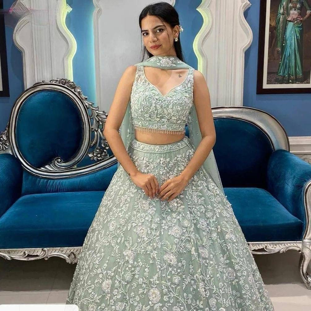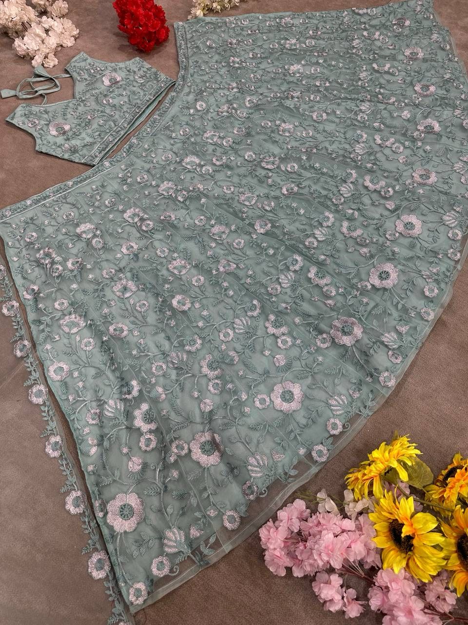 LEHNGA:NET WITH EMBROIDERY DESIGN WORK