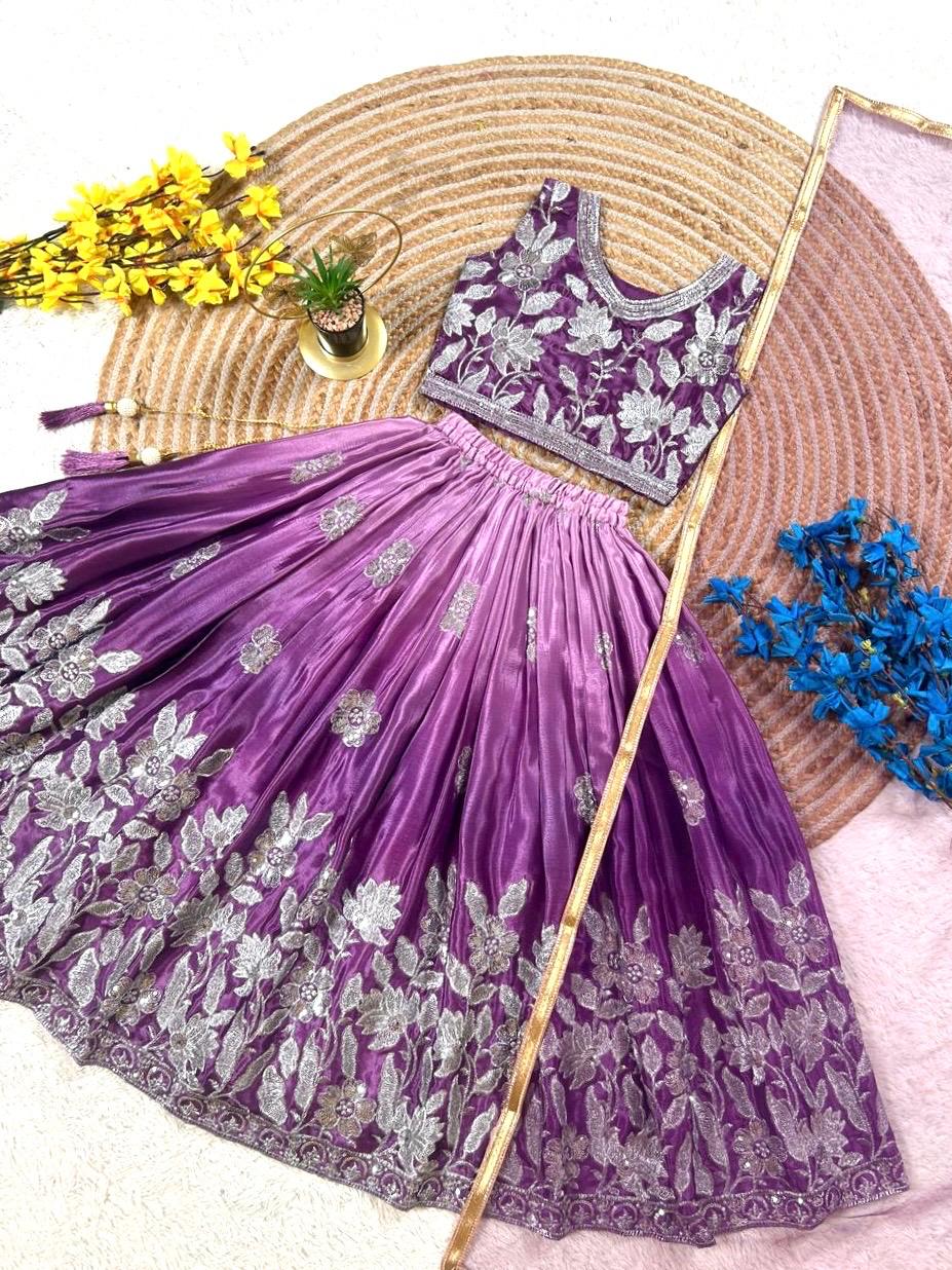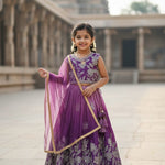 Purple Kids Embroidered Silk Lehenga Choli