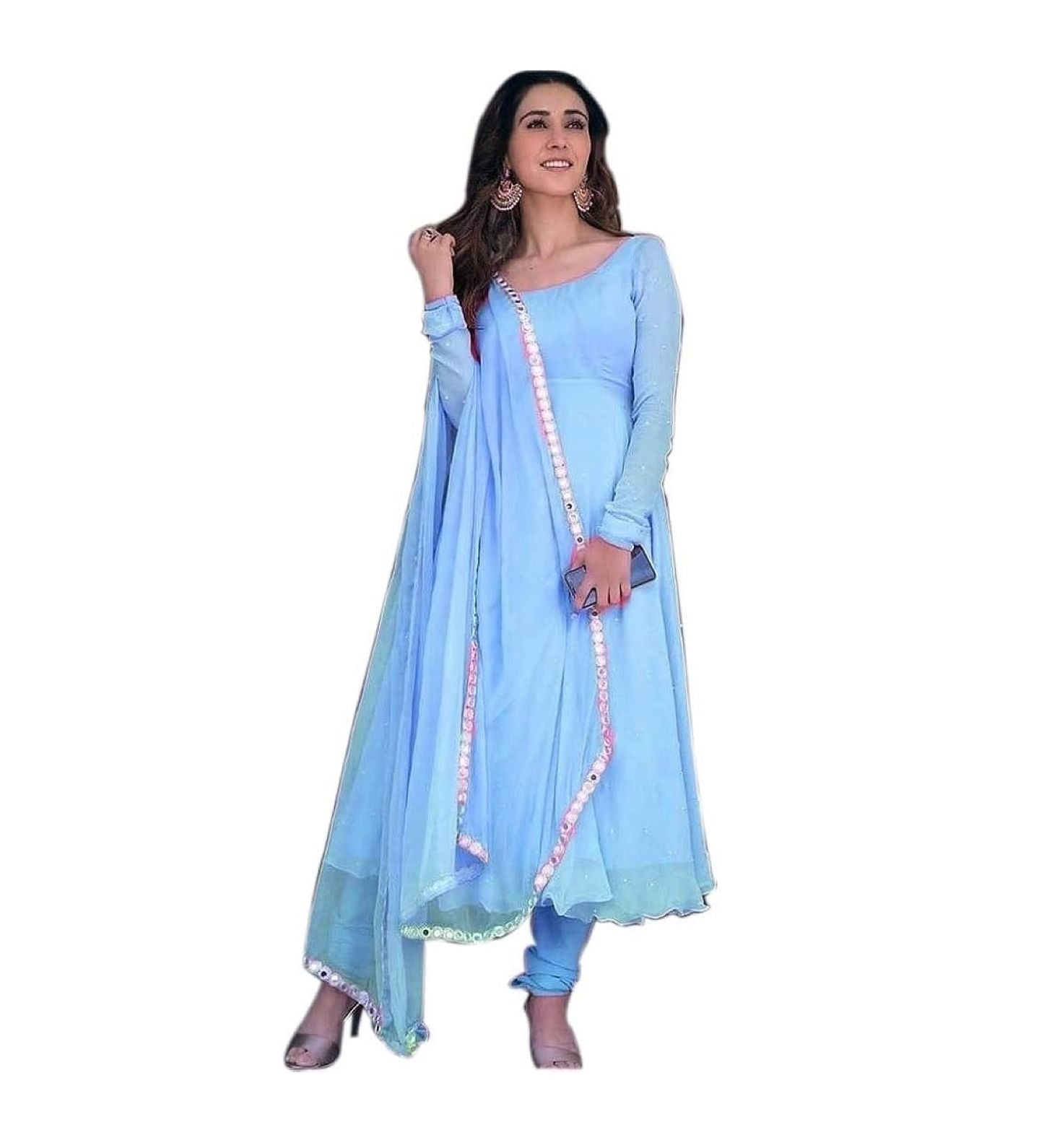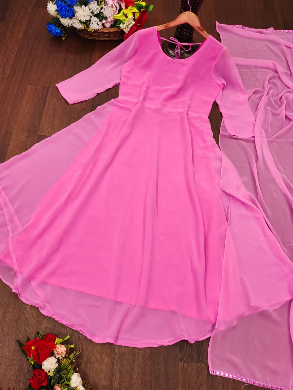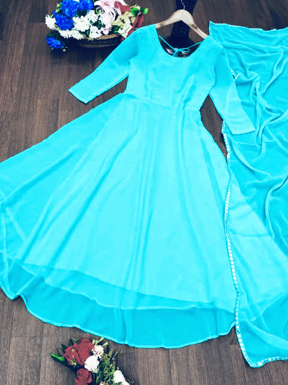 Gown Fabric :Heavy Faux Georgette With Embroidery Less Work