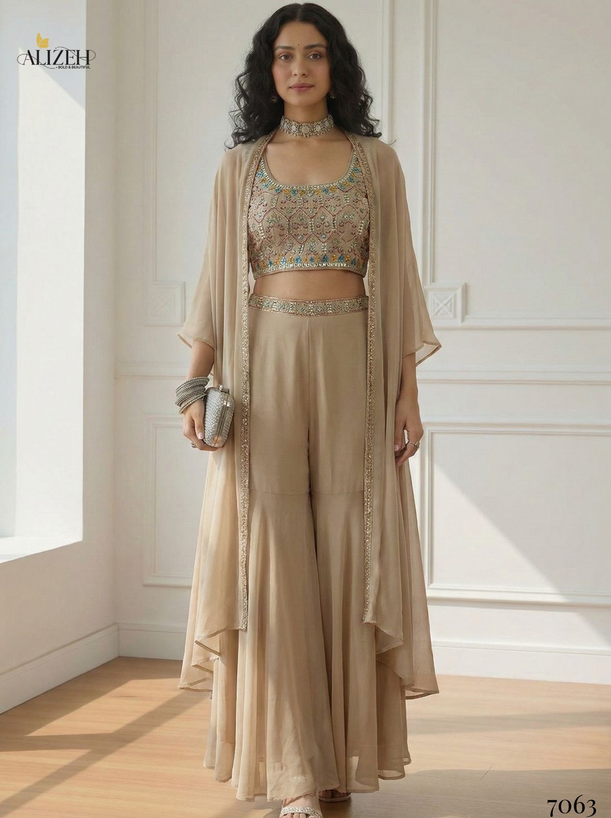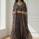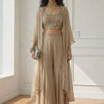 Georgette Blouse, Sharara & Cape With Santoon Inner