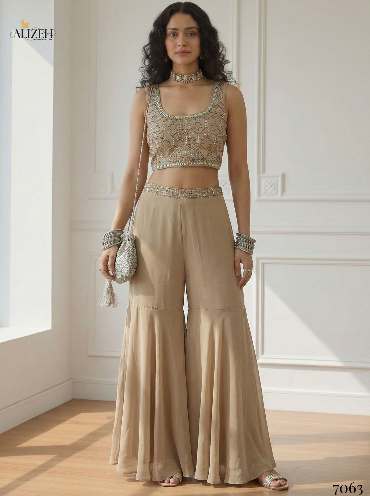 Georgette Top, Sharara & Dupatta With Santoon Inner
