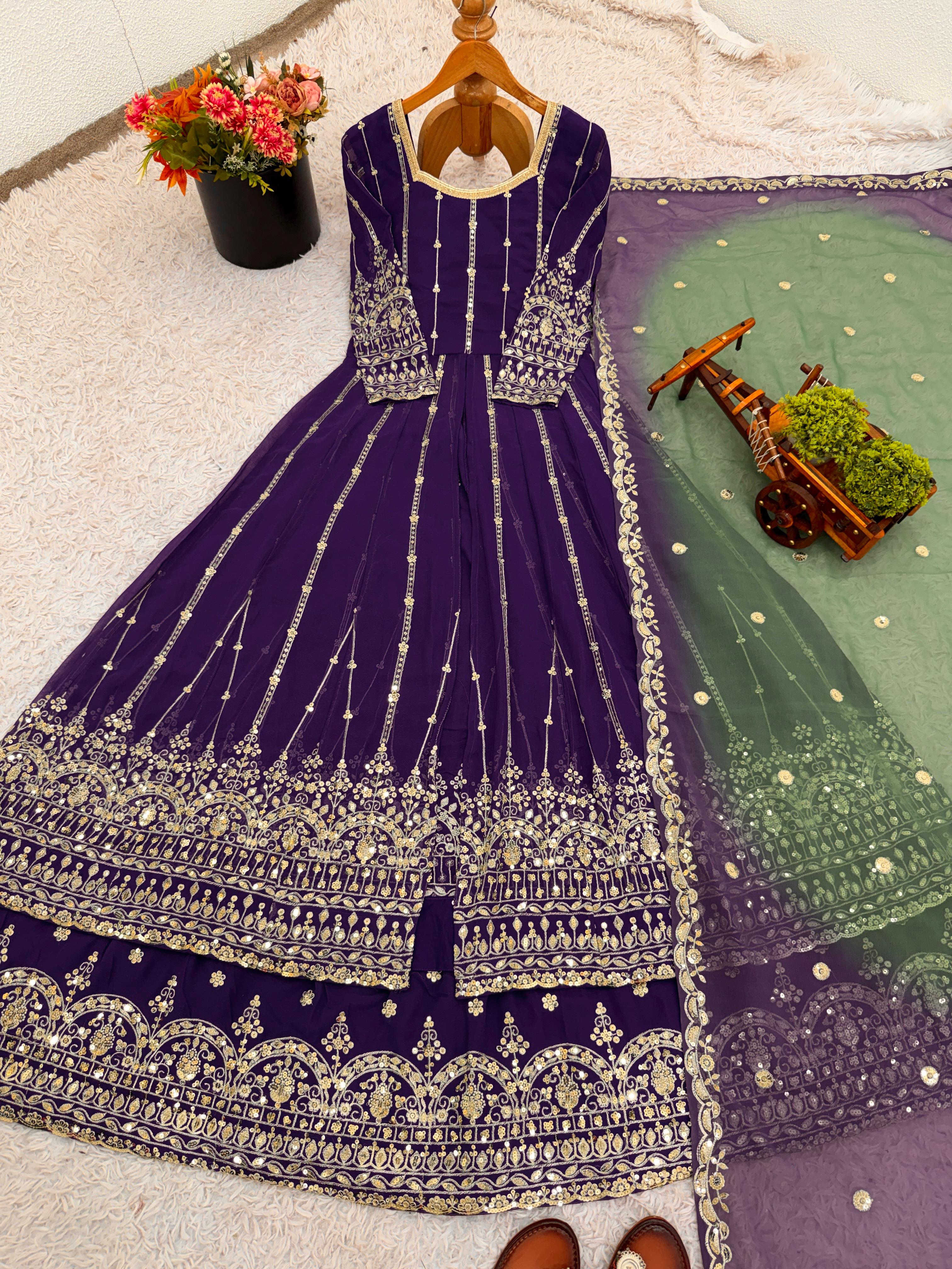 *Top Fabrics*         :Pure Heavy Faux Georgette With Embroidery Sequence Work* With Full Sleeves
