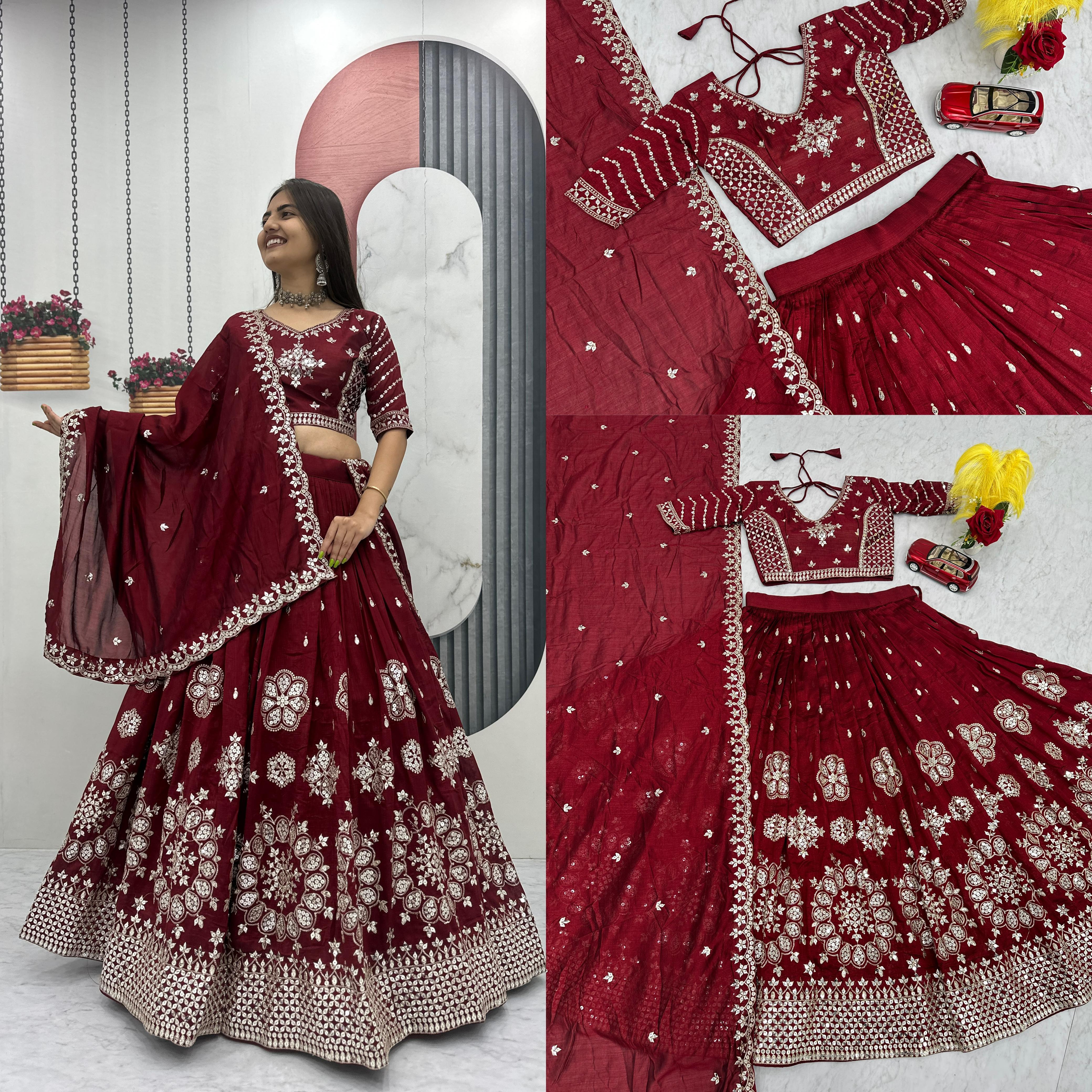 Maroon Bridal Embroidered Lehenga