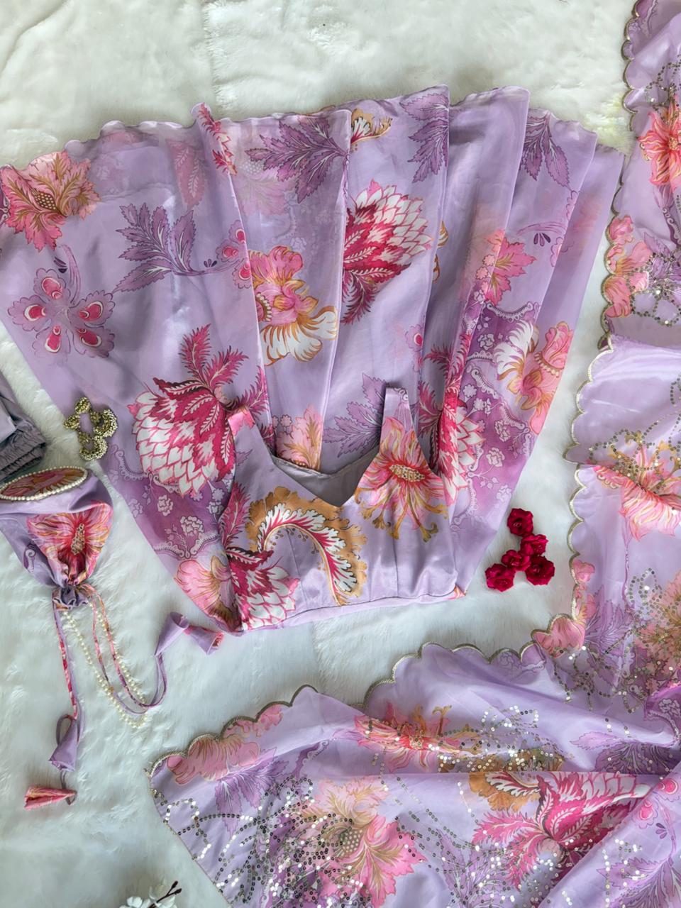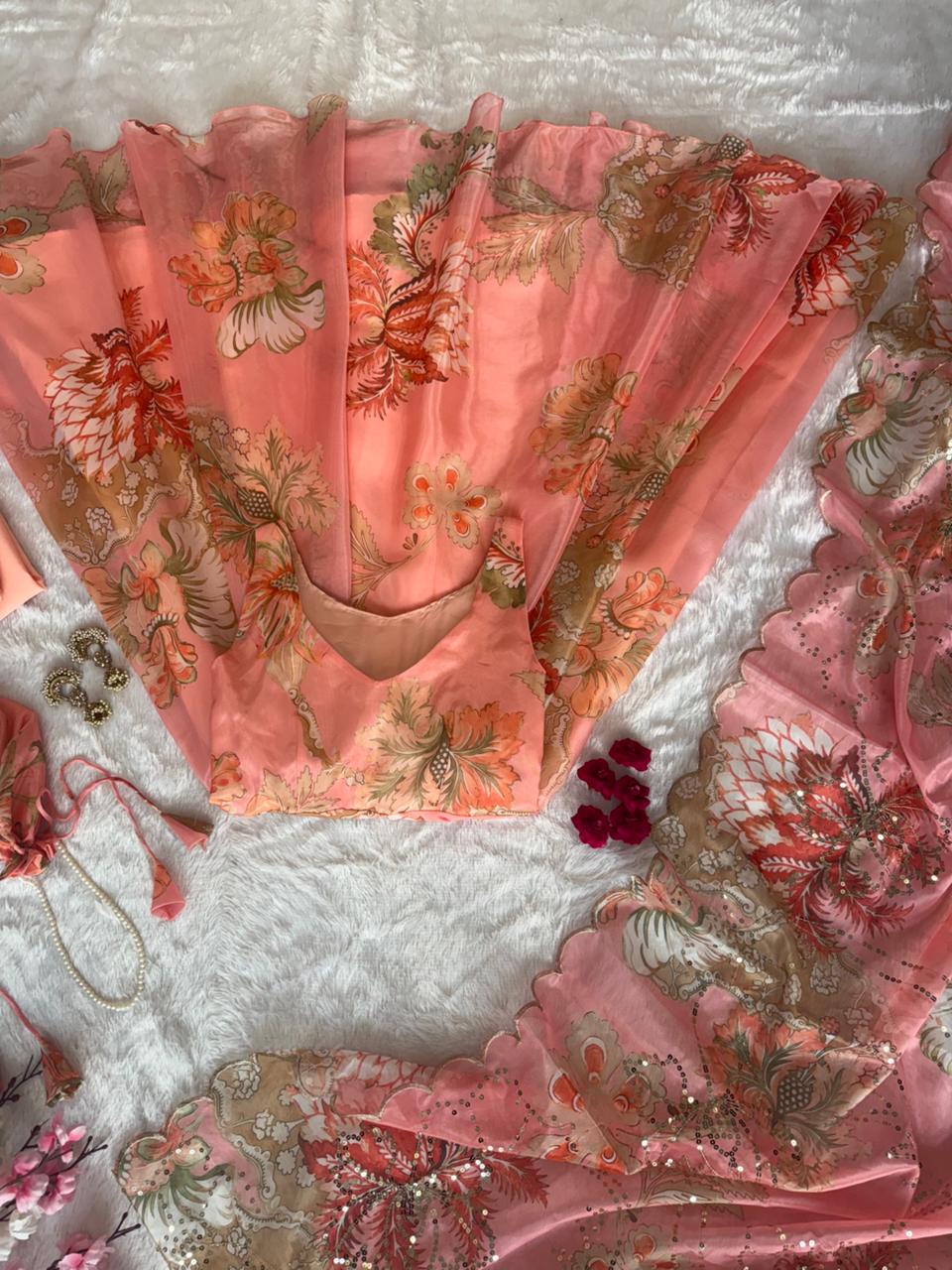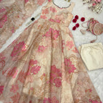 * Anarkali suit* - pure Jimmy organza silk digital printed padded anarkali with mirror work on neck !!48+.  Anarkai length !!4,5Mtr  Flair outfit ! 🔥