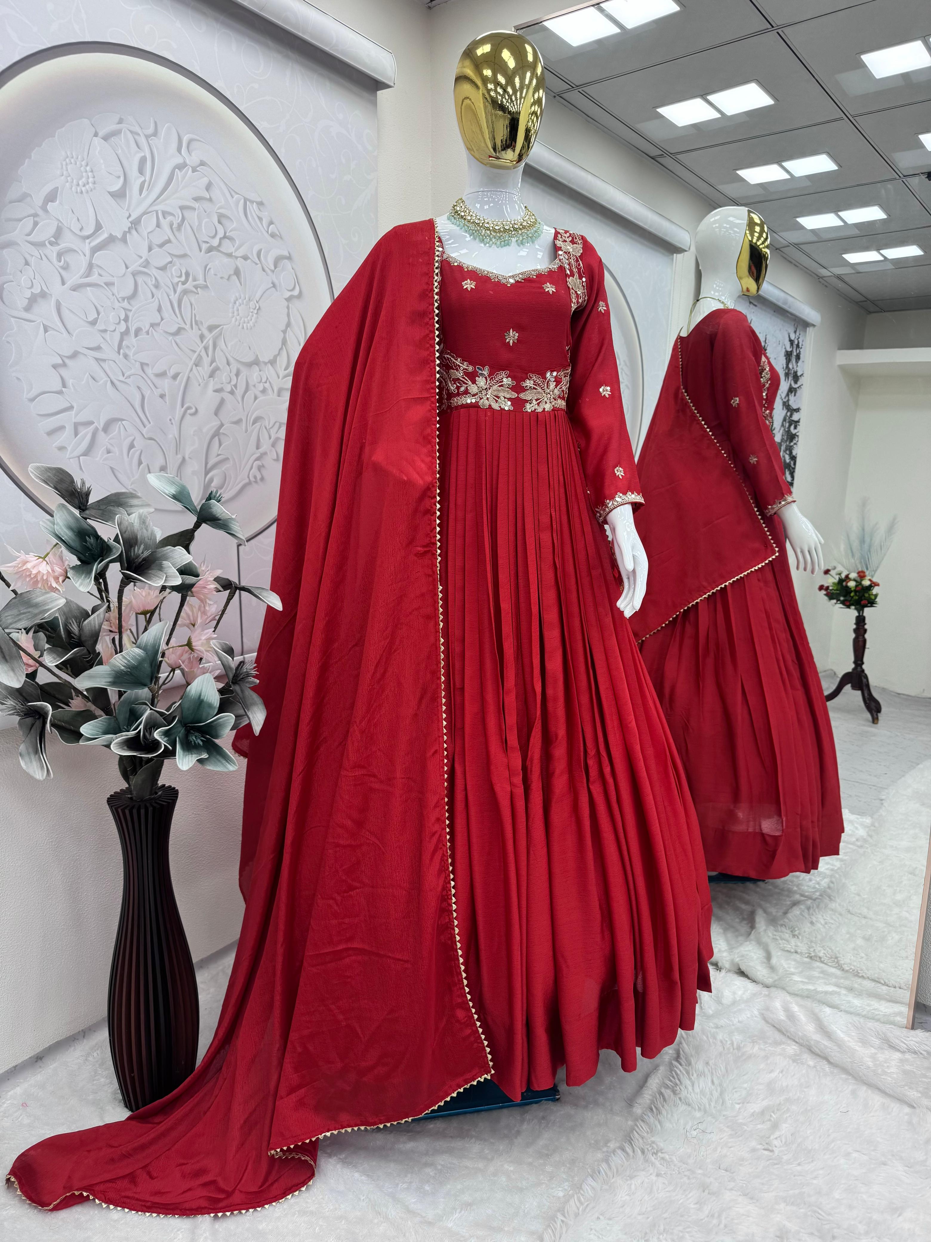 Reddish Designer Silk Anarkali Gown