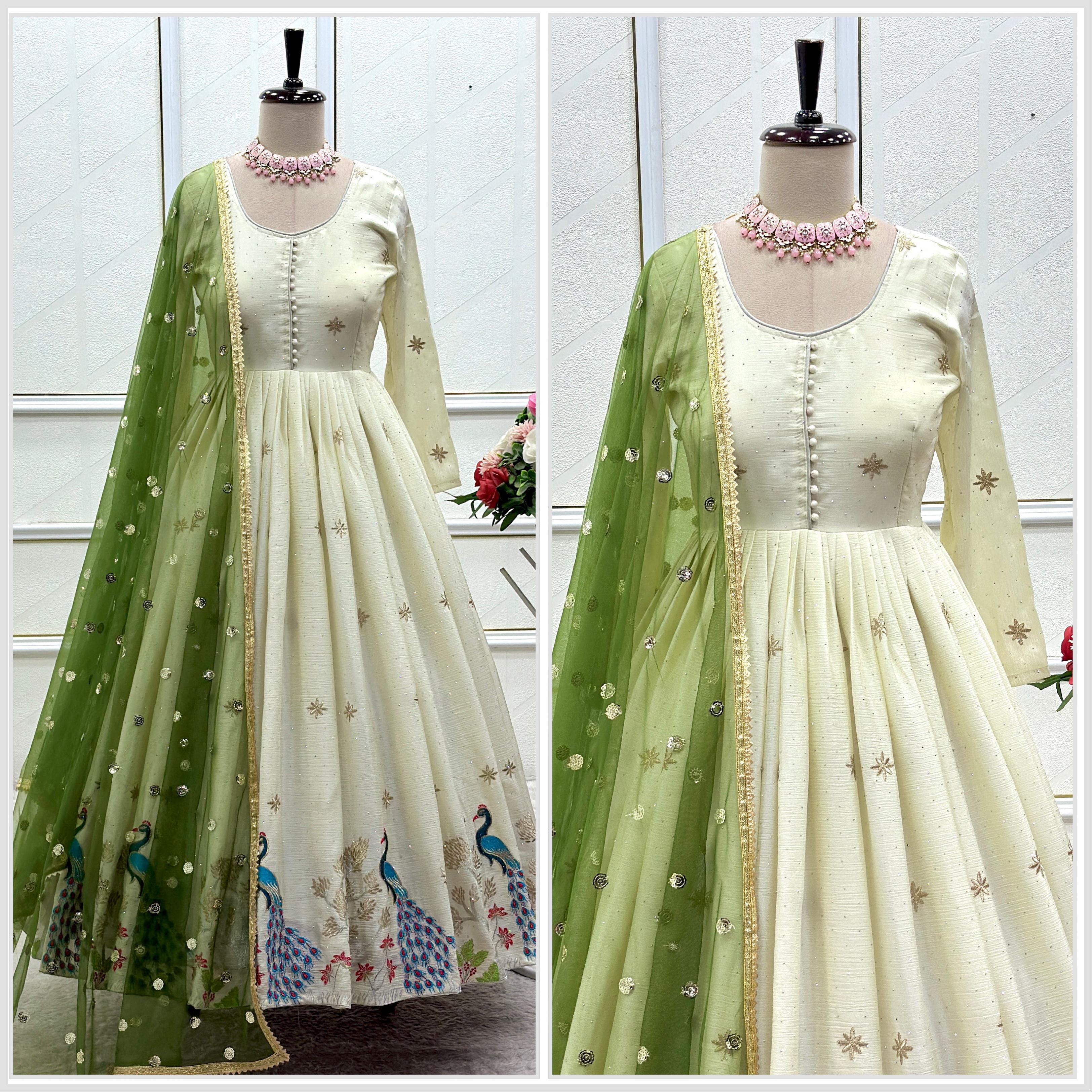 *Top Fabric* : Pure Dola Silk With Molty Nidal Embroidery Work With *💎Siroski Diamonds* Work With Sleeves With (*Attached Ped With Pottly Bottom With Fency Latkan dori*)