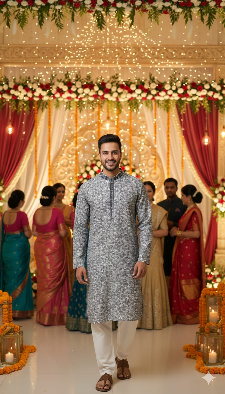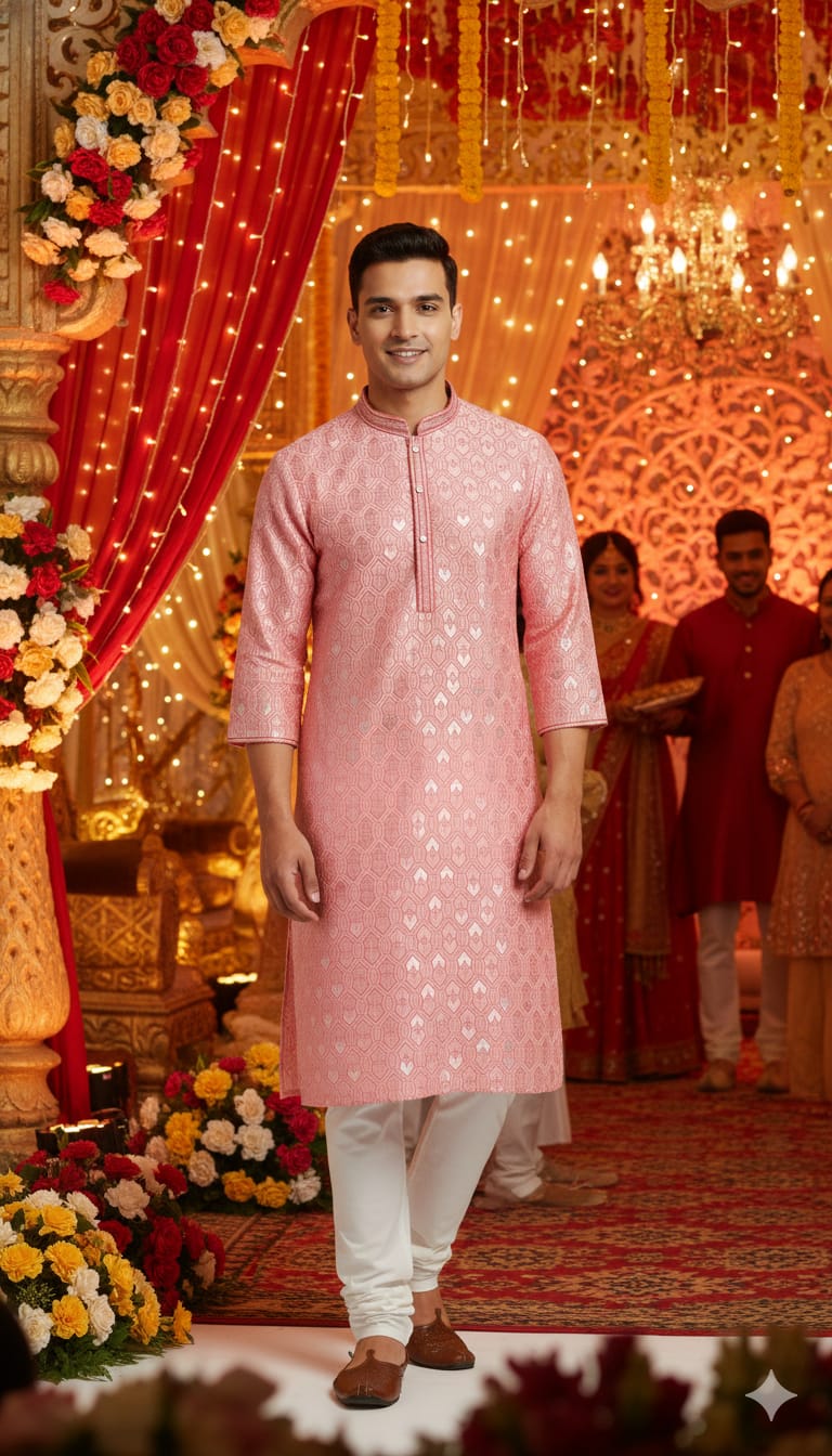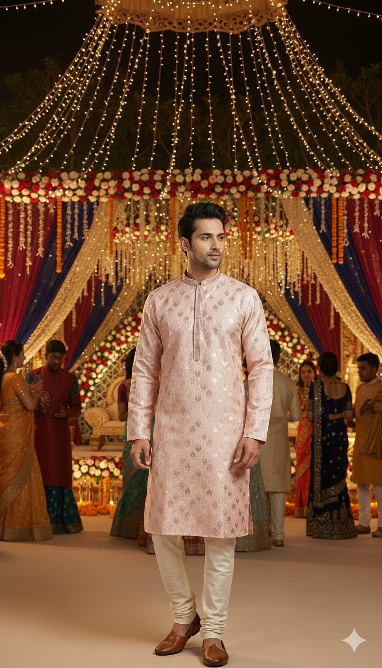 Wedding Men's Jacquard Silk Kurta