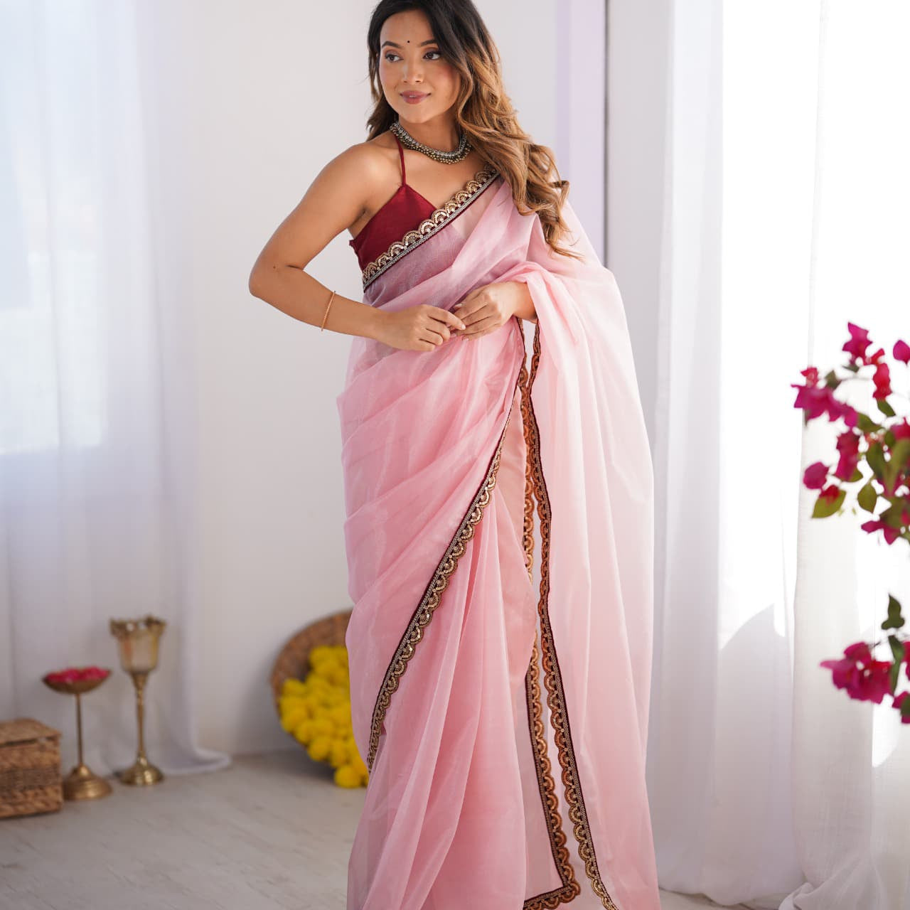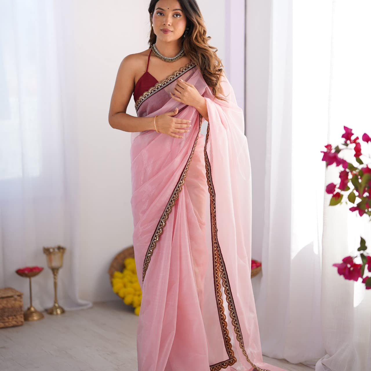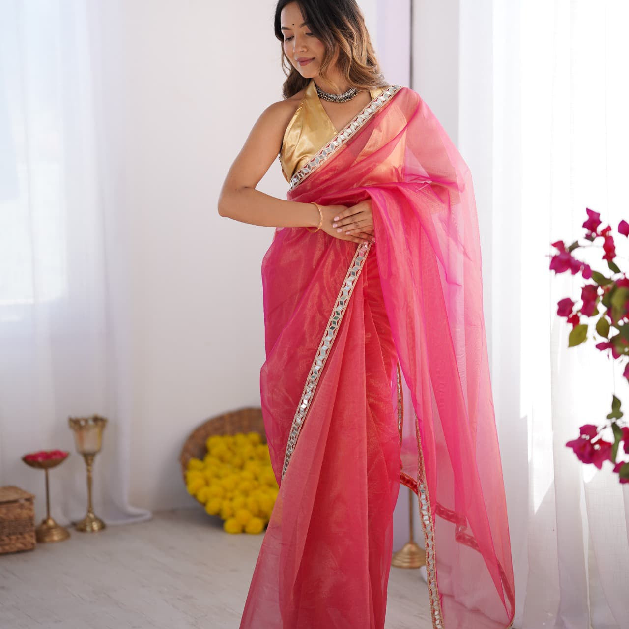 Pink Twill Net Saree Collection