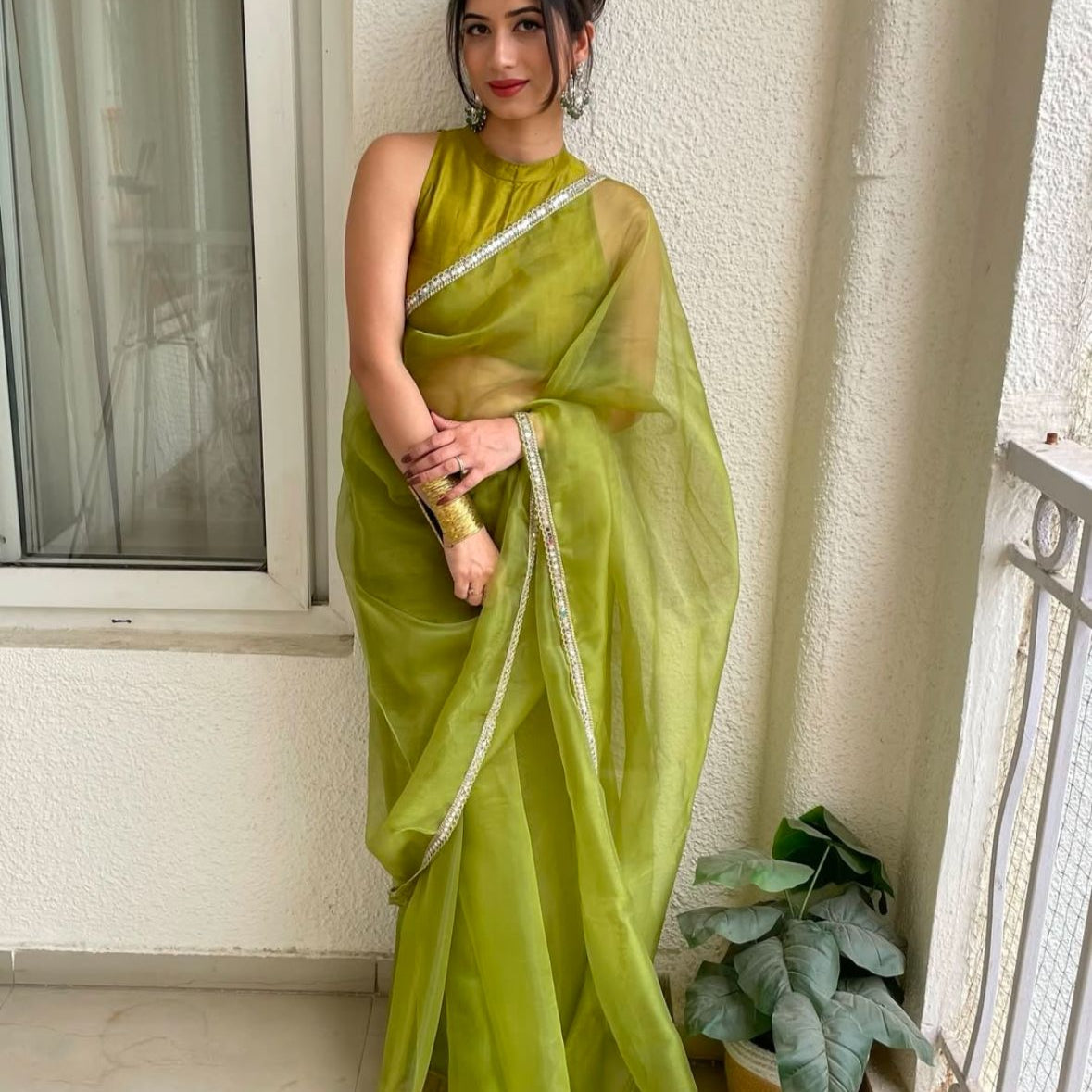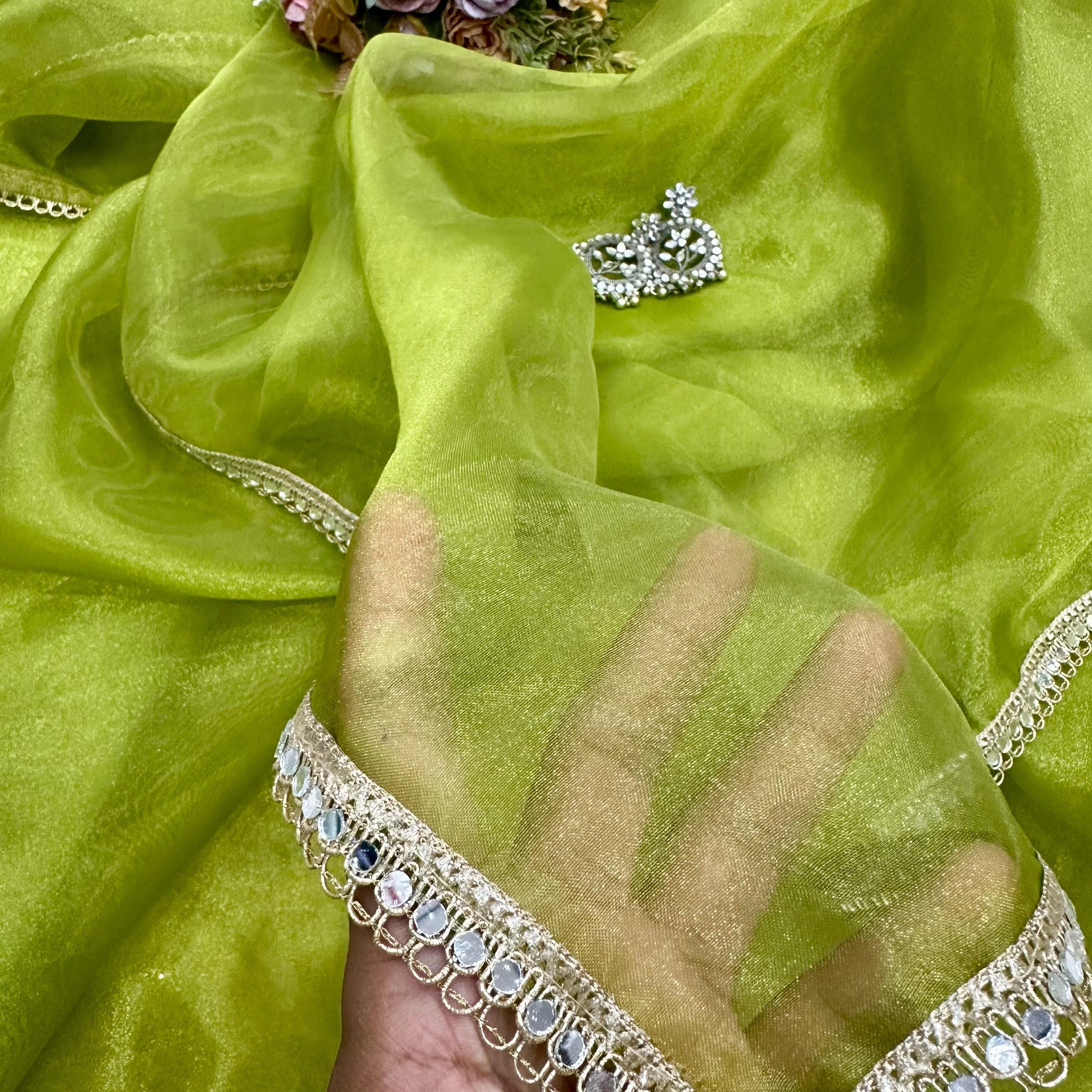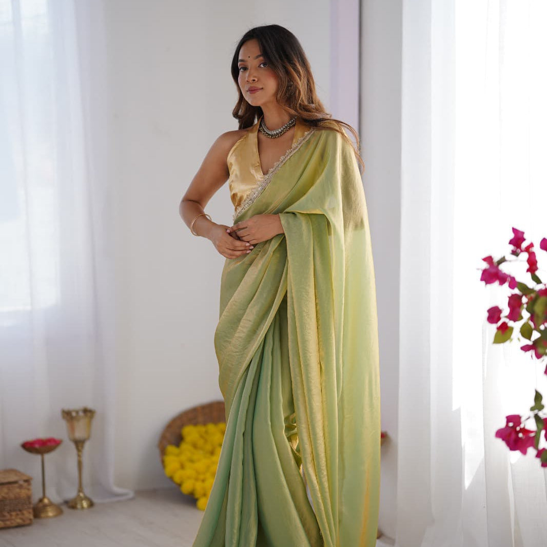 Pista Satin Organza Saree