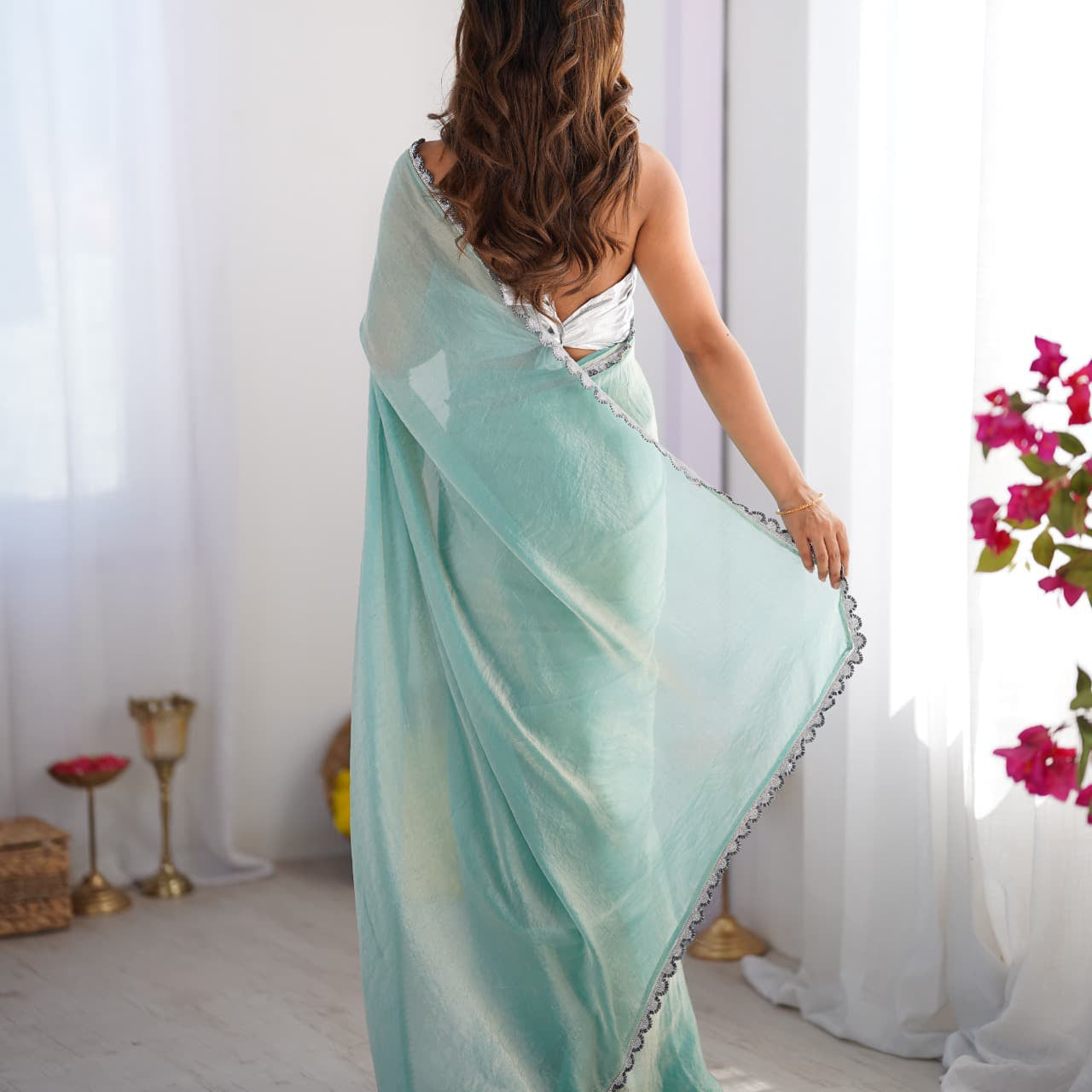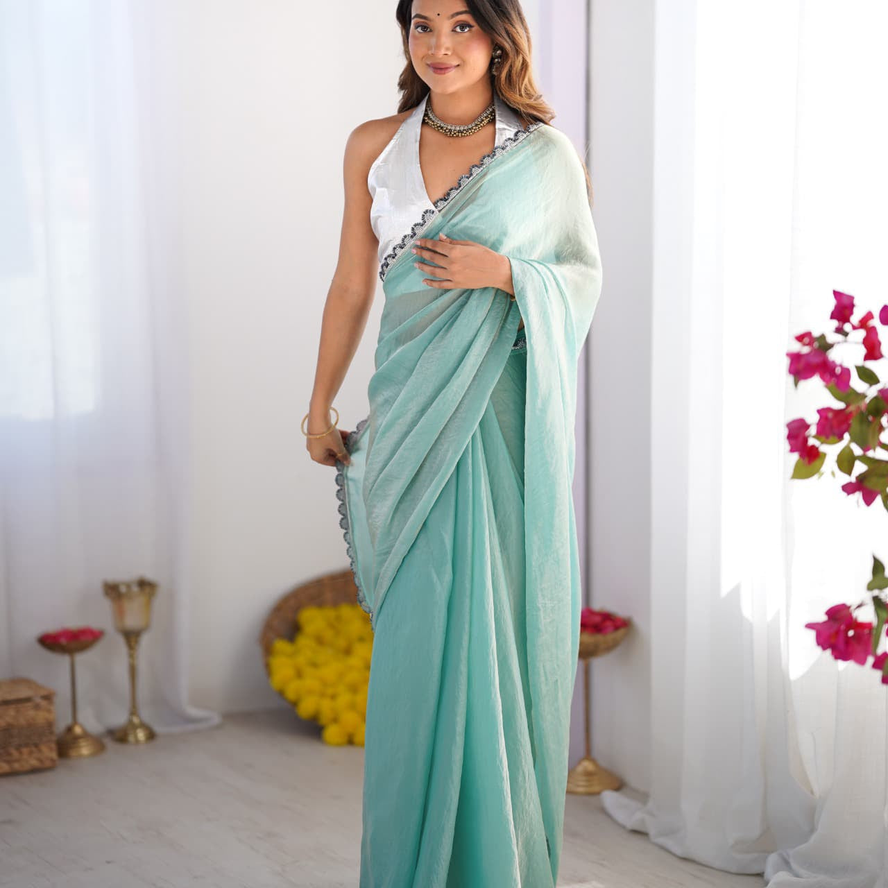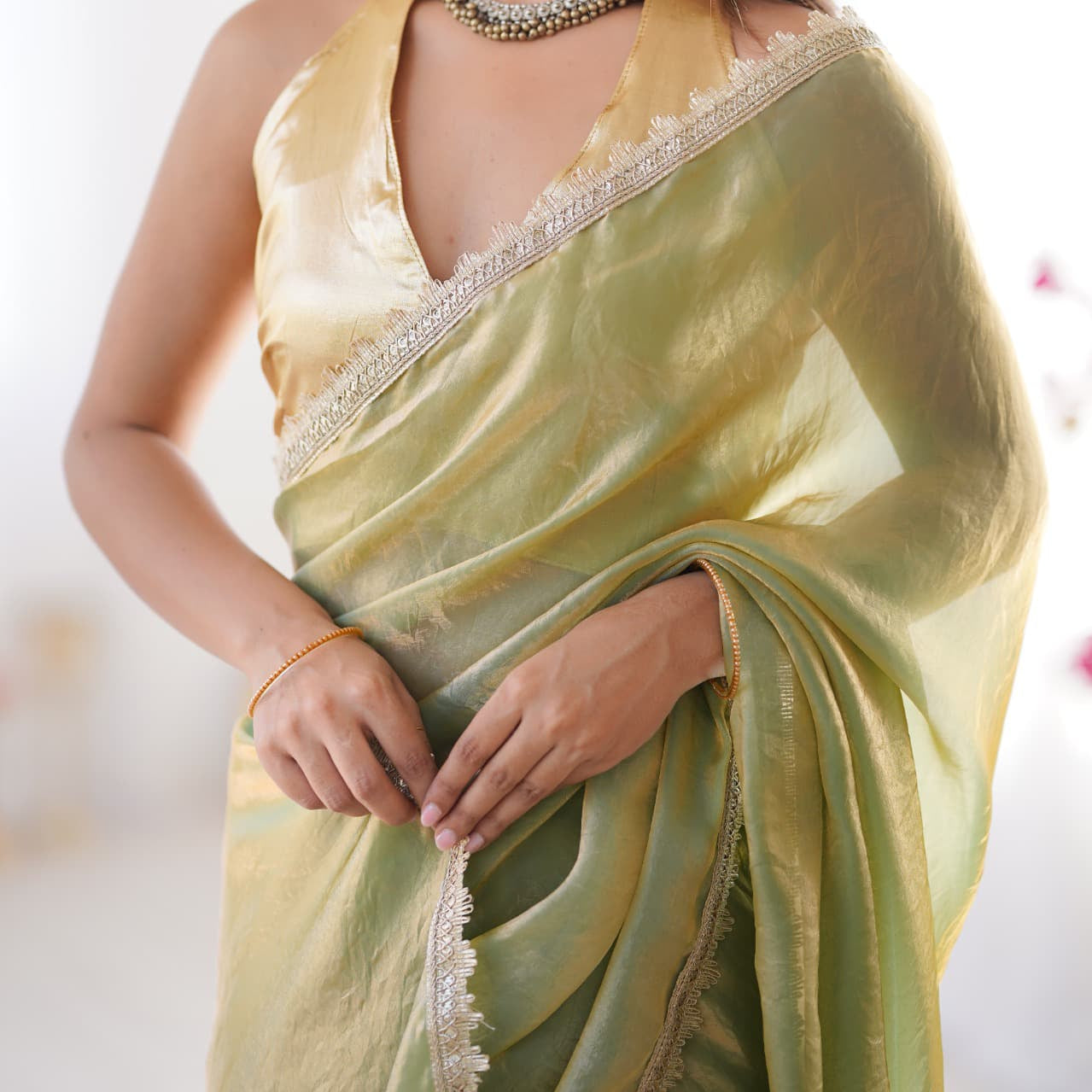 Pista Satin Organza Saree