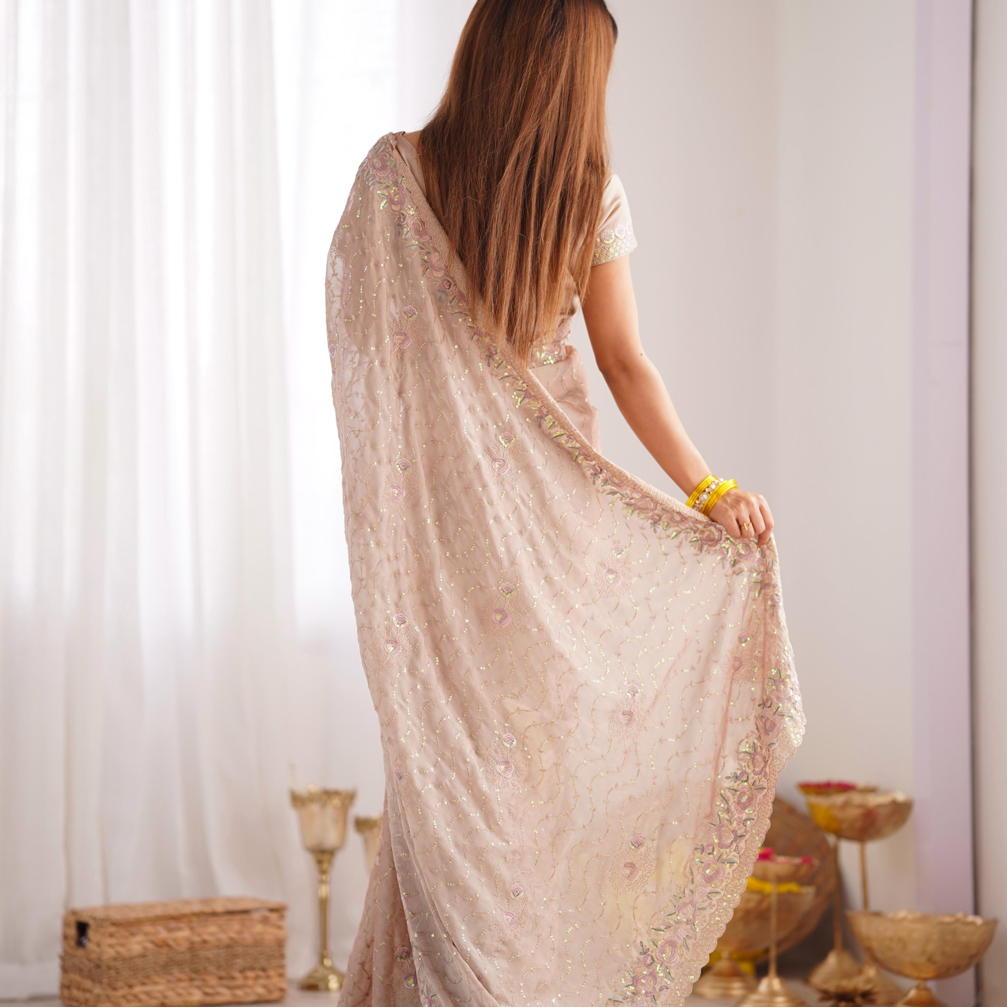Beautiful Original Mirror Georgette Saree
