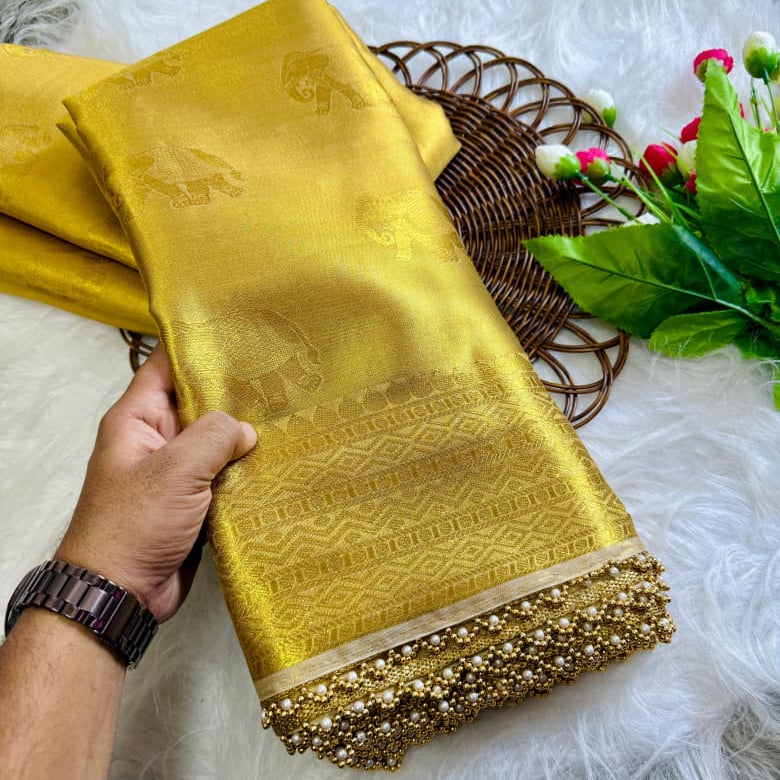 Golden Rekha Tissue Silk Saree