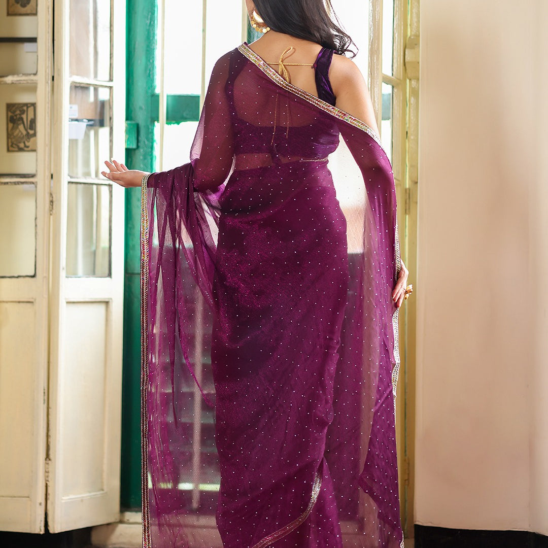 Wine Organza Wedding Saree