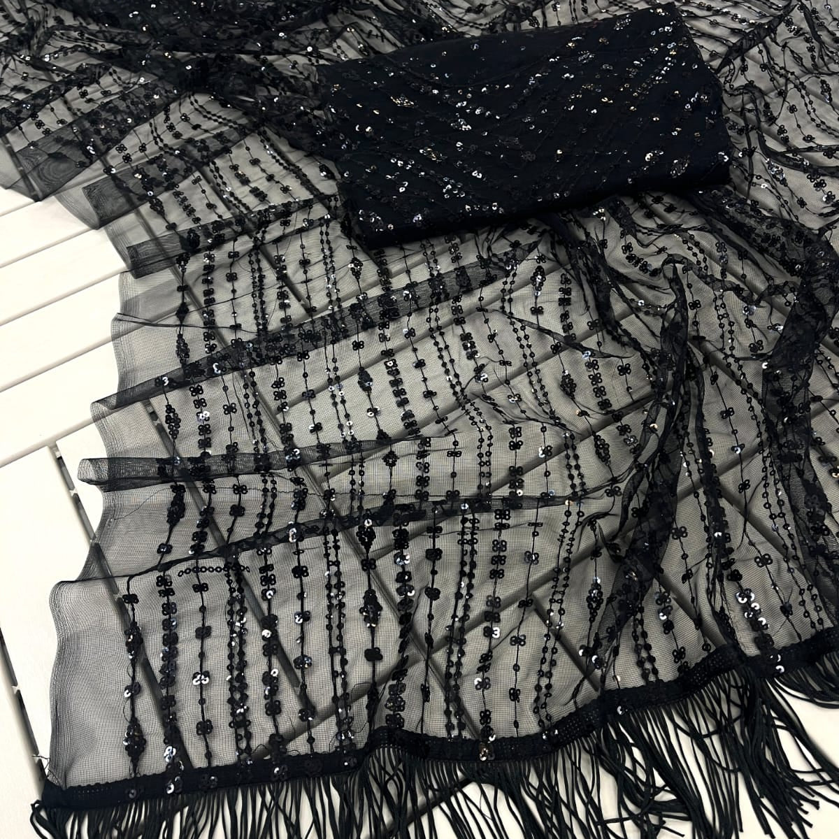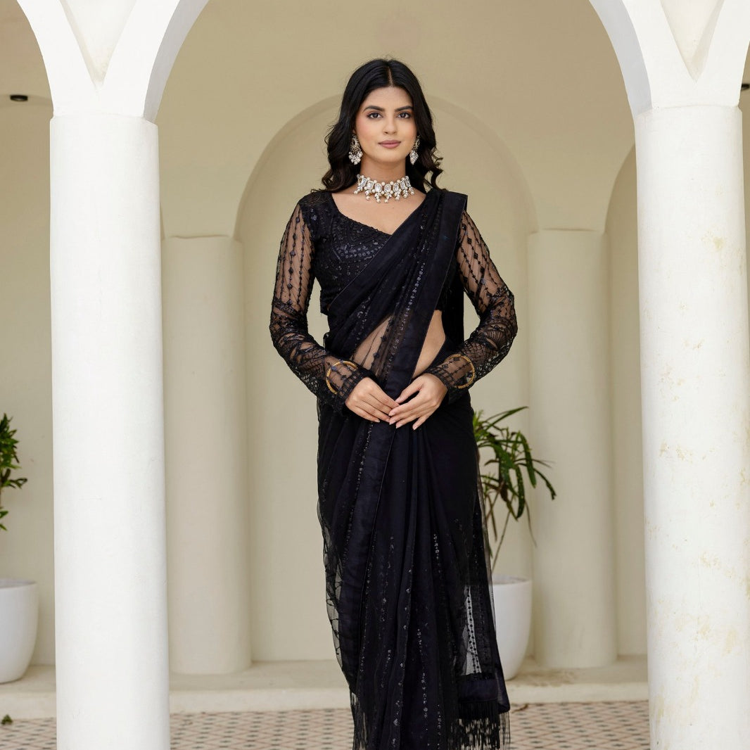 Black Heavy Nylon Net Saree